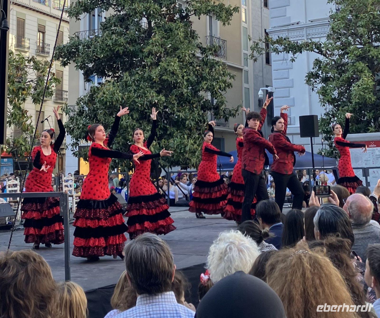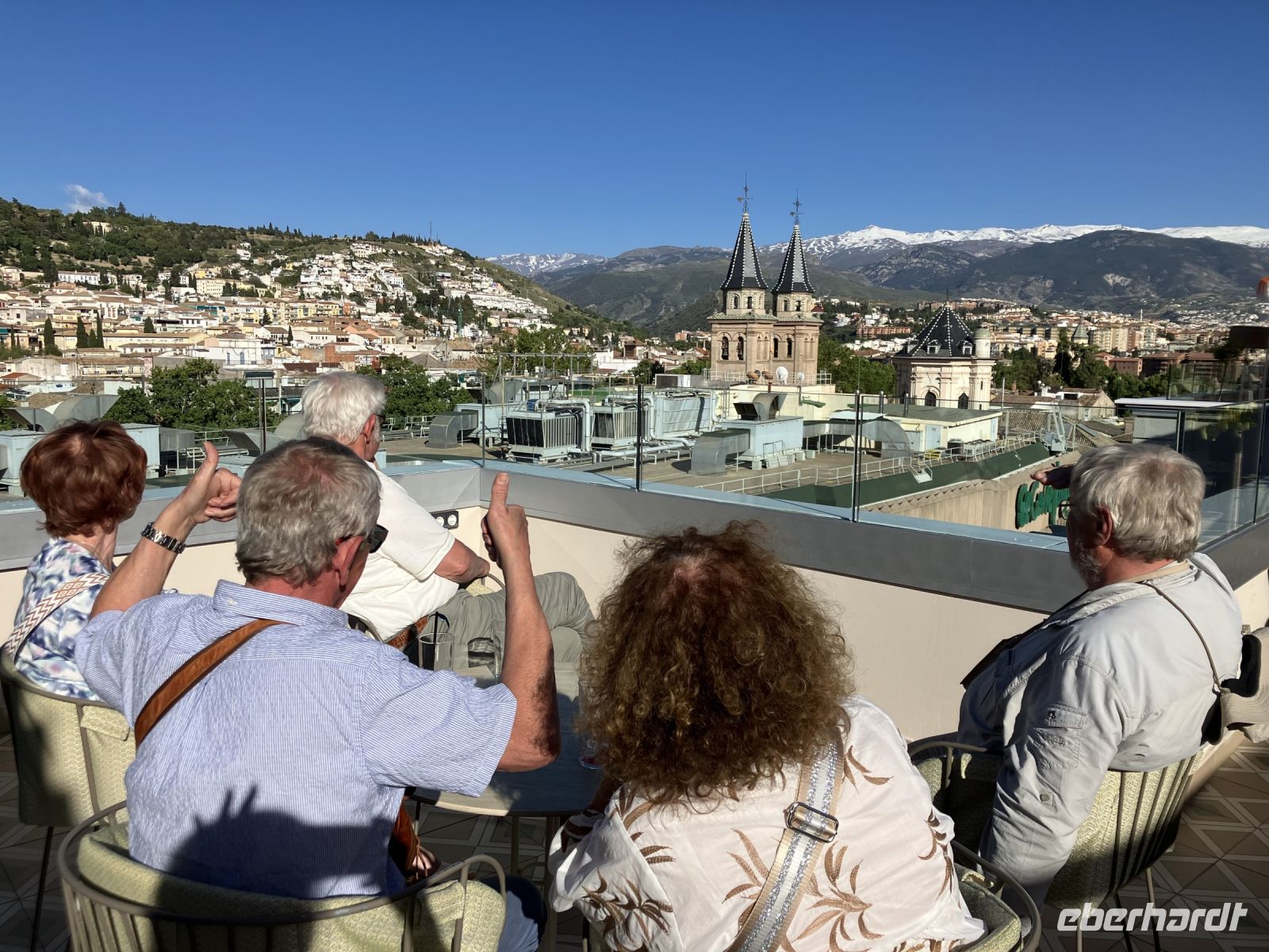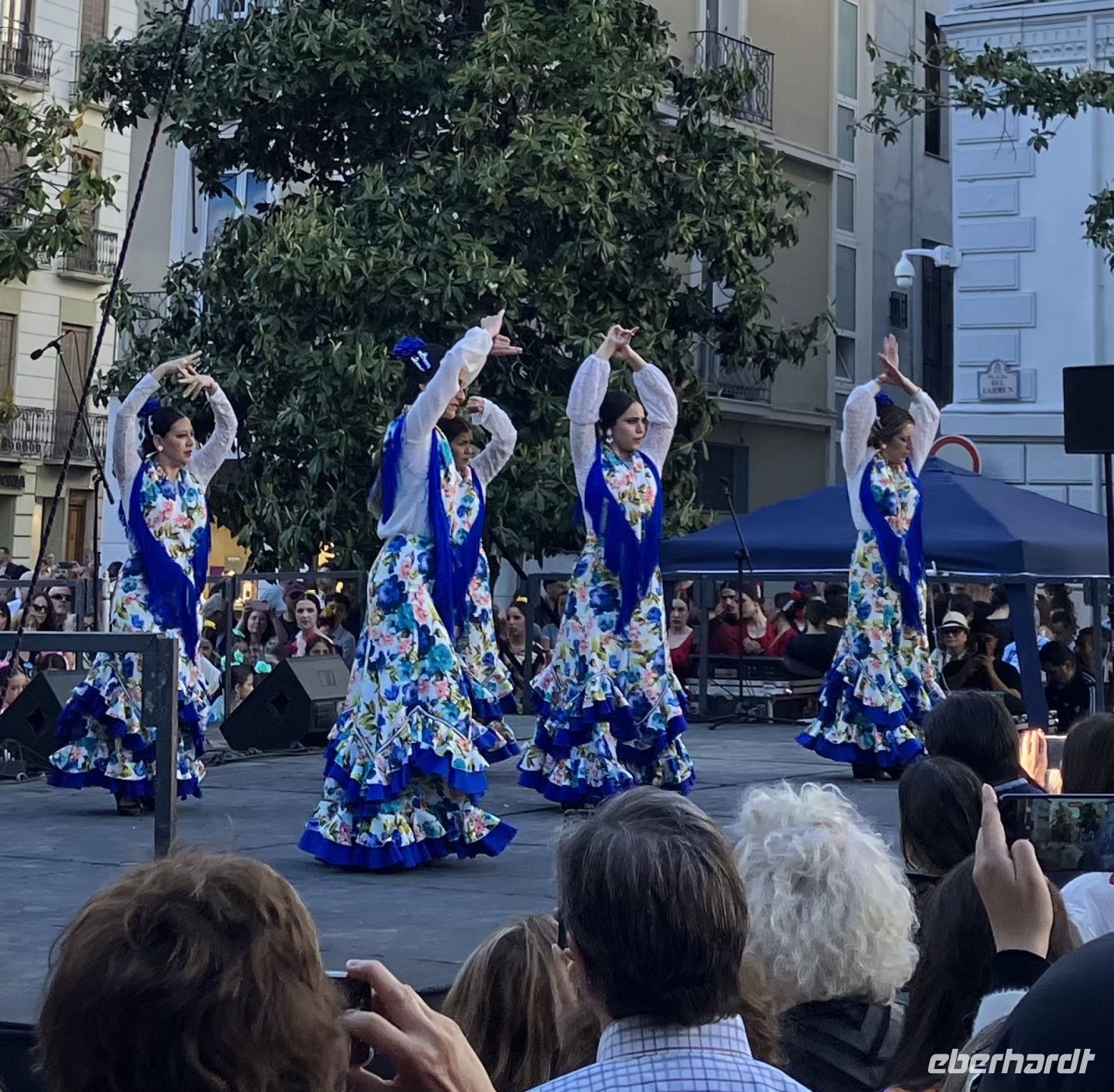Am Abend gingen wir gemeinsam zur Plaza del Carmen, wo ein Großteil der Veranstaltungen für die Fiestas de las Cruces von Granada stattfanden. Hier präsentierten sich die verschiedenen Flamenco-Schulen, und selbst die ganz Kleinen zeigten schon große Kunst. Danach genossen wir ein Abendessen in einem marokkanischen Restaurant, wo riesige Portionen von Couscous mit Hühnchen das maurische Erbe Granadas auf unsere Teller brachten. Der Abendspaziergang zurück zum Hotel war wie ein Vers von Federico García Lorca: „Granada, / du Straße meiner Träume, / wo die Liebe weint und die Gitarre klingt.“ Die Gassen summten vor Leben, junge Mädchen in festlichen Flamencokleidern flanierten durch die Strassen, und wir fühlten uns, als würden wir in Lorca’s Gedicht spazieren.