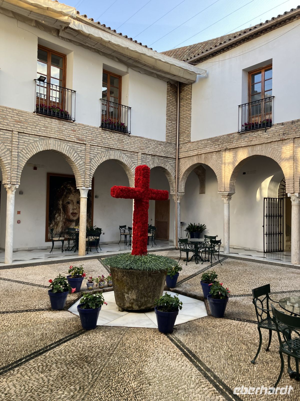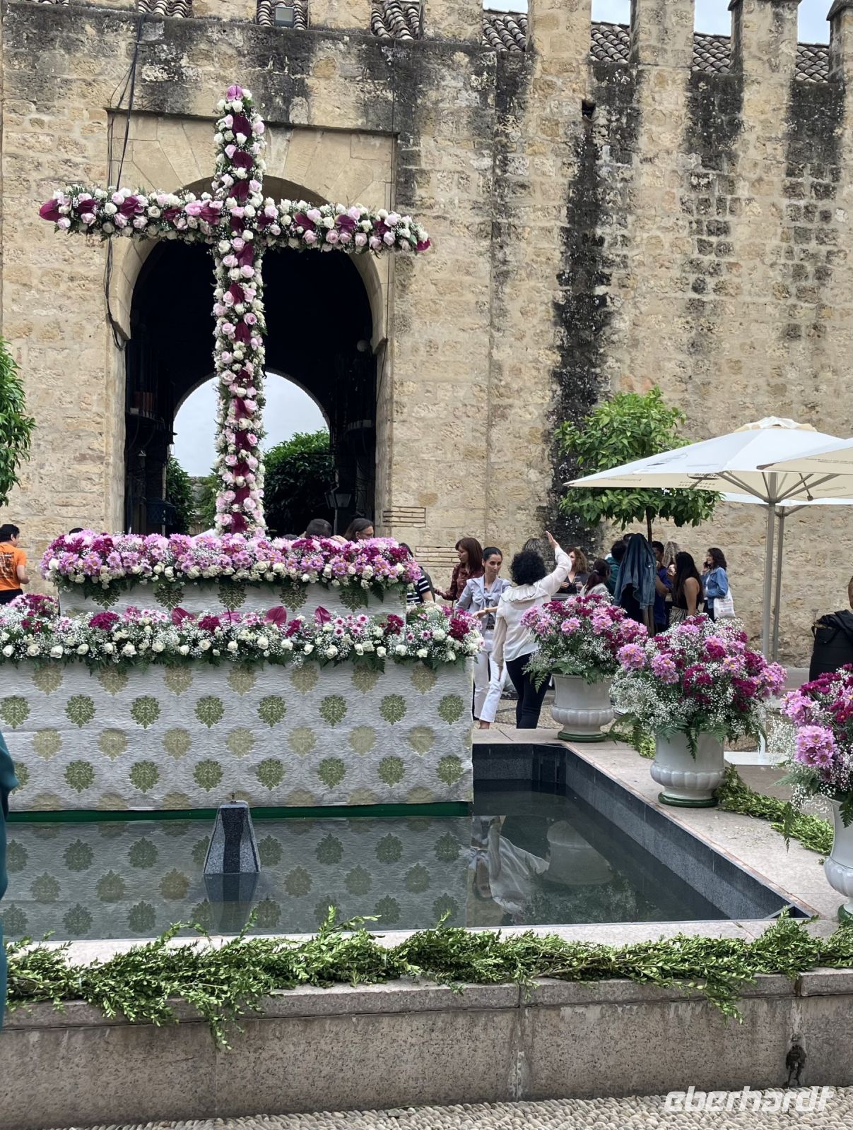 Und überall begleitete uns heute Musik, denn Córdoba feierte die Fiestas de las Cruces. An jeder Ecke standen Kreuze, geschmückt mit Blumen und Obst, eine Tradition, die auf die Christianisierung der Stadt im 13. Jahrhundert zurückgeht. Die Klänge von Flamenco und Gitarren hallten durch die Straßen, und selbst spät in der Nacht, als wir zurück zum Hotel schlenderten und wir schon lange in unseren Betten lagen, vibrierte die Stadt noch vor Leben.