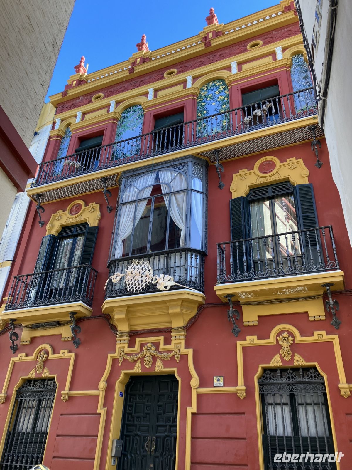 So schlenderten wir am Nachmittag zur Plaza de España, blickten auf die bunten Fliesen und den roten Backstein, suchten eine kleine Besonderheit am Denkmal von Haníbal González und bummelten danach zum Hotel zurück.