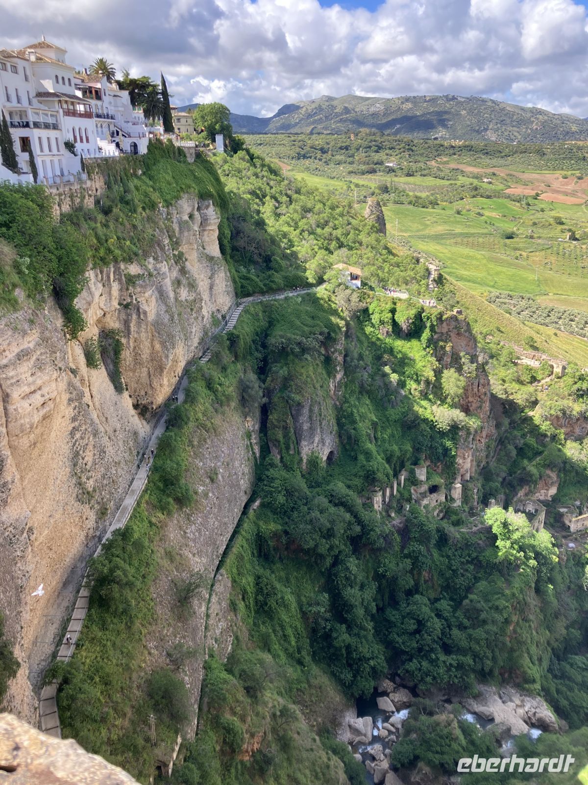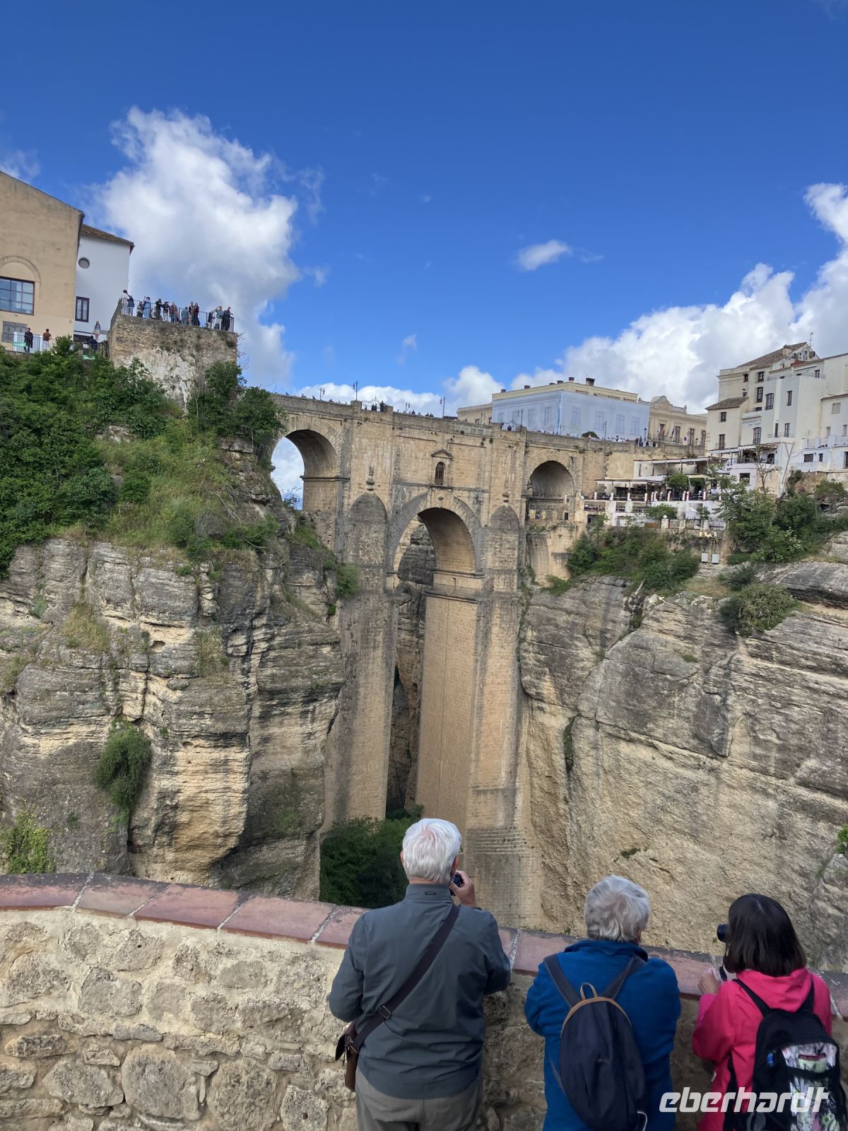 Es war unser letzter, gemeinsamer Tag in Andalusien, und Ronda bescherte uns mit seiner rauen Schönheit und tiefen Geschichte ein unvergessliches Finale. Begleitet von unserem Guide Juan, einem ruhigen, weisen Zeitgefährten, erliefen wir diese Stadt, die einst auch Rainer Maria Rilke verzauberte, auf eine ganz besondere Art und Weise. Mit Juan, dessen entspannte Art uns sofort für ihn einnahm, begannen wir den Tag in den verschlafenen Gassen Rondas, die seit der Jahrhunderten Geschichte atmen. Er führte uns abseits der Touristenströme zu versteckten Aussichtspunkten, von denen wir die tiefe Schlucht des Tajo-Flusses und die umliegenden Berge bewunderten. Und auch wir spürten, was Rilke meinte, als er 1912 schrieb: „Ronda, du Stadt der Träume, auf deinem Felsen thronend.“ Die berühmte Puente Nuevo, die Neue Brücke, erbaut im 18. Jahrhundert, war ein Muss. Ihre majestätische Spannweite über die Schlucht ließ uns staunen und schaudernd in die Tiefe blicken.