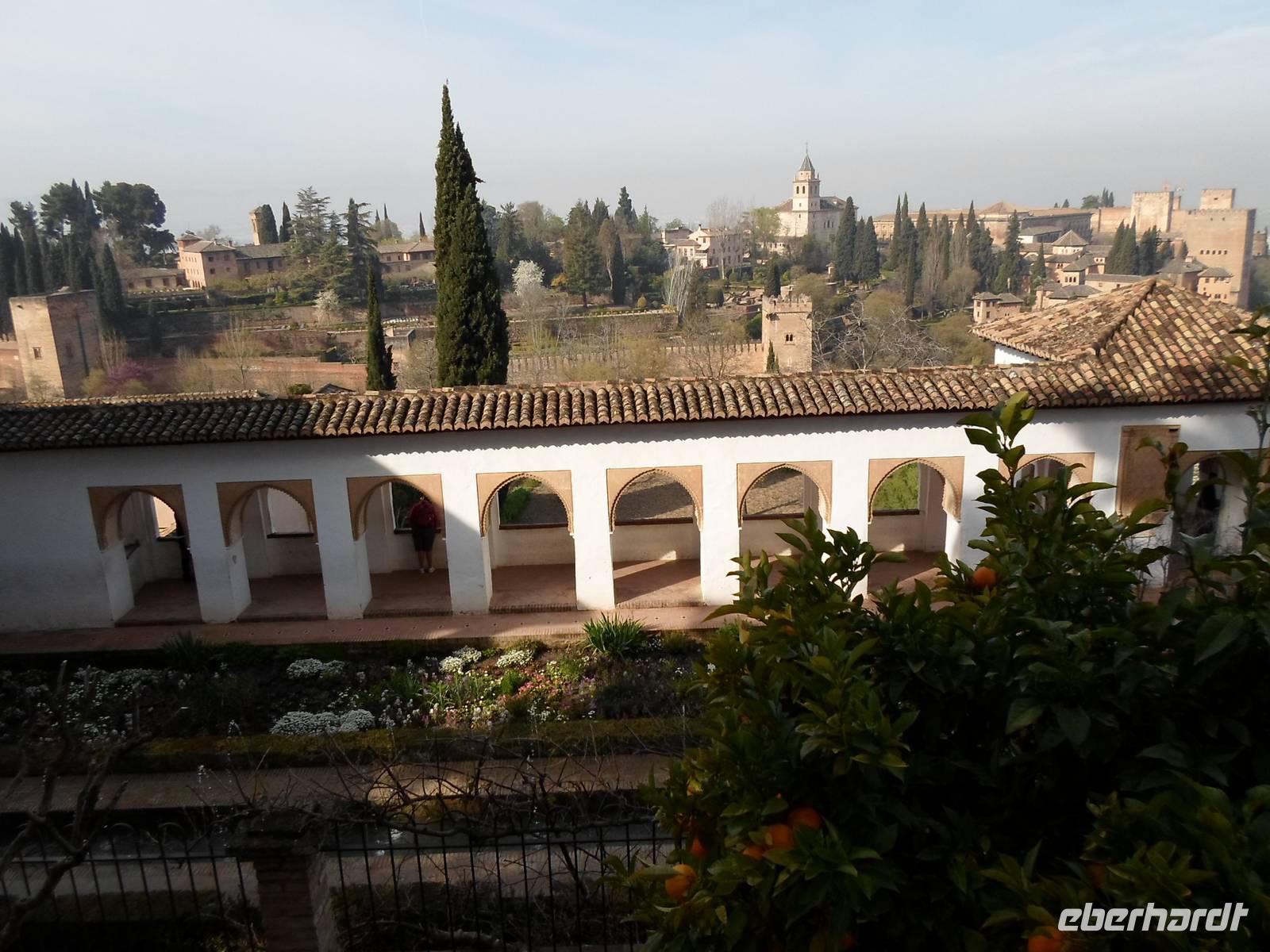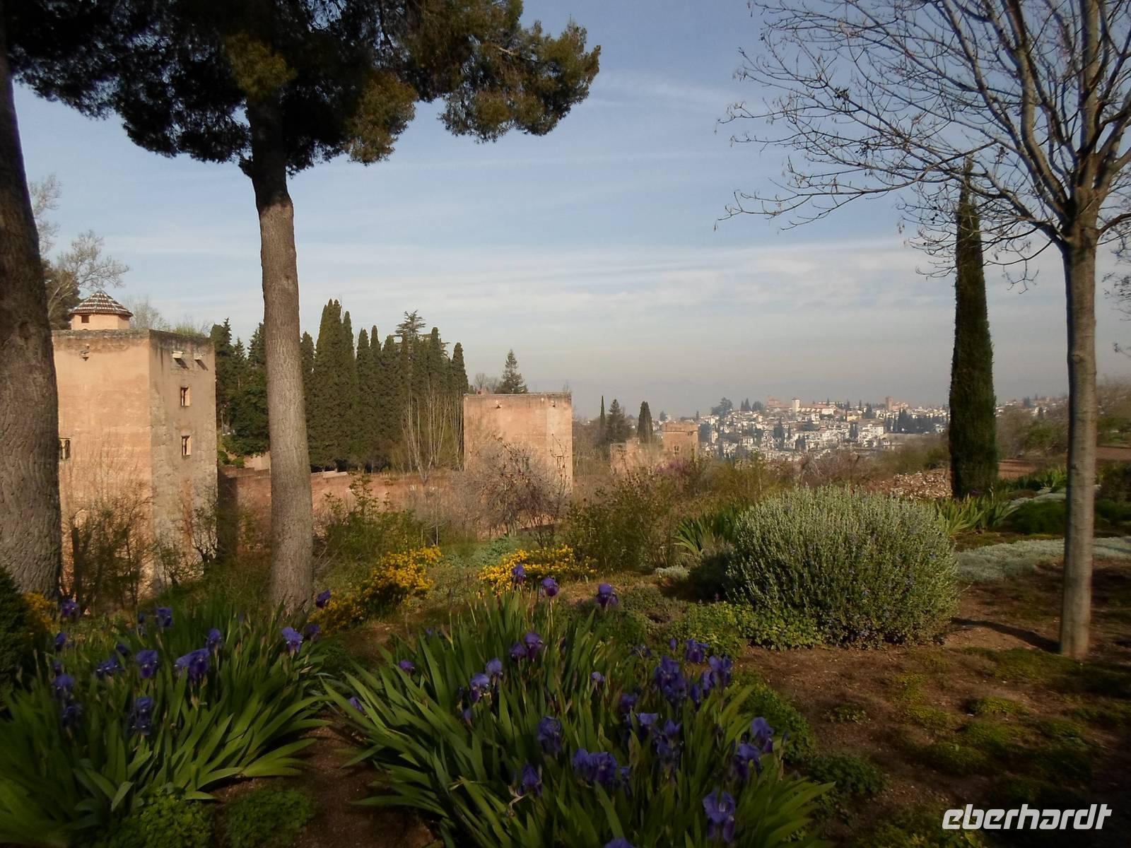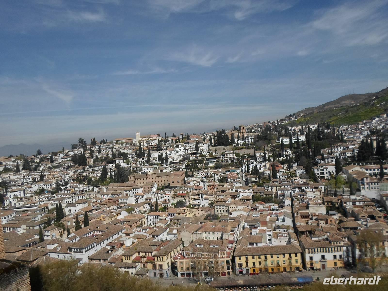 Zitrosplantagen, die zum Teil auch künstlich bewässert werden müssen. An der Costa del Sol sehen wir schon die Gebirgskette der Sierra Nevada vor uns und ahnen, dass der Mulhacén, der höchste Berg Spaniens, uns in Andalusien begrüßt. Wir erreichen Granada, weithin sichtbar die Berge mit der Alhambra und des Albaicin, die die Stadt schützend umgeben. Heute übernachten wir im Hotel „ Alixares", von dem wir einen herrlichen Blick auf die maurische Stadtburg haben. Glücklich darüber, hier zu sein, nehmen wir auch gleich die Gelegenheit wahr, einen traditionellen Flamenco-Abend zu besuchen. Es ist ein schöner Abschluss eines erlebnisreichen Tages.