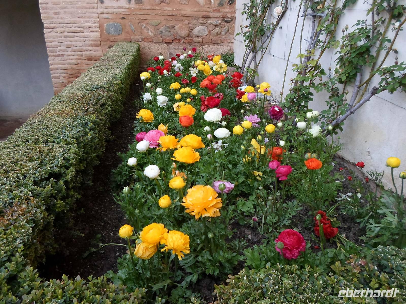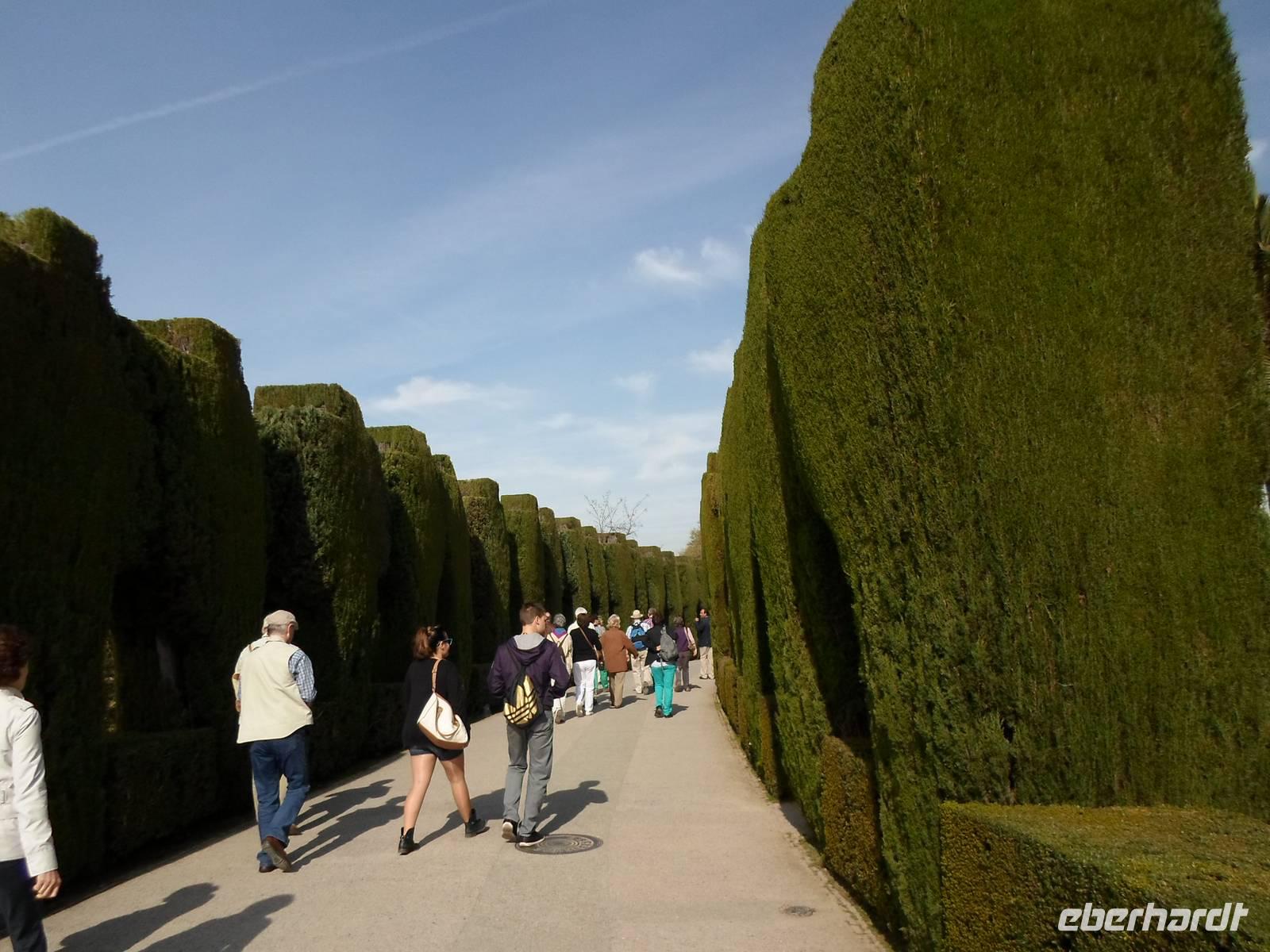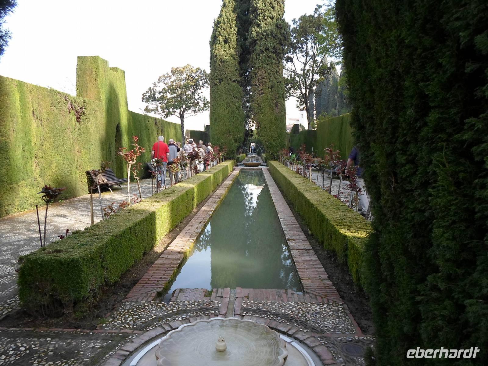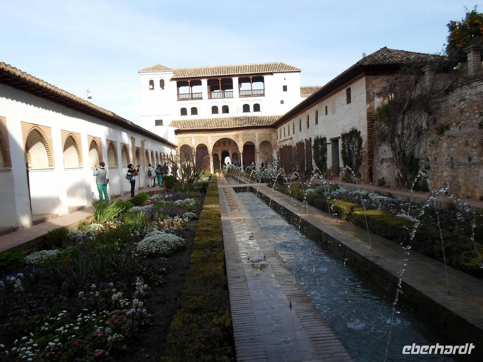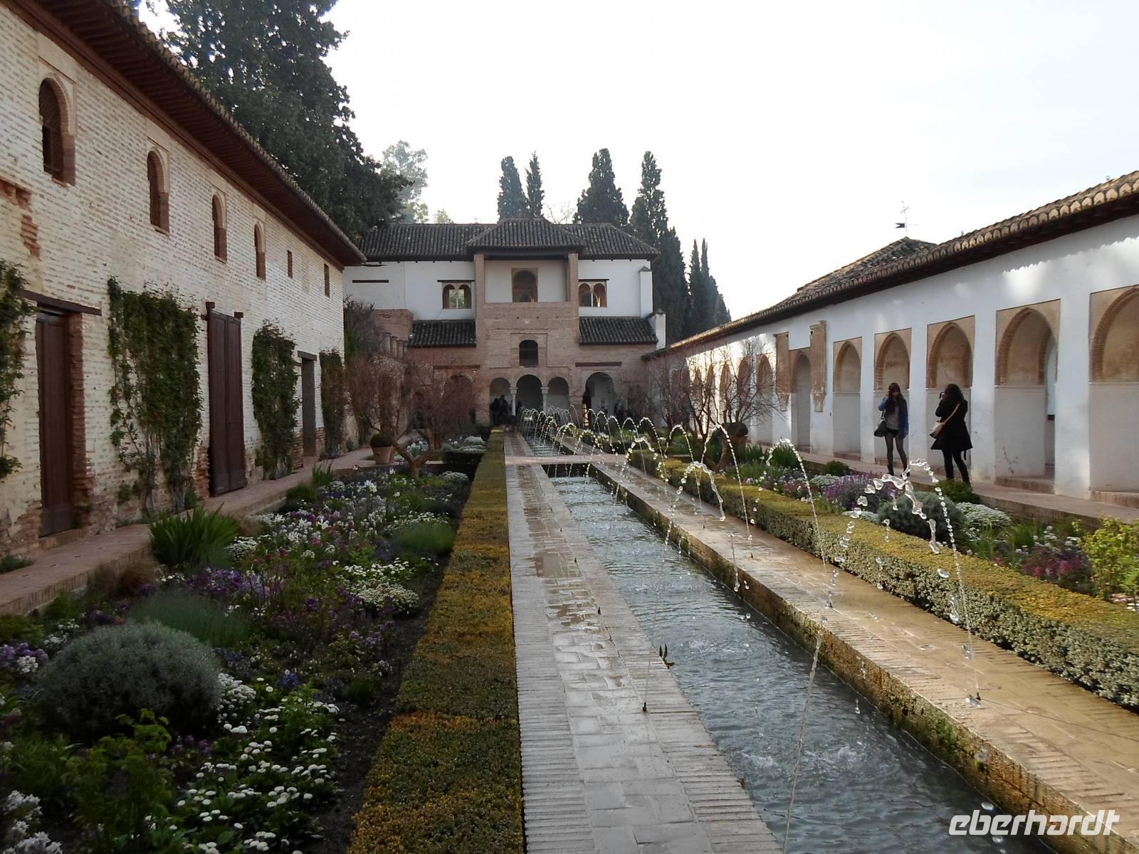 Heute besichtigen wir die 240 000 Einwohner zählende Universitätsstadt mit ihren Kostbarkeiten aus vergangenen Zeiten. Mit unseren örtlichen Reiseleitern Pepe und Gerhard besuchen wir heute bei strahlendem Sonnenschein die Alhambra, die majestätische Festungsanlage. Hohe Mauern umschließen ganz unterschiedliche Teile der Anlage. Herzstück sind natürlich die Nasridenpaläste und der Palast von Karl V., den dieser 1526 in dem maurischen Königspalast einbauen ließ. Eine Vielzahl von Museen und kleinen Bars haben sich in der Festungsanlage angesiedelt. In deren unmittelbarer Nähe bestaunen wir die blühenden Gärten des maurischen Sommerpalastes Generalife. Einfach herrlich, Blumen und Zitrusbäume, Palmen, alles ist so schön! Wir genießen den herrlichen Ausblick auf die Sierra Nevada und den gegenüberliegenden Hügel des Albaicin, dem eigentlichen Geburtsort Granadas, heute von der Altstadt eingenommen. Von hier aus bestaunten wir gestern Abend die angestrahlte Alhambra. Wir freuen uns über etwas Freizeit, um die Kathedrale - die berühmte Grabstätte spanischer Könige, besuchen. Hier fanden Isabel und Fernando, sowie Johanna die Wahnsinnige und Philipp der Schöne ihre letzte Ruhestätte. Leider