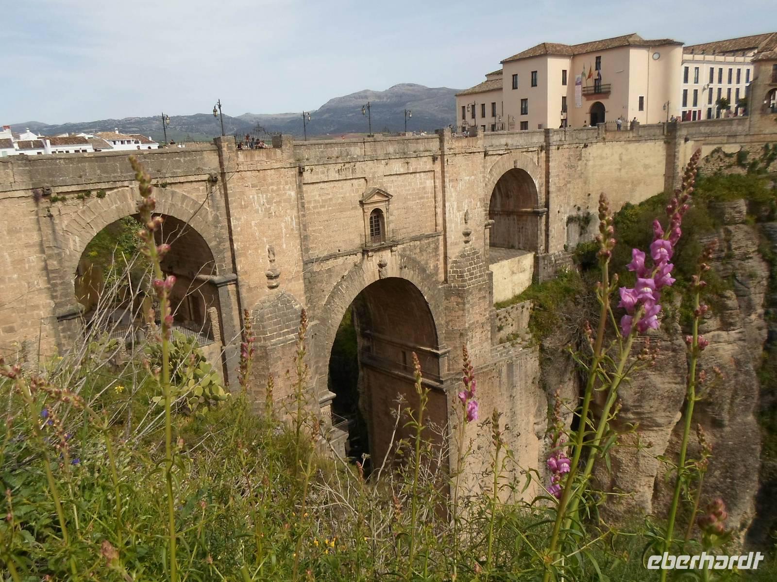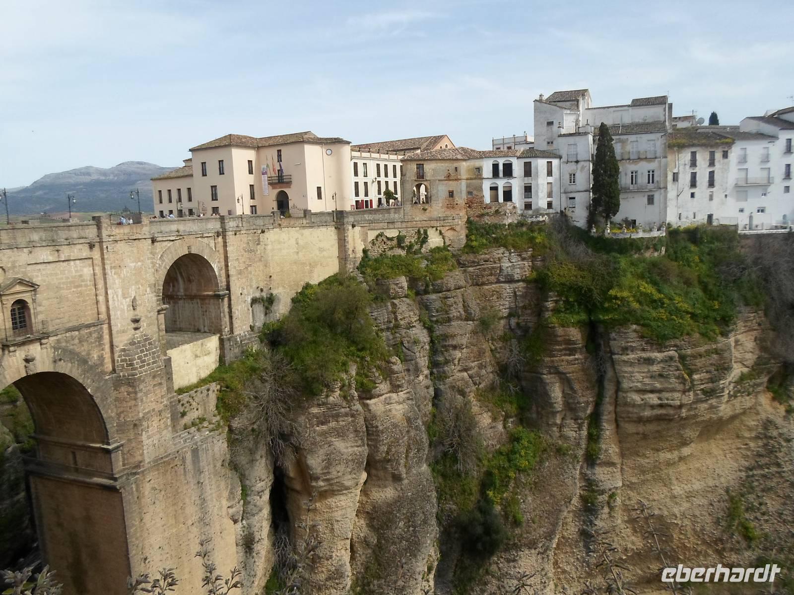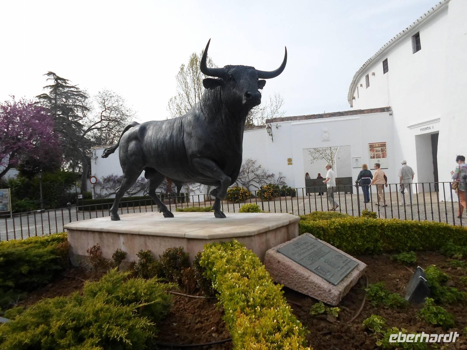 Nun geht es schon weiter nach Marbella. Schon der Name verbindet unsere Gedanken mit dem Leben der sogenannten Reichen und Schönen. Oft im Fernsehen gesehen, spazieren wir nun selbst entlang des Platzes mit ziemlich merkwürdigen Skulpturen von Salvadore Dali. Die Sonne meint es so gut mit uns. Am Liebsten würden wir uns wie viele Sonnenhungrige eine Strandliege mieten oder sogar im Mittelmeer baden. Wir laufen gemütlich entlang der Strandpromenade und lassen die Atmosphäre dieses mondänen Seebades auf uns wirken..Aber nicht genug der Erlebnisse an diesem Tag. Wir besuchen nun das Zentrum des Stierkampfes in Südspanien - Ronda. Der Fluss Rio Guadalevin hat sich hier über 100 Meter in die Tiefe eingegraben und trennt die Altstadt von dem neuen Stadtteil. Die Brücke Punte Nuevo ist ein hervorragendes Fotomotiv für uns und bietet einen atemberaubenden Blick in die Schlucht und auf das die Stadt Ronda umgebende Gebirge - die Sierra Ronda. Weiter geht es nicht ohne die Stierkampfarena von innen zu sehen. Marie, unsere