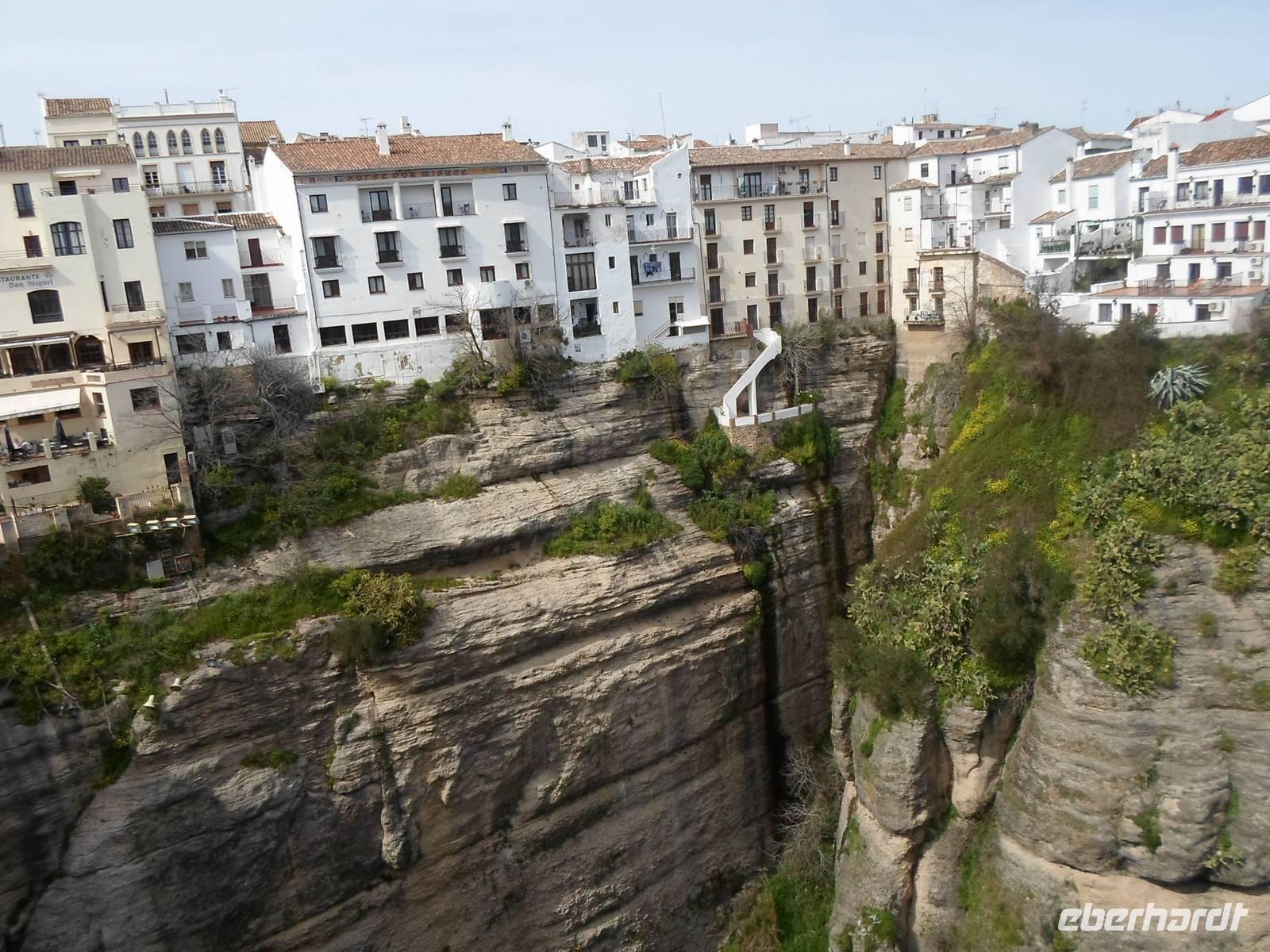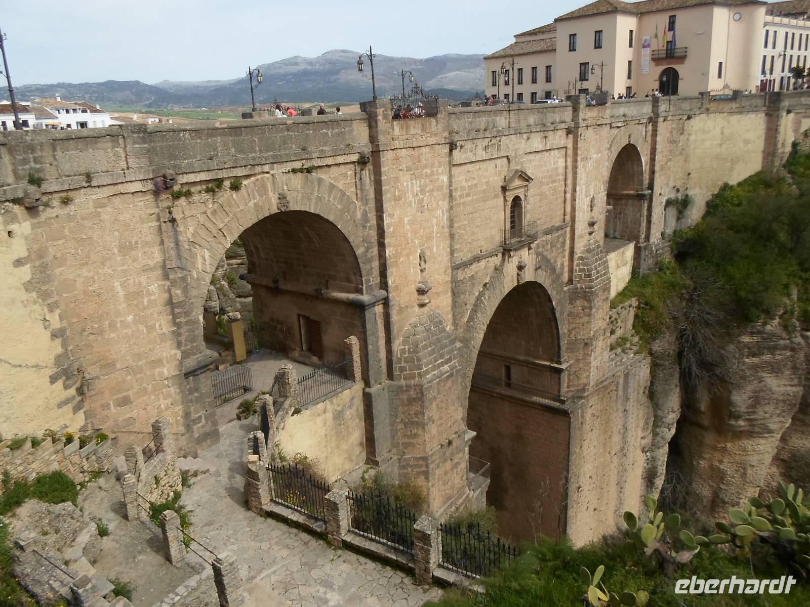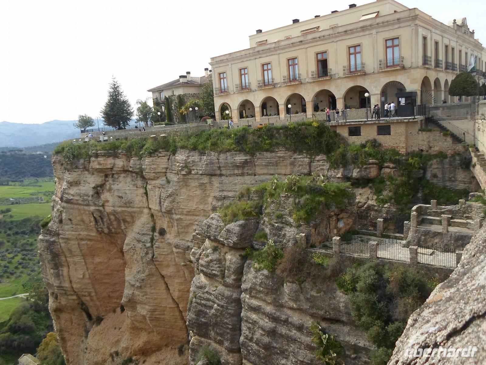 Nun geht es schon weiter nach Marbella. Schon der Name verbindet unsere Gedanken mit dem Leben der sogenannten Reichen und Schönen. Oft im Fernsehen gesehen, spazieren wir nun selbst entlang des Platzes mit ziemlich merkwürdigen Skulpturen von Salvadore Dali. Die Sonne meint es so gut mit uns. Am Liebsten würden wir uns wie viele Sonnenhungrige eine Strandliege mieten oder sogar im Mittelmeer baden. Wir laufen gemütlich entlang der Strandpromenade und lassen die Atmosphäre dieses mondänen Seebades auf uns wirken..Aber nicht genug der Erlebnisse an diesem Tag. Wir besuchen nun das Zentrum des Stierkampfes in Südspanien - Ronda. Der Fluss Rio Guadalevin hat sich hier über 100 Meter in die Tiefe eingegraben und trennt die Altstadt von dem neuen Stadtteil. Die Brücke Punte Nuevo ist ein hervorragendes Fotomotiv für uns und bietet einen atemberaubenden Blick in die Schlucht und auf das die Stadt Ronda umgebende Gebirge - die Sierra Ronda. Weiter geht es nicht ohne die Stierkampfarena von innen zu sehen. Marie, unsere