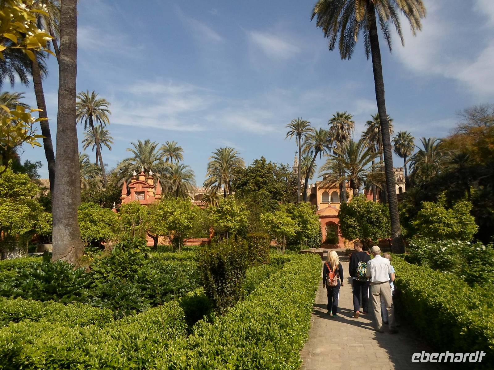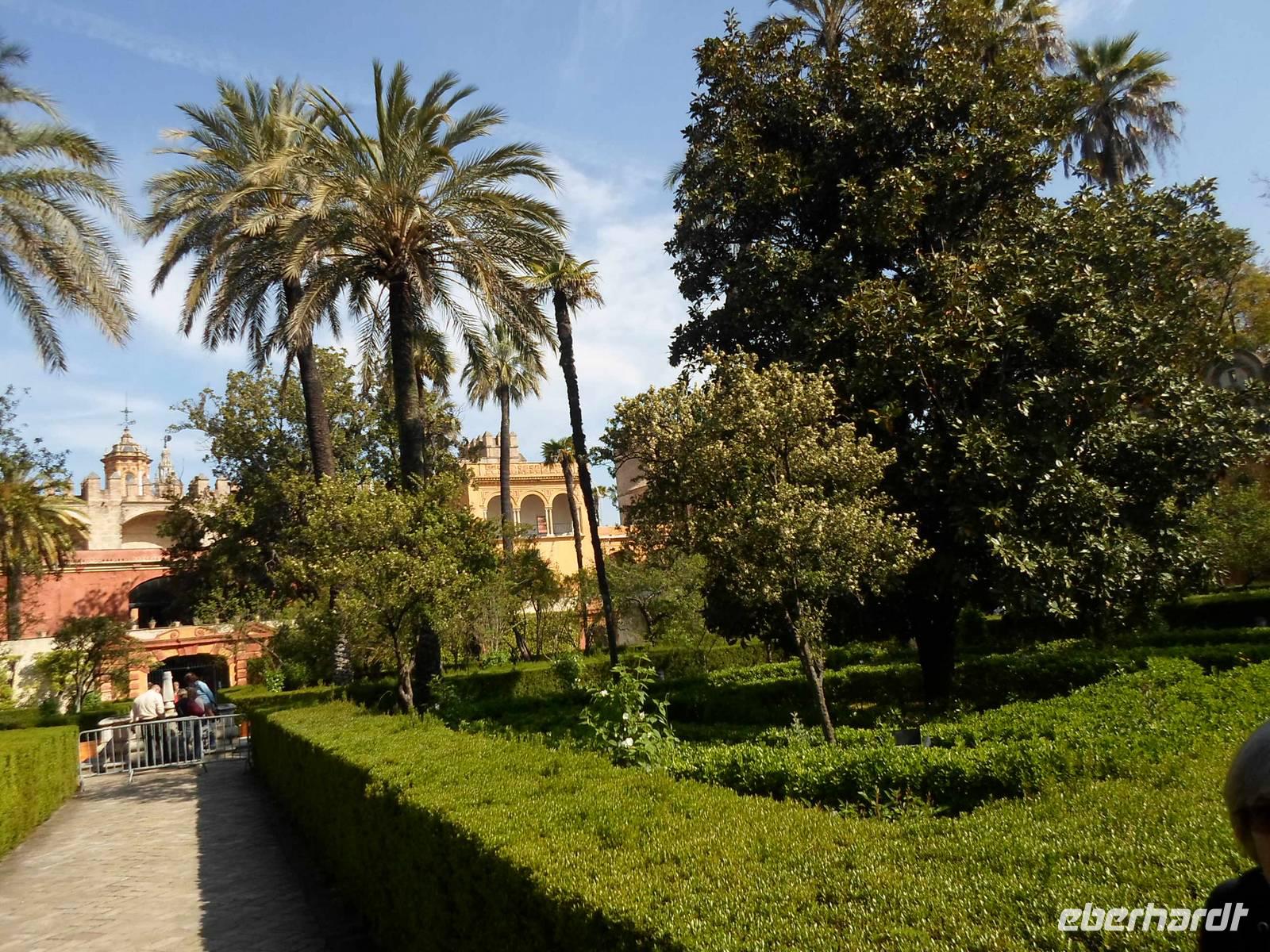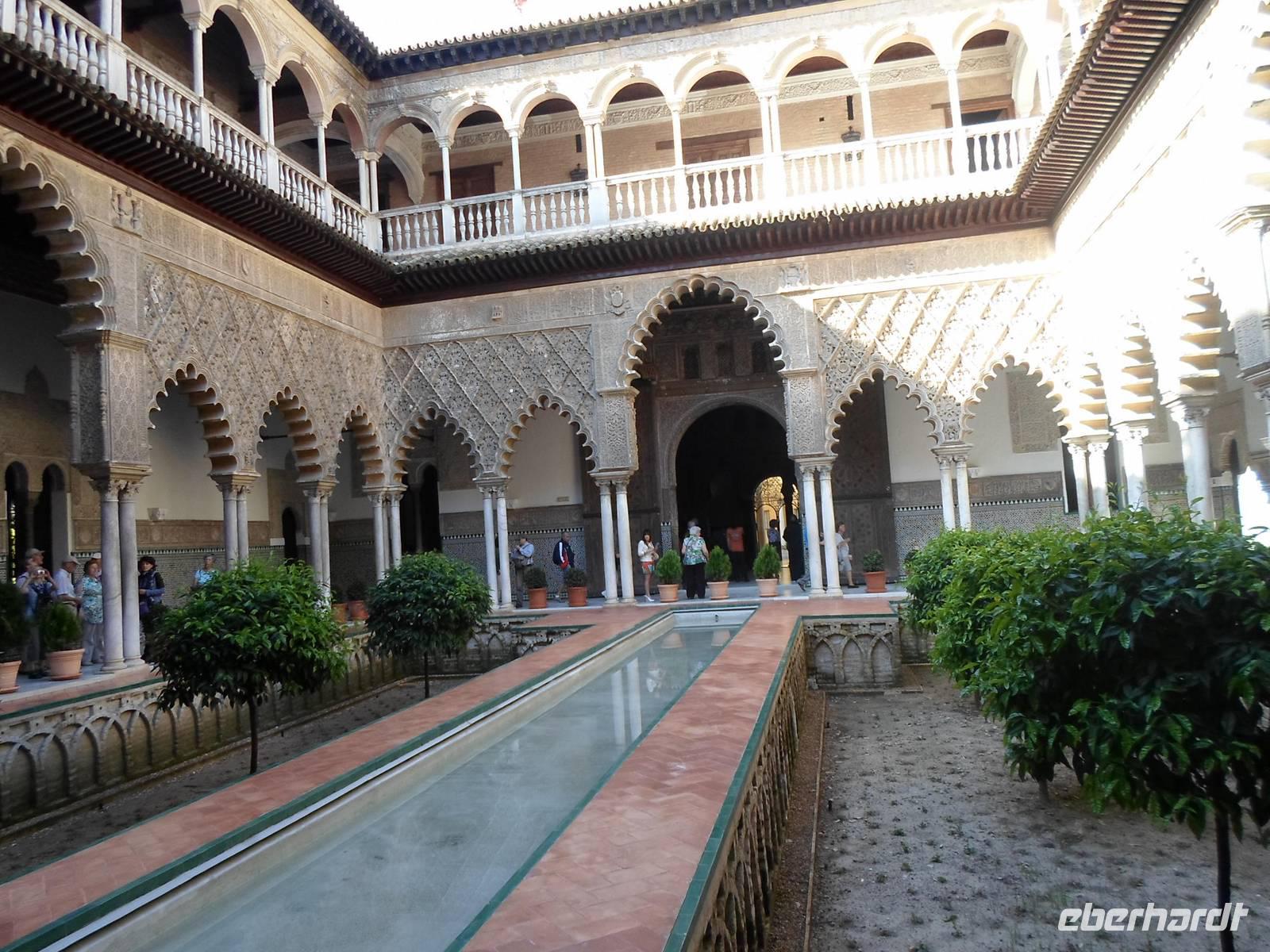 700 000 Einwohner zählende Stadt hat viele Sehenswürdigkeiten, deren Besuch lohnenswert ist. Wir laufen zu einem Platz mit vielen Kanälen und Brücken - dem Plaza de Espana. Gleich fühlen wir uns wie in Venedig. Beeindruckend ist auch die Real Alcazares - die Burganlage, die erstaunlicherweise nicht von den Arabern sondern den Christen errichtet wurde. Im 14. Jahrhundert beauftragte Peter der Grausame den Bau für sich und seine Geliebte Maria de Padilla. Herrliche Gärten umgeben die Königspaläste und laden zum Bummeln ein.