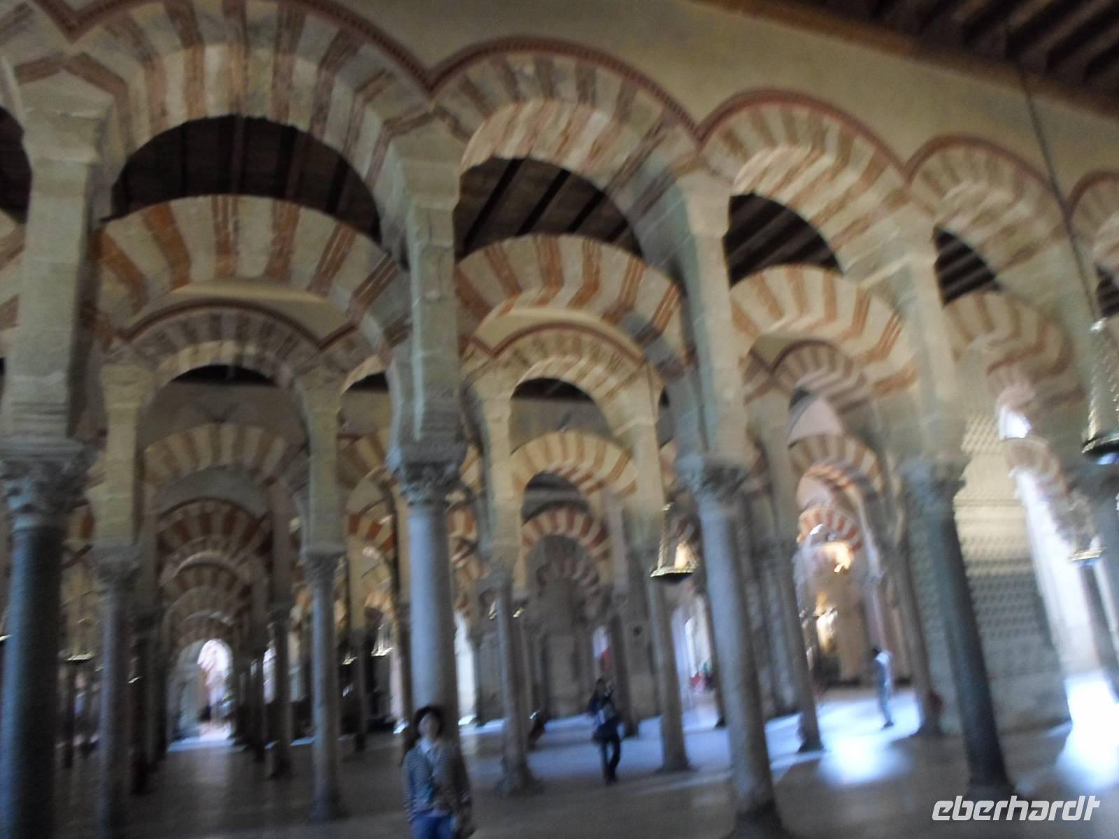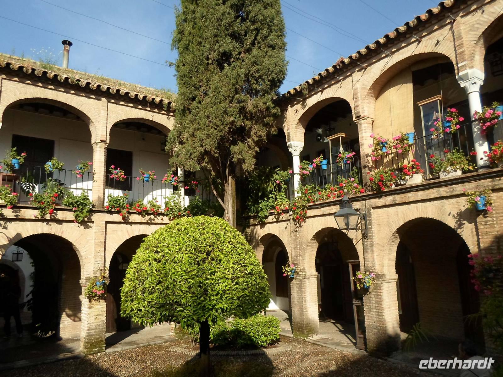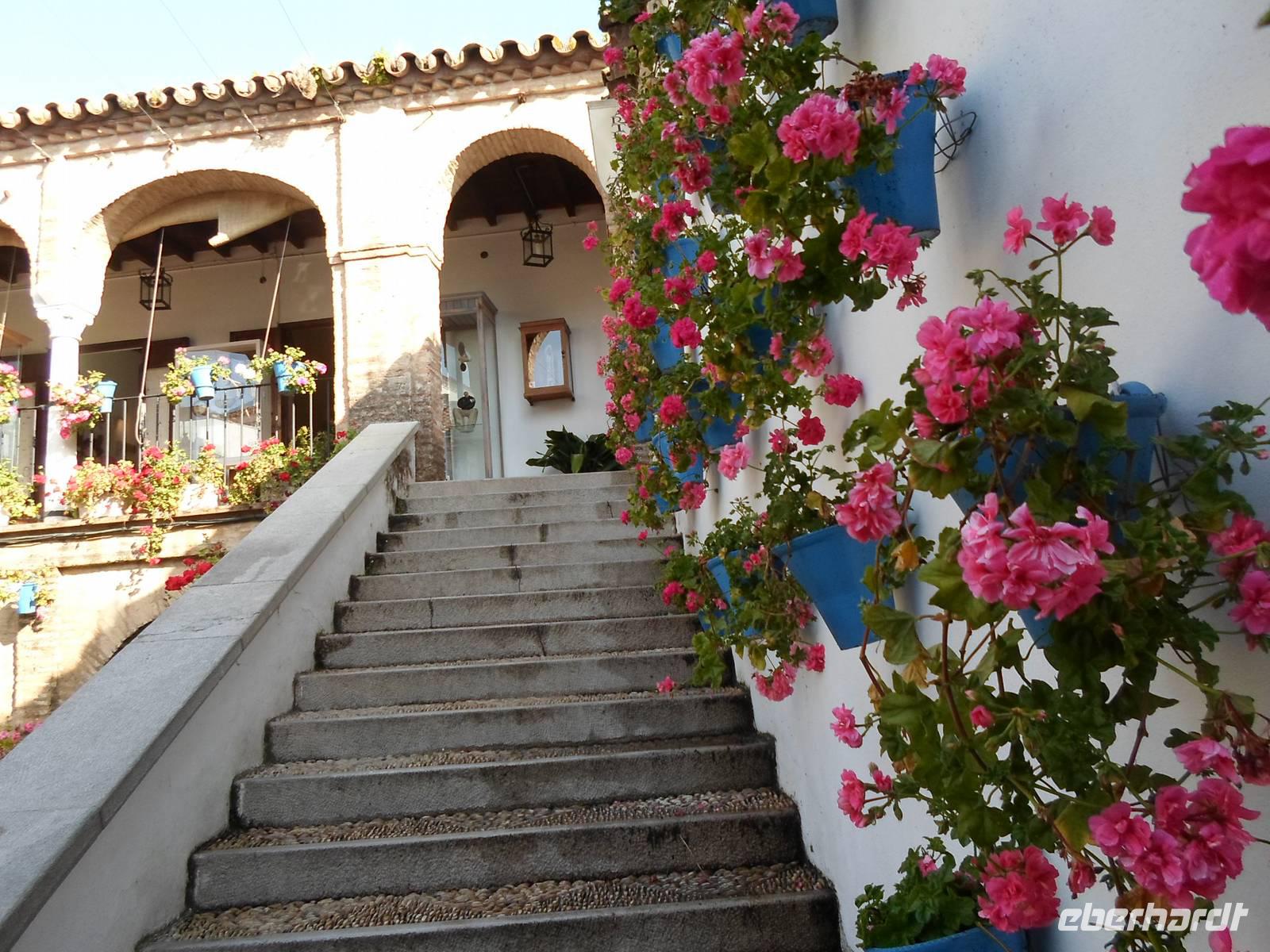 Heute laufen wir mit unserer Reiseleiterin Imma durch die hübschen, engen Gassen von Cordoba vorbei an weißgetünchten Häusern, über kleine Plätze im Judenviertel, besuchen einen kleinen mit Blumen und Zitrusfrüchten gestalteten Innenhof. Alles ist wunderschön. Mächtige Brücken und die Mezquita - die ehemaligee maurische Hauptmoschee des westlichen Islams sind beeindruckende Zeugnisse vergangener Zeiten, die wir staunend betrachten. Gerade die Kathedrale, inmitten einer Moschee erbaut, ist ein faszinierendes Zeugnis vergangener Zeiten. Umgeben von tausenden Säulen
