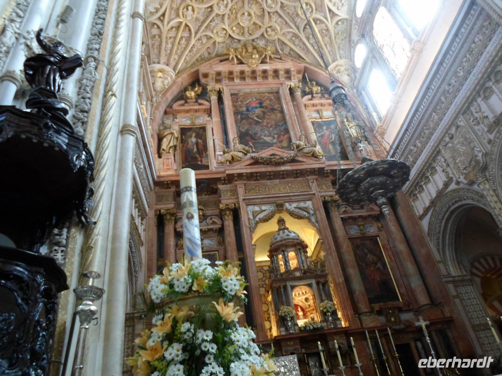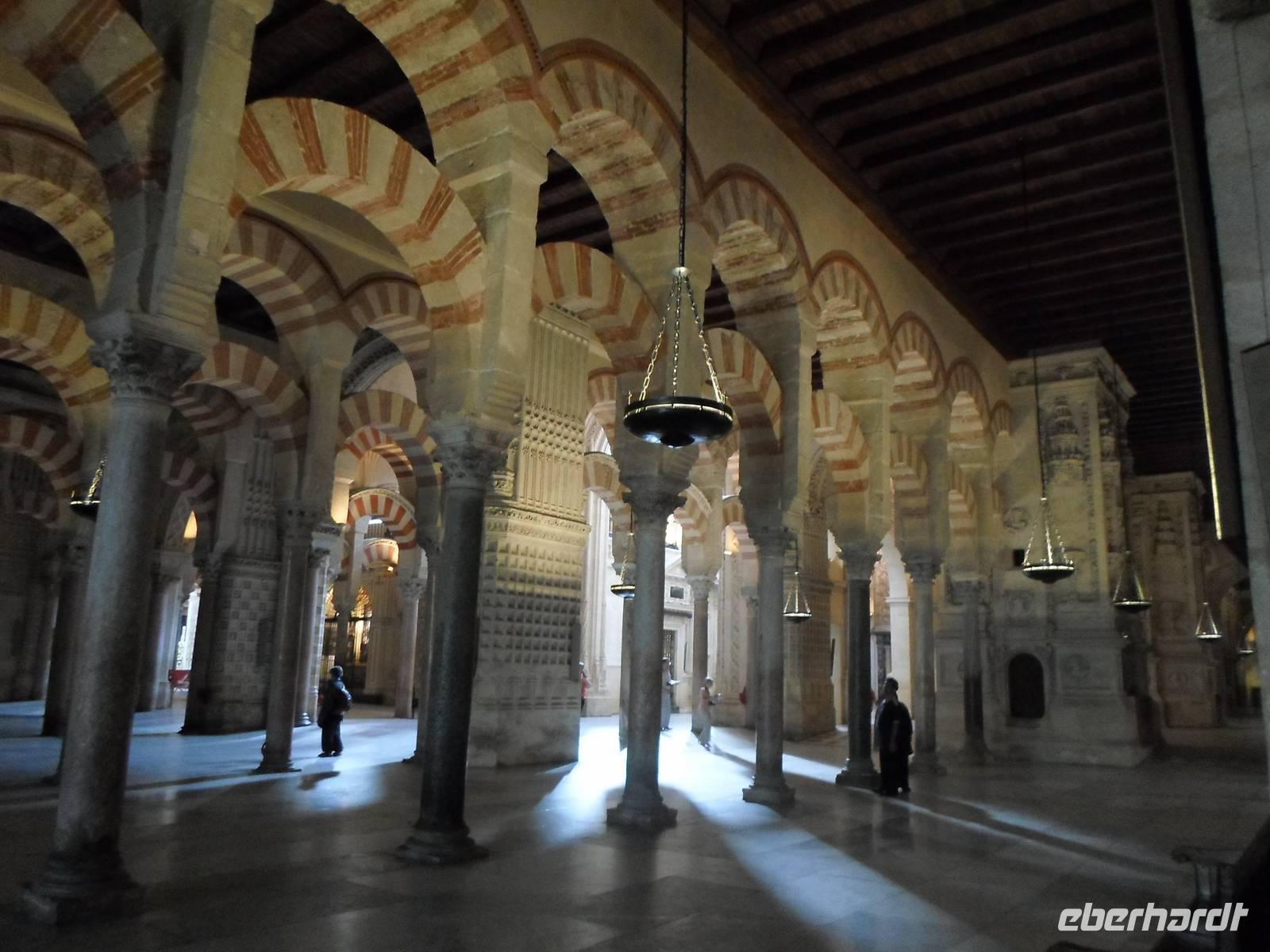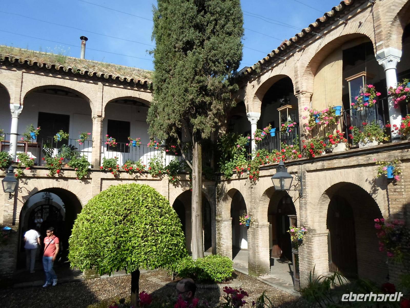 Heute laufen wir mit unserer Reiseleiterin Imma durch die hübschen, engen Gassen von Cordoba vorbei an weißgetünchten Häusern, über kleine Plätze im Judenviertel, besuchen einen kleinen mit Blumen und Zitrusfrüchten gestalteten Innenhof. Alles ist wunderschön. Mächtige Brücken und die Mezquita - die ehemaligee maurische Hauptmoschee des westlichen Islams sind beeindruckende Zeugnisse vergangener Zeiten, die wir staunend betrachten. Gerade die Kathedrale, inmitten einer Moschee erbaut, ist ein faszinierendes Zeugnis vergangener Zeiten. Umgeben von tausenden Säulen