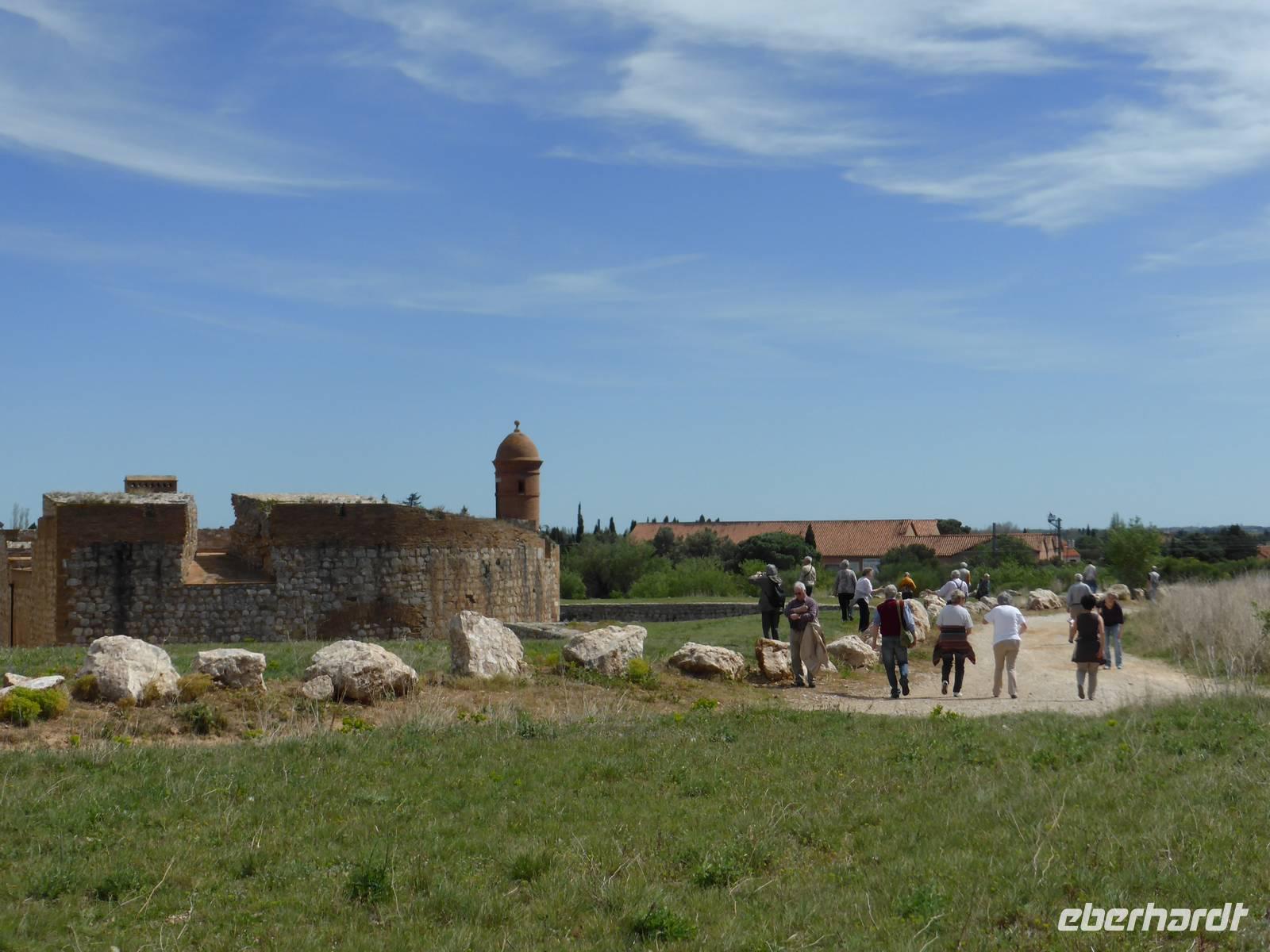 Am Morgen begannen wir unsere Fahrt entlang der Rhone. In der Provence, nahe der Stadt Orange, verließen wir den Flusslauf, um in Richtung Spanien weiter zu fahren. Unsere Reise führte uns parallel zur Küste des Golfs du Lion, vorbei an den Städten Nimes, Narbonne und Beziers in Richtung französisch-spanischer Grenze. Bei Perpignan hielten wir auf dem Parkplatz der Festungsanlage „Forteresse de Salses". Von dort spazierten wir zu diesem gewaltigen Verteidigungsbauwerk, für dessen heutiges Aussehen der französische Festungsbaumeister Vauban die Planung übernahm. Der Spaziergang war eine willkommene Abwechslung an unserem zweiten Reisetag und die Bewegung bei sonnigem Wetter und warmen Temperaturen tat uns allen gut. Anschließend führte uns die Fahrt über die Pyrenäen in die Autonome Region Katalonien, vorbei an Figueres, Barcelona, Tarragona zu unserem Hotel „California Garden" in Salou.