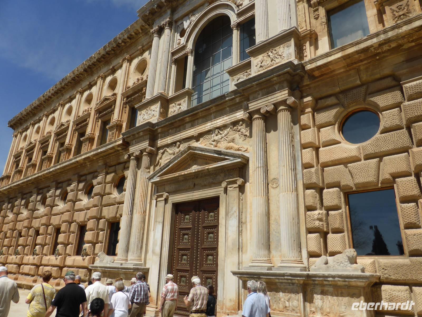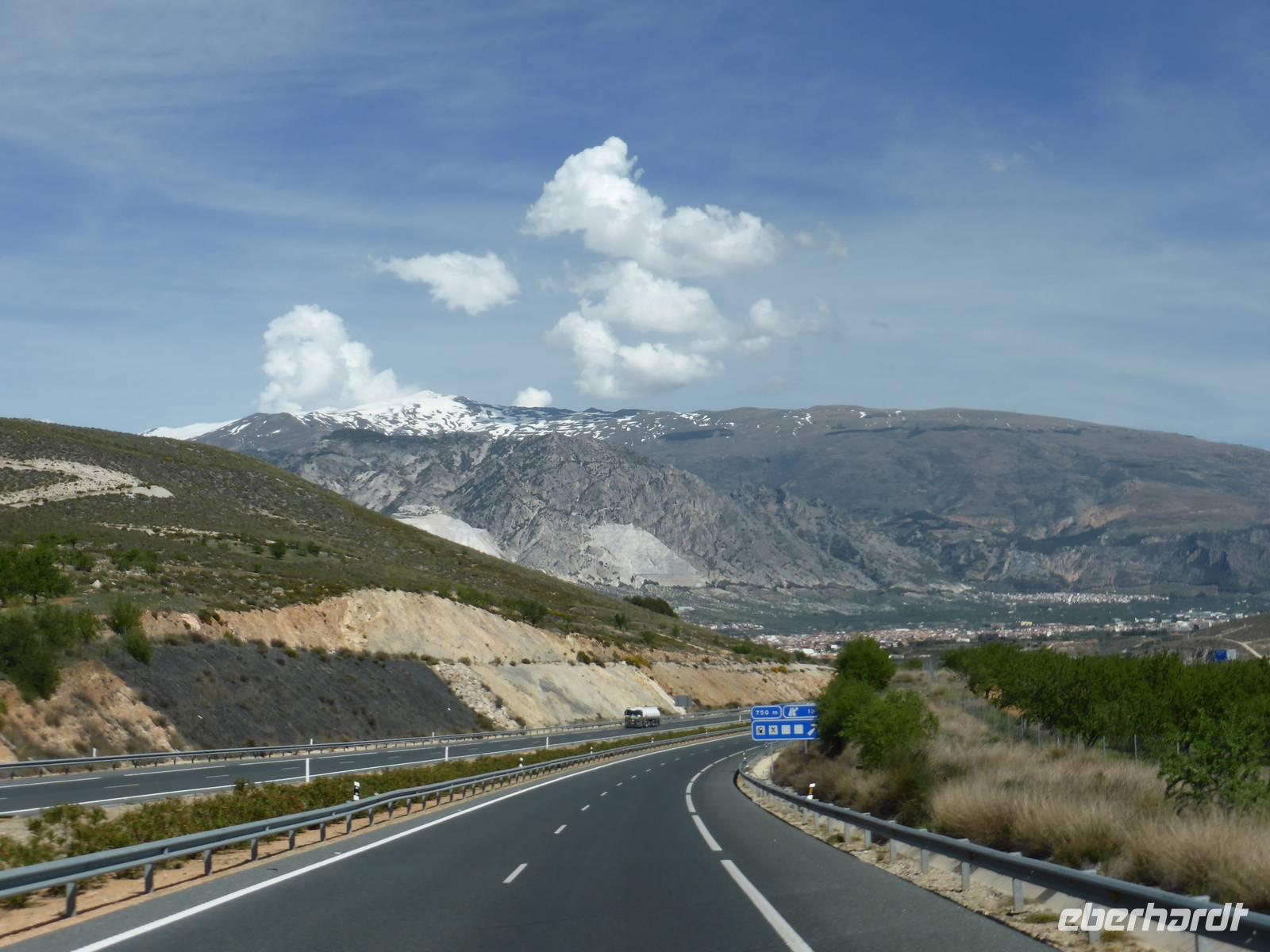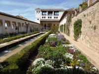 Von Salou aus fuhren wir weiter in Richtung Süden. Wir hatten für unsere Fahrt bestes Reisewetter bestellt und kamen zügig voran. Zwischen dem Iberischen Randgebirge auf der einen Seite und der Costa Azahar sowie der Costa Blanca auf der anderen Seite fuhren wir durch die bewässerten Zitrusfrucht-Plantagen (Huertas) der Regionen Valencia und Murcia. In Andalusien angekommen, führte uns die Strecke an den Höhlenwohnungen von Guadix vorbei und entlang der Fahrtroute genossen wir immer wieder die schönen Ausblicke auf die schneebedeckten Berge der Sierra Nevada sowie auf den Mulhacen, den mit 3482 m höchsten Berg des spanischen Festlandes. Am Rand dieser fantastischen Gebirgslandschaft liegt auf 730 m Höhe Granada, zwischen den beiden Hügeln der Alhambra und des Albaicin. Während unseres Abendessens im Hotel „Alixares" stellte uns die Gruppe „Universidad de Granada" einige Lieder ihrer zum Verkauf angebotenen CD vor.