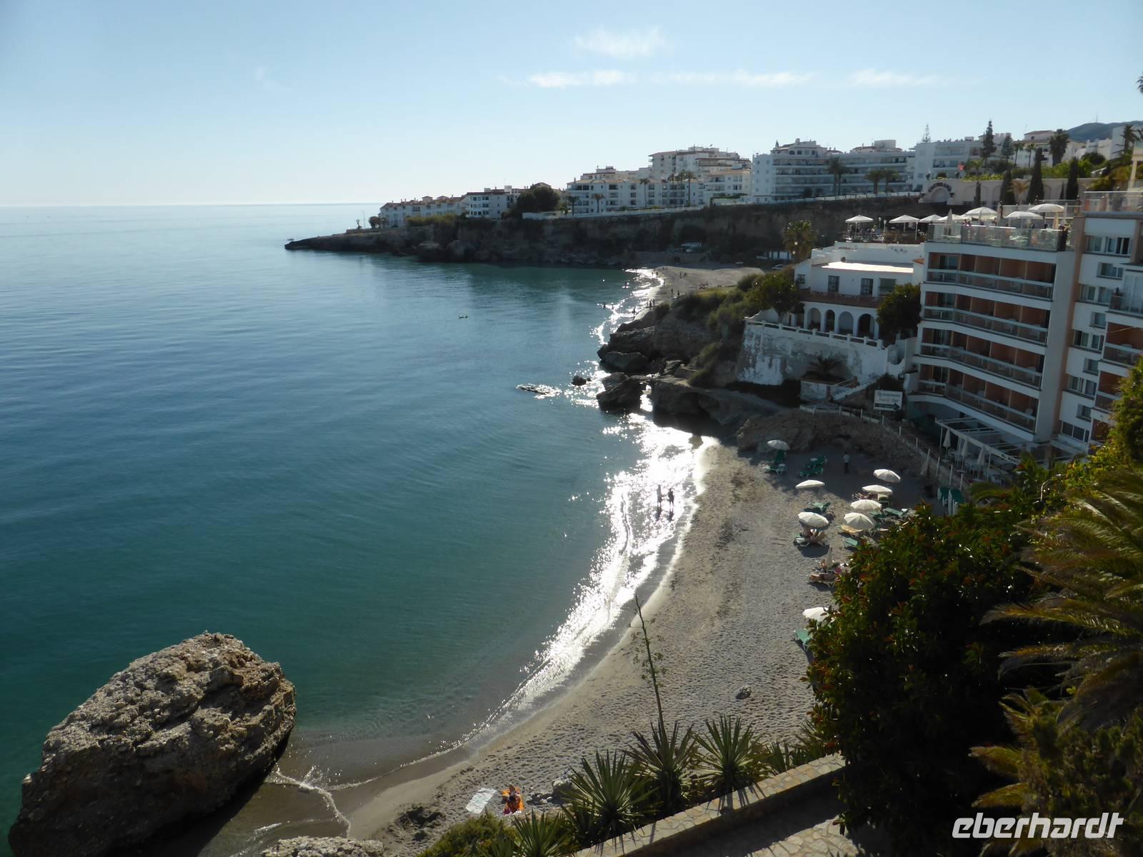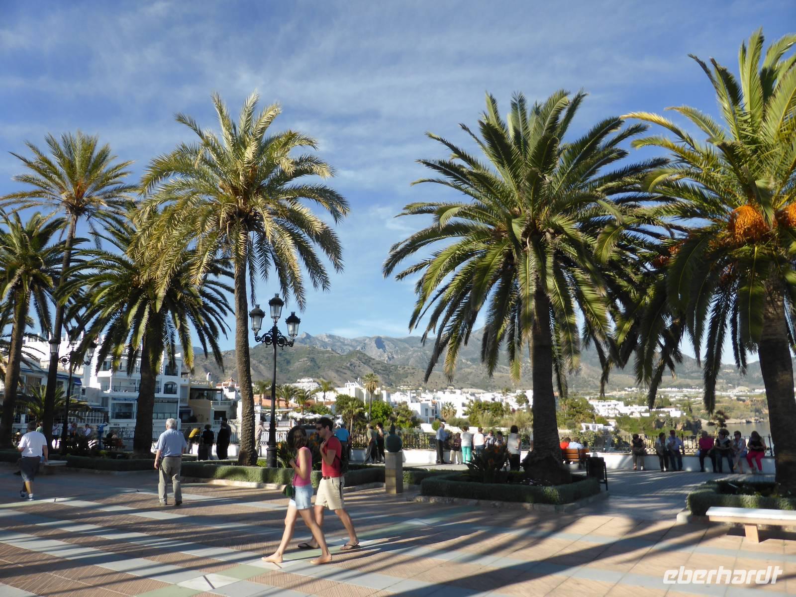 Am Morgen fuhr uns unser Fahrer Jörg mit dem Bus hinunter ins Stadtzentrum. Dort sahen wir bei einem gemeinsamen Rundgang das Rathaus, die ehemalige Karawanserei , den „Neuen Platz"- Plaza Nueva, die Einkaufsgassen des Albaicin mit ihren Lederwaren- und Wasserpfeifen-Geschäften, die Capilla Real sowie den sich anschließenden Suq, einst das arabisch-maurische Geschäfts- und Handwerkerviertel der Stadt. Anschließend war Freizeit für die Besichtigung der Kathedrale oder einen Besuch in der Capilla Real. Gegen Mittag holte uns Jörg wieder mit dem Bus vom Treffpunkt ab und wir fuhren wieder zu unserem Hotel auf den Alhambra-Hügel. Hier wurden wir gegen 13.00 Uhr von Paco, einem unserer beiden Führer durch die Alhambra, abgeholt. Die Alhambra ist neben dem Prado-Museum in Madrid die am meisten besuchte Sehenswürdigkeit in Spanien. Am Besuchereingang der Alhambra teilten unsere Führer die Audiogeräte aus und begannen mit der Führung durch die Alhambra und durch die Paläste der Nasriden. Im Empfangssaal des maurischen Herrschers fühlt man sich in die Vergangenheit zurück versetzt. Man sieht vor dem geistigen Auge unter der prächtigen Zedernholzkuppel den Sultan auf weichen Polsterkissen in seiner Nische sitzen. Von drei Seiten fiel das Licht auf die eintretenden Gesandten ein, so dass sie derart geblendet den Sultan nur in groben Umrissen im Schatten erkennen konnten. Das war beabsichtigt und flößte Respekt ein. Anschließend ging es durch die Gärten des Generalife. Die Anlagen, gegliedert durch die hohen Thuja-Hecken mit vielen Wasserspielen und kleinen Kanälen, machen den ehemaligen Sommersitz der maurischen Könige zu einem wahren Paradies. Gegen 16.00 Uhr fuhren wir dann weiter in Richtung Malaga. Für unsere Fahrtstrecke hatten wir den Weg über Motril entlang der Küstenstraße gewählt. In Nerja, einer der schönsten Städte an der Costa del Sol, besuchten wir den „Balkon Europas", eine Promenade, welche die beiden Stadtstrände Nerjas voneinander trennt und sich weit ins Meer schiebt. König Alfons XII. soll den Begriff „Balkon Europas" geprägt haben. Nach diesem schönen Aufenthalt setzten wir unsere Fahrt nach Malaga fort. Dort angekommen hatten wir Probleme, unser in der Innenstadt gelegenes Hotel „Eurostar Astoria" anzufahren. Letztendlich hielten wir in einer Parallelstraße und rollten unsere Koffer zum Hotel.