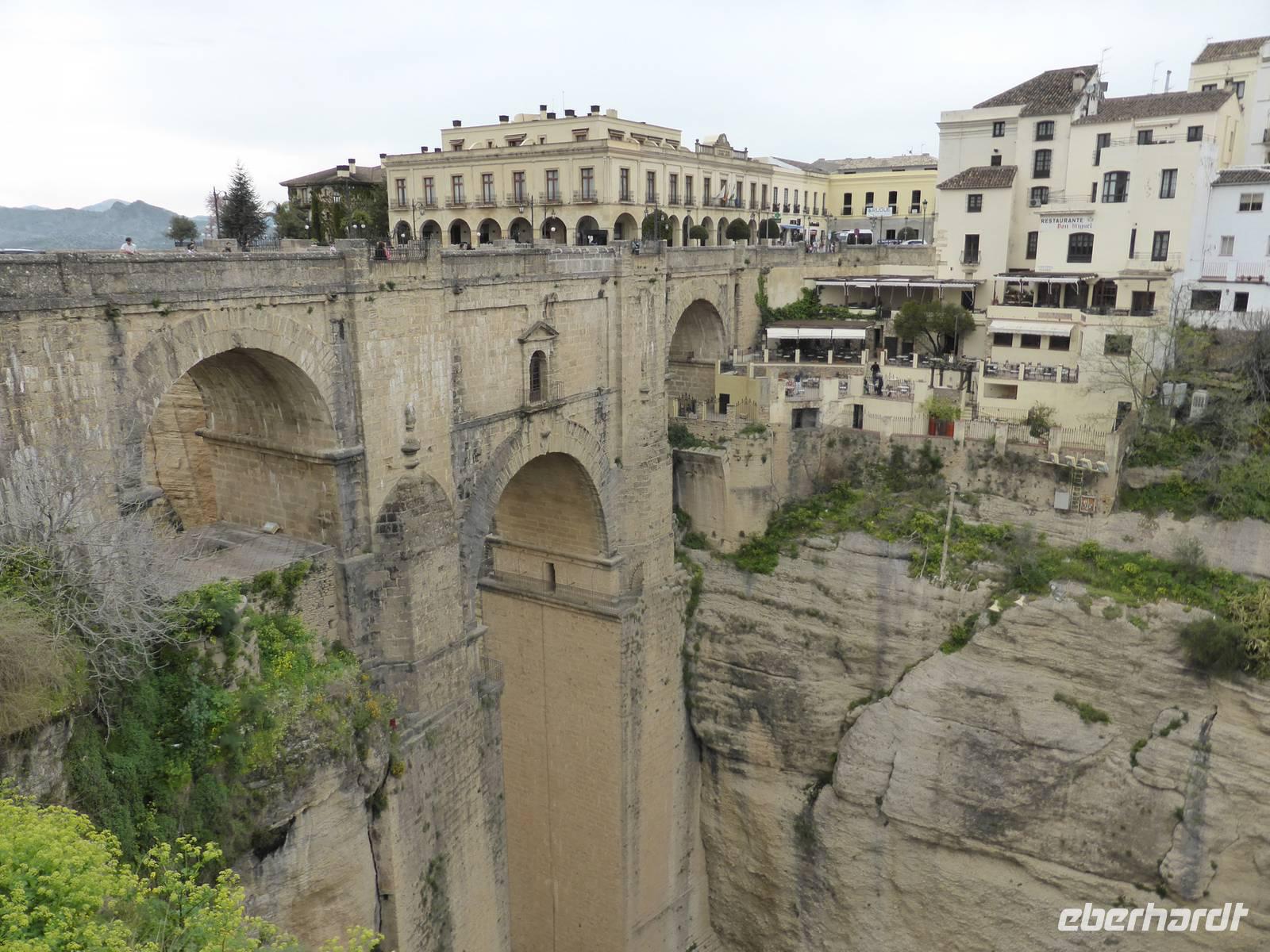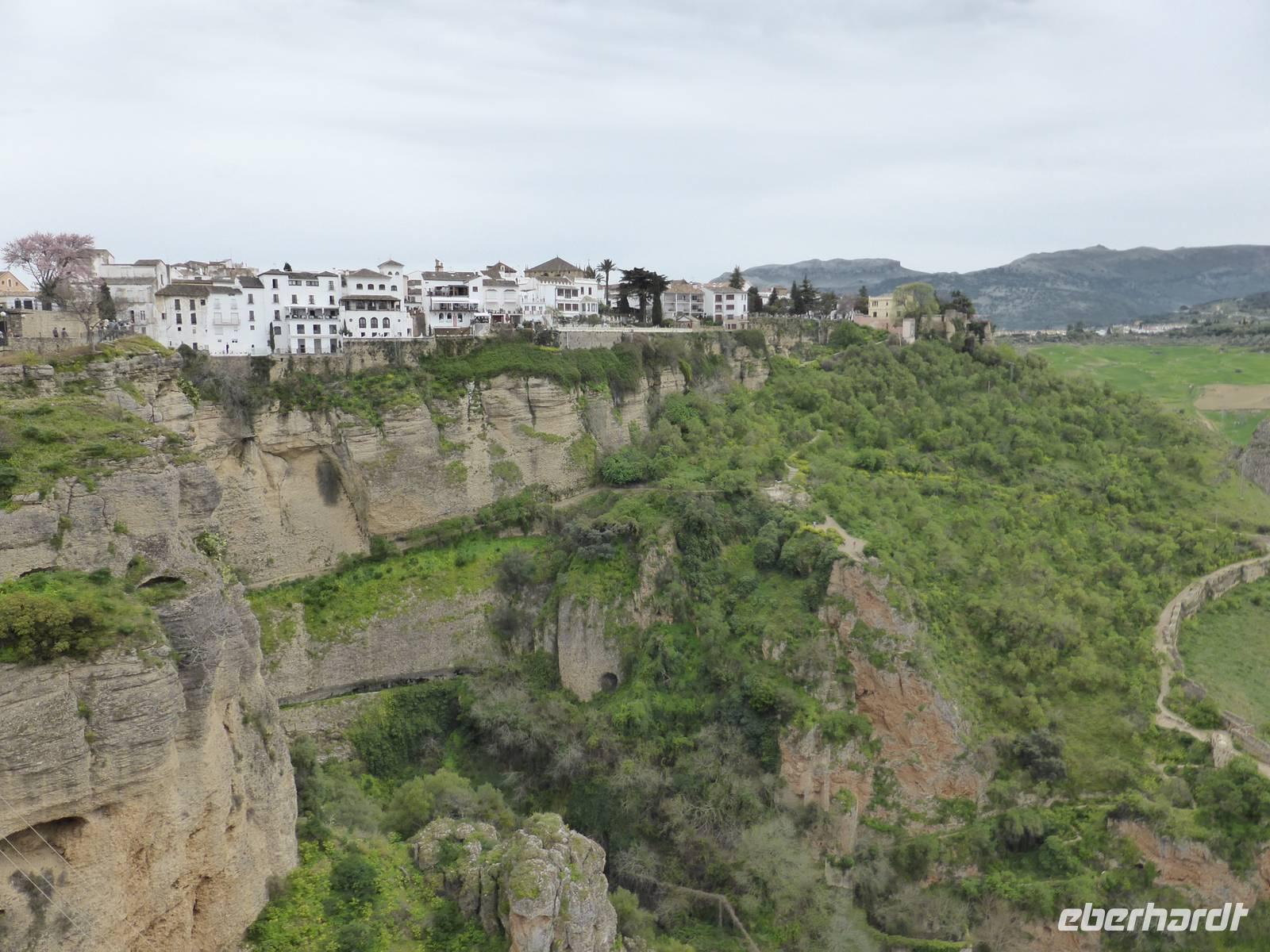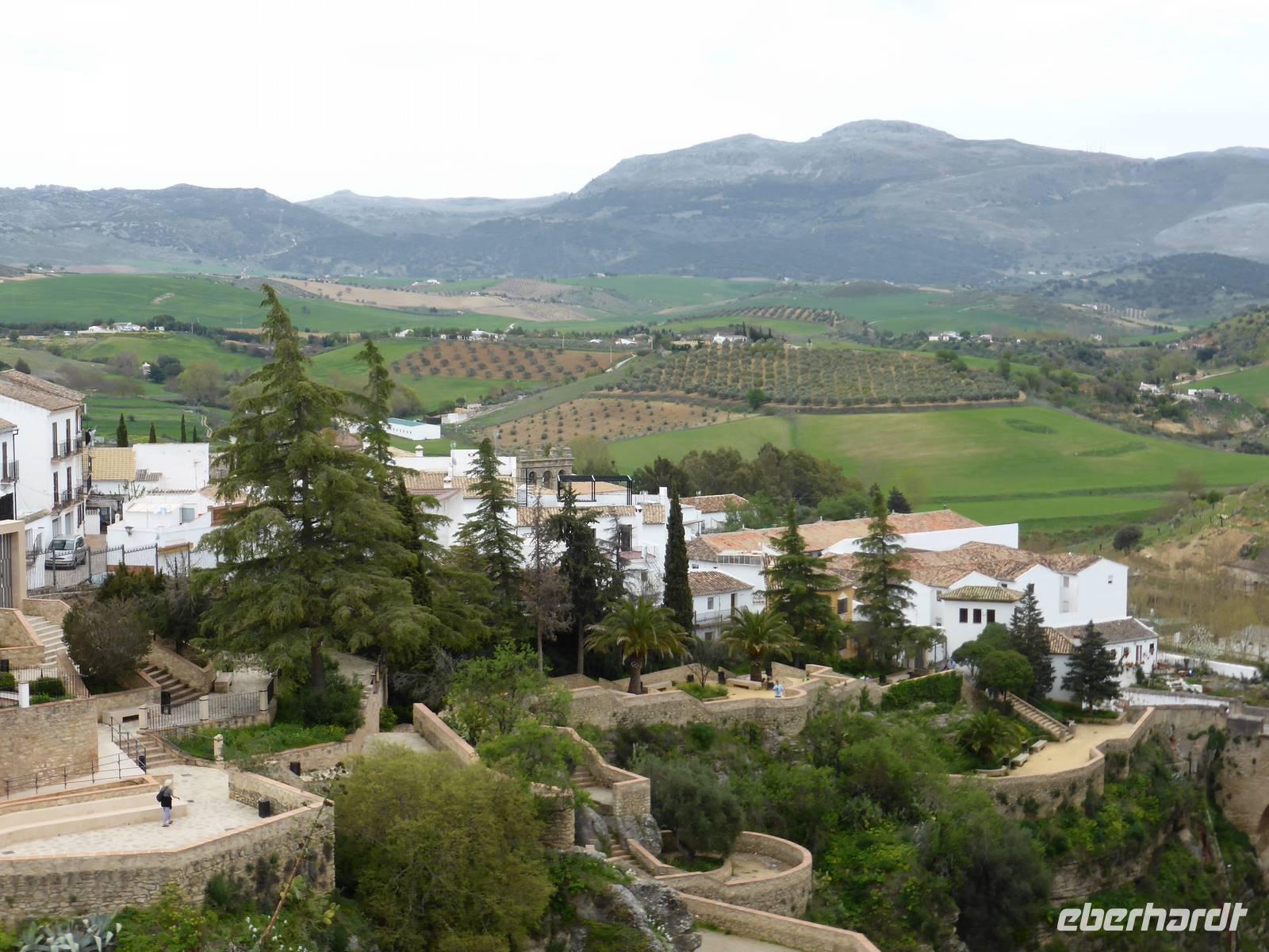 Mit unserem örtlichen Stadtführer, Juan Antonia, fuhren wir als erstes zur Hafenpromenade von Malaga. Vor reichlich einem Jahr wurden die Bauarbeiten beendet und die vielen kleinen Cafes und Restaurants von den Besuchern in Besitz genommen. Nach diesem Fotostopp ging es hinauf zum Aussichtspunkt „Mirador Gibralfaro". Von dort hatten wir einen spektakulären Blick über Malaga und sahen neben der Stierkampfarena auch den gesamten Hafenbereich sowie die Dächer der Innenstadt mit Kathedrale. Vom Aussichtspunkt ging es dann hinunter zum Plaza de la Merced, wo wir unsere Stadtbesichtigung mit einem Rundgang fortsetzten. Wir sahen das Geburtshaus Pablo Picassos, das Teatro Romano, die maurische Festung (Alcazaba) sowie die Kathedrale. Wir beendeten unseren gemeinsamen Rundgang an der Haupt-Geschäftsstraße „Marques de Larios". Gegen Mittag fuhren wir dann nach Marbella. Dort angekommen spazierten wir gemeinsam durch die Altstadt zum Plaza de los Naranjos, zur arabischen Burgmauer und zur Avenida del Mar, auf der Bronzeplastiken des Katalanen Salvator Dali zu sehen sind. Viele Gäste nutzten die Gelegenheit für einen kurzen Besuch der Strandpromenade. Von Marbella aus fuhren wir anschließend über die Gebirgskette der Serrania de Ronda nach Ronda. Hier erwarteten uns bereits unsere beiden Stadtführer Maria und Jesus, deren Namen wir gerade in der Woche vor Ostern mit einem Schmunzeln zur Kenntnis nahmen.