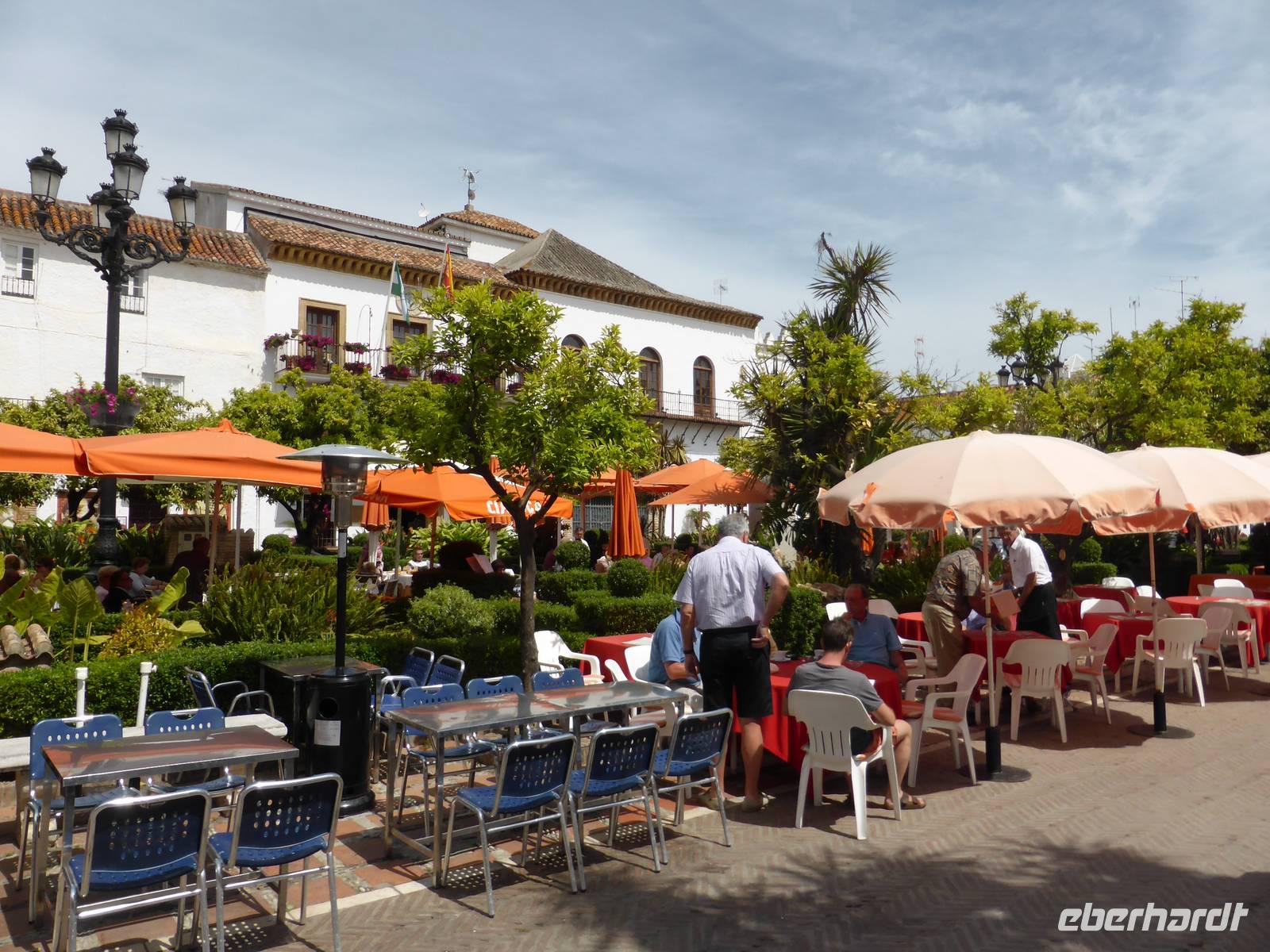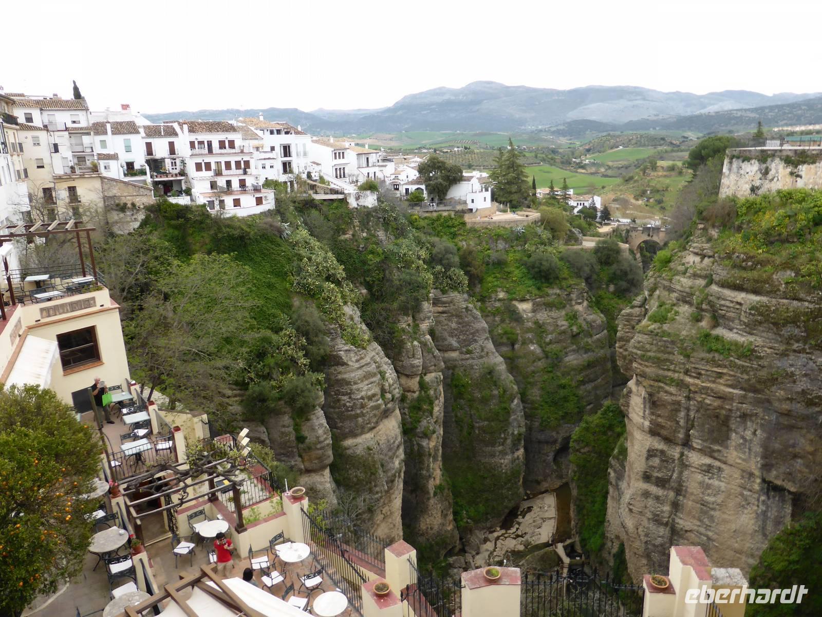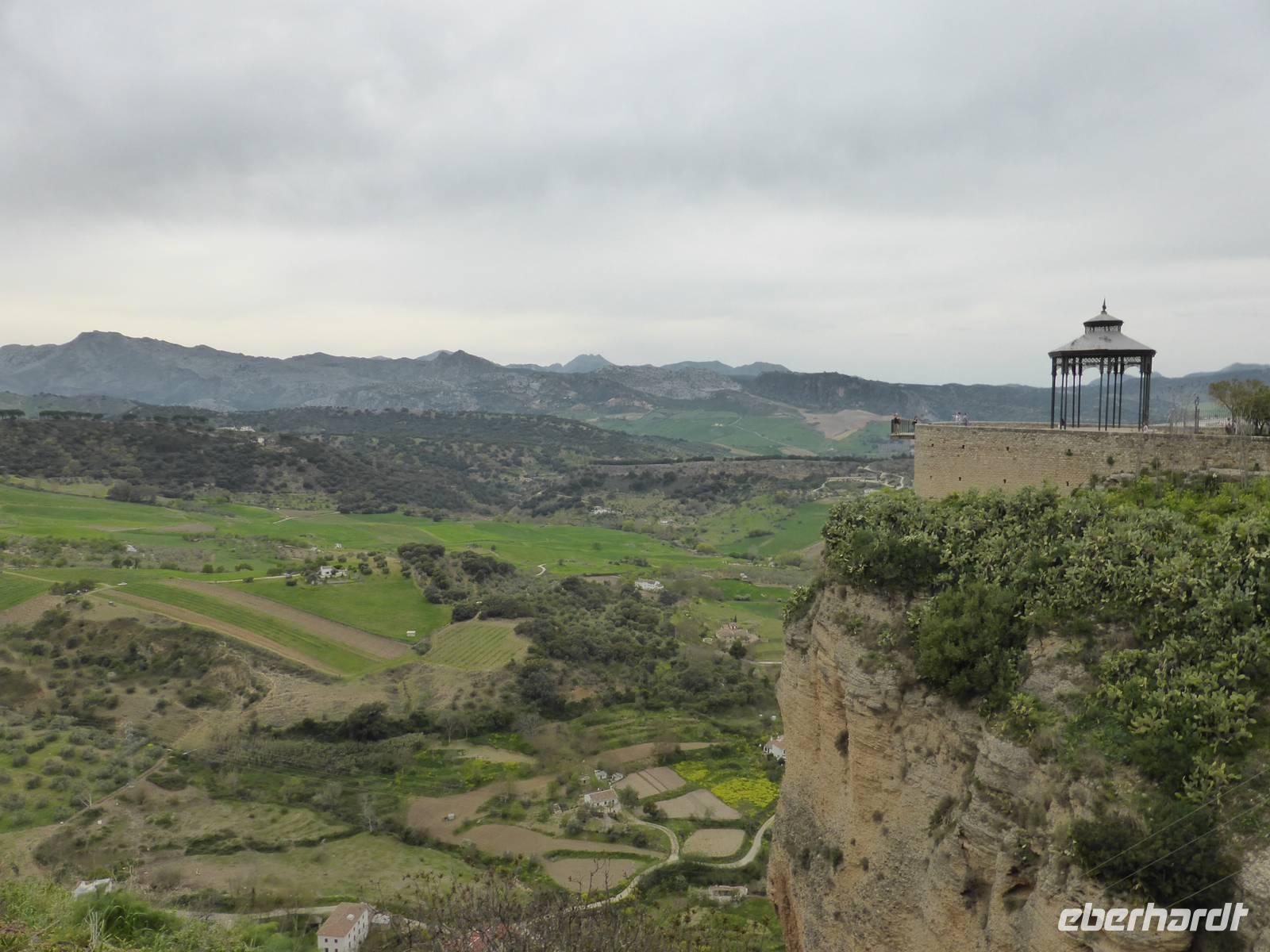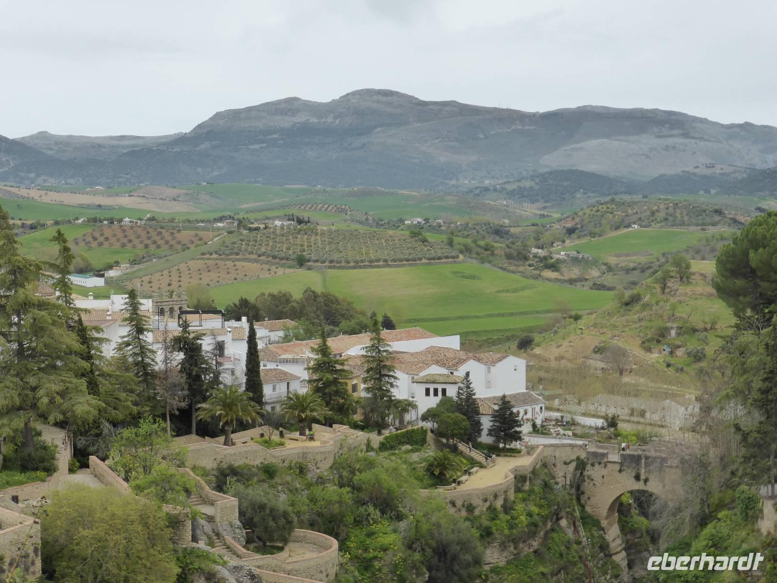 Mit unserem örtlichen Stadtführer, Juan Antonia, fuhren wir als erstes zur Hafenpromenade von Malaga. Vor reichlich einem Jahr wurden die Bauarbeiten beendet und die vielen kleinen Cafes und Restaurants von den Besuchern in Besitz genommen. Nach diesem Fotostopp ging es hinauf zum Aussichtspunkt „Mirador Gibralfaro". Von dort hatten wir einen spektakulären Blick über Malaga und sahen neben der Stierkampfarena auch den gesamten Hafenbereich sowie die Dächer der Innenstadt mit Kathedrale. Vom Aussichtspunkt ging es dann hinunter zum Plaza de la Merced, wo wir unsere Stadtbesichtigung mit einem Rundgang fortsetzten. Wir sahen das Geburtshaus Pablo Picassos, das Teatro Romano, die maurische Festung (Alcazaba) sowie die Kathedrale. Wir beendeten unseren gemeinsamen Rundgang an der Haupt-Geschäftsstraße „Marques de Larios". Gegen Mittag fuhren wir dann nach Marbella. Dort angekommen spazierten wir gemeinsam durch die Altstadt zum Plaza de los Naranjos, zur arabischen Burgmauer und zur Avenida del Mar, auf der Bronzeplastiken des Katalanen Salvator Dali zu sehen sind. Viele Gäste nutzten die Gelegenheit für einen kurzen Besuch der Strandpromenade. Von Marbella aus fuhren wir anschließend über die Gebirgskette der Serrania de Ronda nach Ronda. Hier erwarteten uns bereits unsere beiden Stadtführer Maria und Jesus, deren Namen wir gerade in der Woche vor Ostern mit einem Schmunzeln zur Kenntnis nahmen.