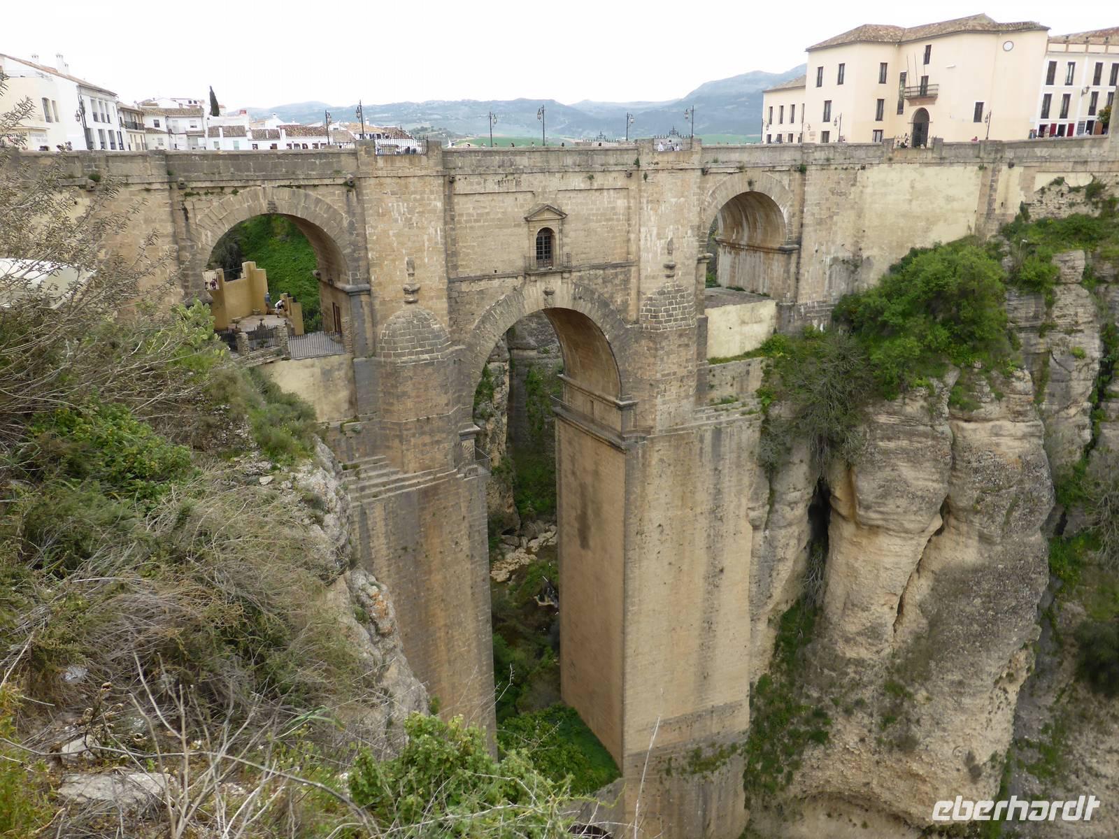 Unsere Besichtigung begann mit dem gemeinsamen Spaziergang zur Stierkampfarena, der ältesten Spaniens aus dem Jahre 1785. In Ronda wurden von Pedro Romero am Ende des 18./ Anfang des 19. Jahrhunderts die Regeln des Stierkampfes ausgearbeitet, die so genannte „Schule von Ronda", die bis in die heutige Zeit Gültigkeit besitzt. Von der Stierkampfarena aus spazierten wir zur Aussichtsterrasse, von welcher wir einen atemberaubenden Blick auf die fruchtbare Vega hatten. Im Tal konnten wir den Flusslauf des Rio Guadalevin sehen. Weiter ging es vorbei am Parador zur Brücke „Puente Nuevo", dem Wahrzeichen der Stadt. Sie ist knapp 100 Meter hoch und verbindet die Altstadt mit der Neustadt über einer senkrecht abfallenden Schlucht. Unsere Besichtigung führte uns anschließend zum Palacio Mandragon, dem heutigen Stadtmuseum und zur Kathedrale „Santa Maria la Mayor". Wie viele Kirchenbauten wurde auch diese Kathedrale anstelle einer ehemaligen Moschee errichtet und auch hier bildet das einstige Minarett den heutigen Glockenturm. Während unseres Besuches fanden gerade Proben mit einem Orchester und Schulklassen statt. Von Ronda aus fuhren wir dann zurück zum Mittelmeer und entlang der Küstenautobahn zu unserem Hotel „Asur Campo de Gibraltar" in La Linea.