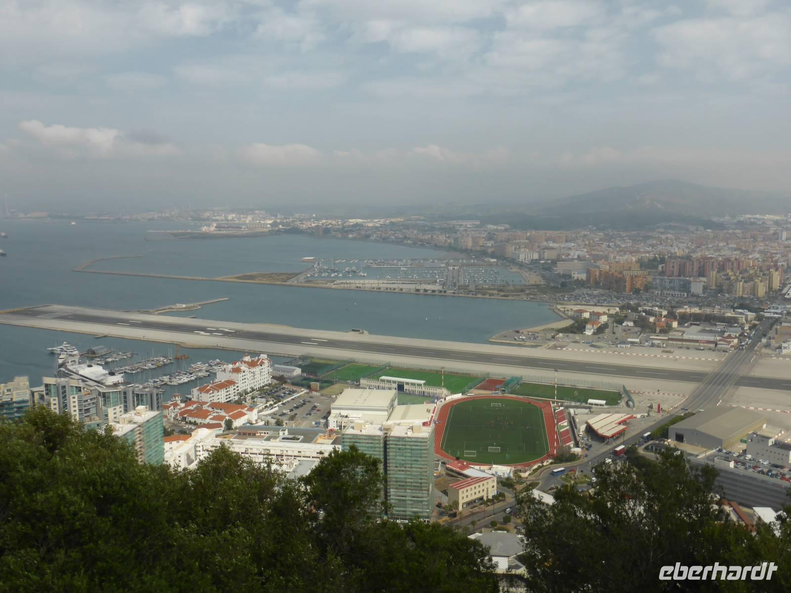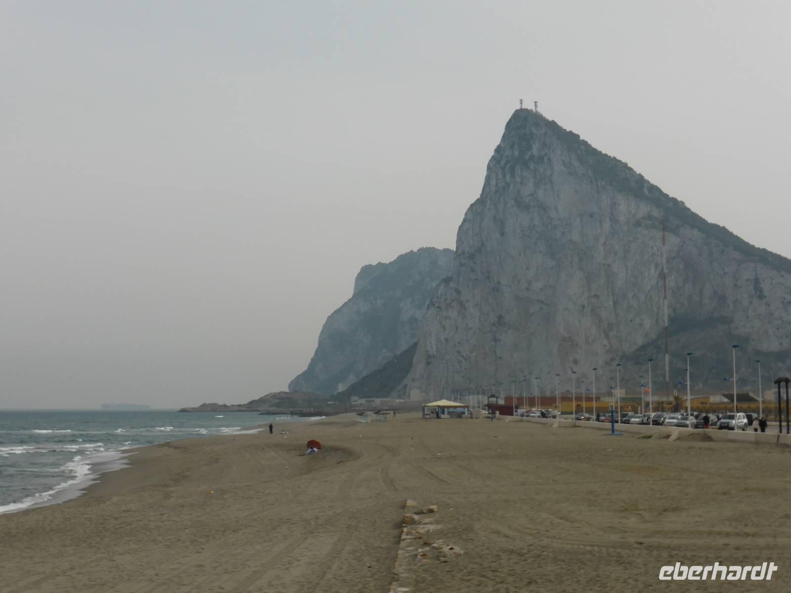 Über die Grenze La Linea-Gibraltar konnten wir dieses Mal mit dem Bus fahren. Allerdings kontrollierte ein Beamter im Bus unsere Ausweispapiere. Nach einer kurzen Pause am Busterminal fuhren wir mit den örtlichen Fahrern Charly und Tony in zwei Minibussen zum Europa-Point. Vom Band erhielten wir Informationen über Gibraltar. Viele Geschichten und Begebenheiten wurden so lustig erzählt, das wohl nur die Hälfte wirklich war gewesen ist. Unser erster Fotostopp war der Leuchtturm am Europa-Punkt. Normalerweise hat man von hier eine gute Aussicht auf die marokkanische Küste und das Riff-Gebirge. Es war zwar trocken und windig, aber die Sicht reichte nicht aus, um die Nordafrikanische Küste zu sehen. Der nächste Besichtigungspunkt war der Besuch der Sant Michaels Cave, einer Tropfsteinhöhle, die während des zweiten Weltkrieges als Lazarett genutzt wurde. Bereits bei unserer Ankunft begrüßten uns die Berberaffen, eine schwanzlose Makakenart, die sich längst an die vielen Besucher gewöhnt hat. Es heißt, so lange sie hier leben, bleibt Gibraltar unter britischer Hoheit. Unseren letzten Fotostopp legten wir oberhalb der Start- und Landebahn des Gibraltarer Flughafens ein. Tatsächlich konnten wir sehen, wie die Straße gesperrt wurde und ein Flugzeug zum Starten abhob. Unsere Rundfahrt endete wieder am Busterminal. Anschließend war Freizeit in Gibraltar für einen Bummel auf der Main Street oder einem Spaziergang zum Casemates Square. Danach fuhren wir nach La Linea zurück und den gesamten Nachmittag konnten wir uns selbst gestalten. Einige Gäste spazierten zum Strand von La Linea oder schauten sich den kleinen Jachthafen an.