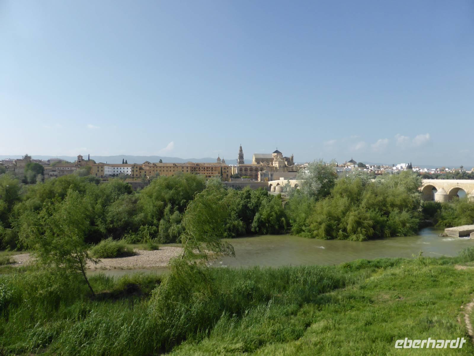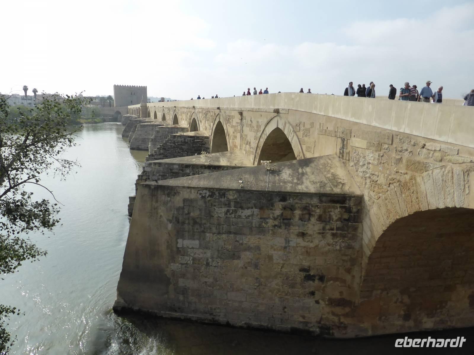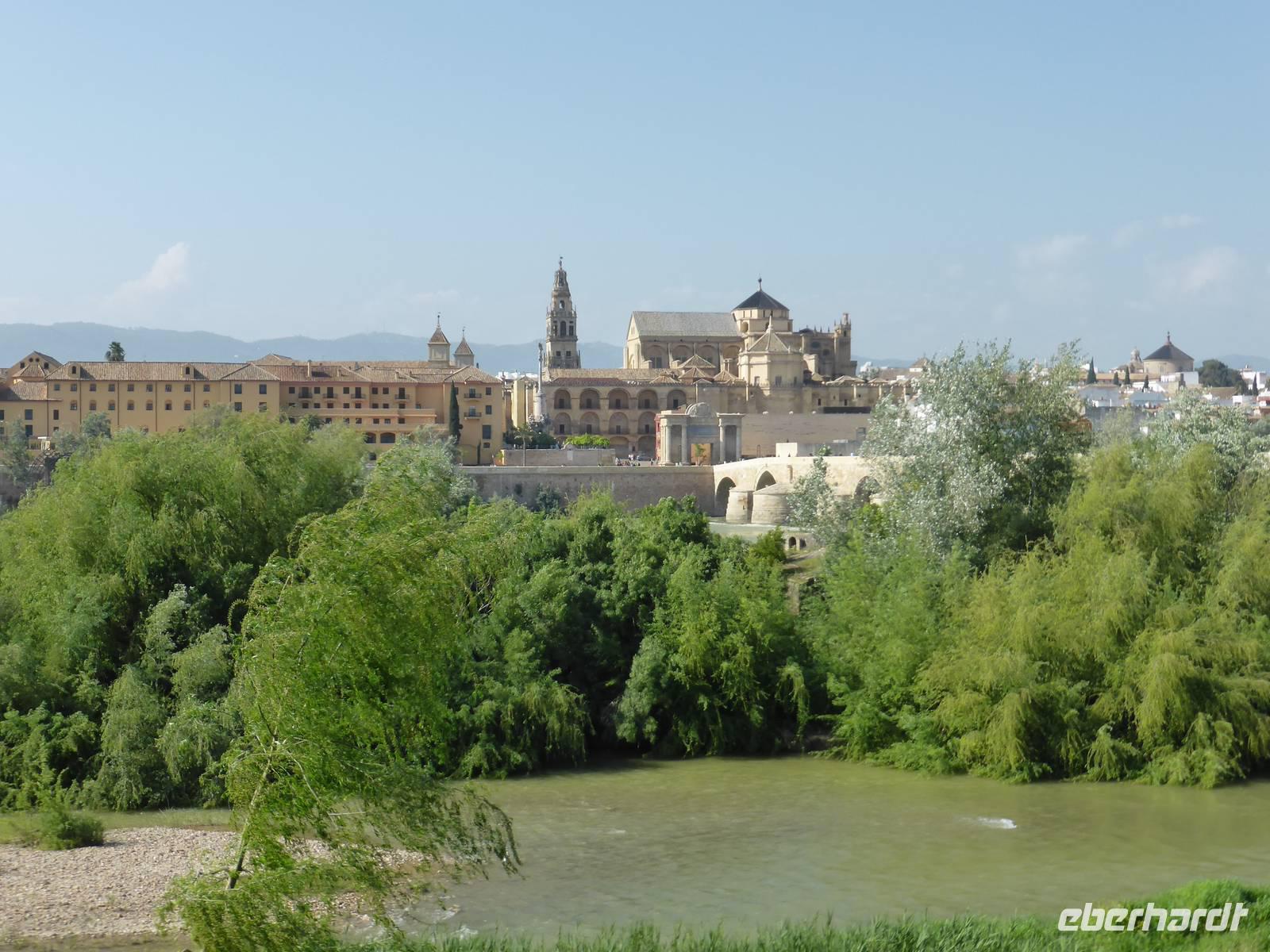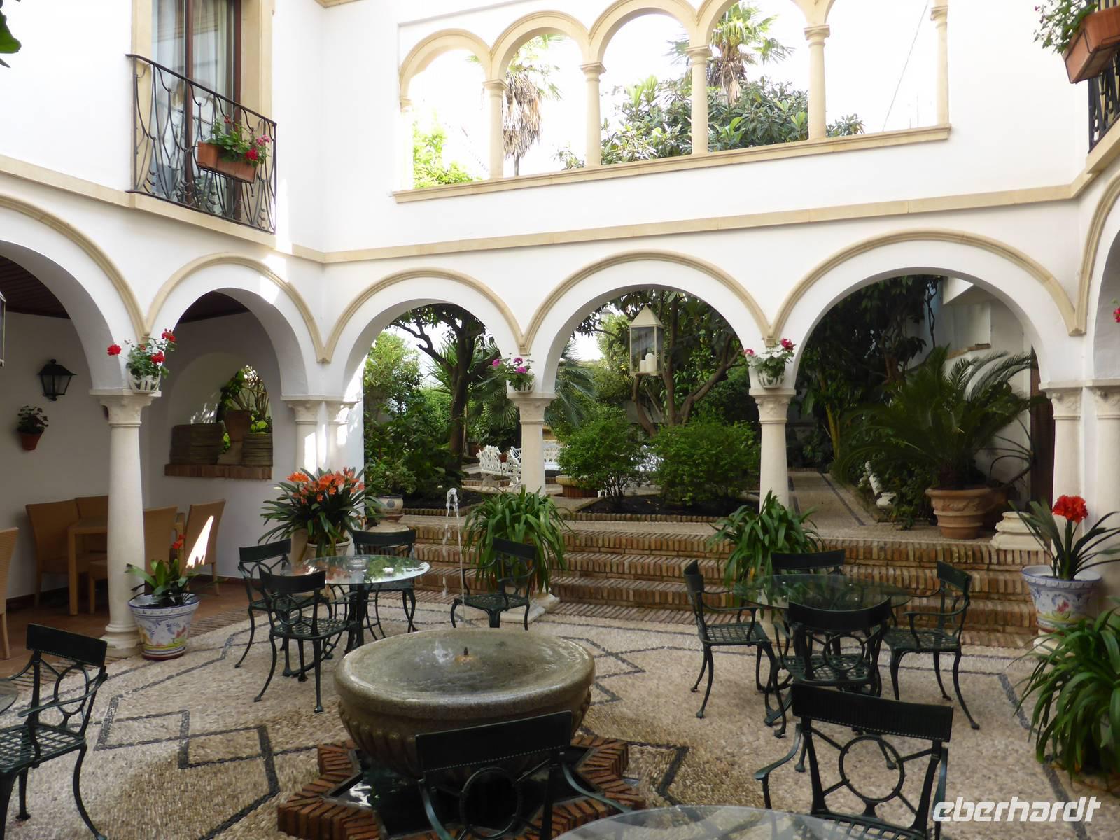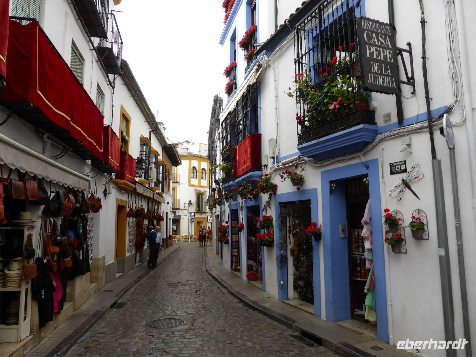 Wir wurden am Morgen von unserer örtlichen Stadtführerin Mercedes Perez vom Hotel abgeholt und fuhren mit dem Bus zum Plaza de Espana. Vier Brücken symbolisieren hier die mittelalterlichen Königreiche Kastilien, Leòn, Navarra und Aragòn, aus denen Spanien hervorging. Gebaut wurde der Spanische Platz anlässlich der Ibero-Amerikanischen Ausstellung, welche 1929 in Sevilla stattfand. Vom Spanischen Platz fuhren wir weiter zum Torre del Oro und stiegen dort aus dem Bus aus, um zum Königlichen Palast (Real Alcazar) zu spazieren, dessen Grundmauern teilweise noch auf römischen Ursprung zurückgehen. Die beeindruckendsten Gebäude stammen allerdings aus dem 14. Jahrhundert, der Regentschaft von Pedro des Grausamen. Er ließ mit Hilfe maurischer Baumeister einen Palast für seine Geliebte im Mudejarstil erbauen. Nach der Besichtigung des Alcazars spazierten wir durch die Juderia, das ehemalige Judenviertel Sevillas. Die Gassen sind alle verwinkelt und die Häuser zweistöckig, weiß gekalkt und mit einem kleinen Innenhof versehen (Patio). Nach einer kleinen Kaffeepause ging es dann weiter zur Kathedrale von Sevilla, erbaut auf den Umrissen eines römischen Tempels und einer späteren Moschee. Von der ehemaligen Moschee sind noch der Orangenhof sowie das Minarett, der heutige Glockenturm (Giralda), erhalten. Neueste Messungen haben ergeben, dass die Kathedrale von Sevilla die größte auf spanischem Boden ist, was wir ohne zu zögern anerkannten. Mercedes erklärte uns Chor und Hochaltar sowie das beeindruckende Kolumbusgrab. Zumindest ein Teil der Gebeine stammt von Christoph Kolumbus, das hat eine DNA-Analyse im Jahr 2006 ergeben. Nach der Besichtigung der Kathedrale verabschiedeten wir unsere Stadtführerin und hatten anschließend Zeit für die Mittagspause oder für eigene Unternehmungen. Die meisten von uns nutzten die Gelegenheit, um auf den Glockenturm Giralda zu laufen, von welchem sich eine tolle Aussicht über die Dächer von Sevilla bot. Am Nachmittag fuhren wir dann von Sevilla nach Cordoba. An der Puente Romana, der Römischen Brücke, legten wir einen ausgiebigen Fotostopp ein. Von da hatten wir den besten Blick auf die Brücke, auf das römischeTriumpf-Tor und auf die Mesquita-Kathedrale. Da unser Hotel „Maimonides" direkt neben der Mezquita lag, mussten wir an einem Treffpunkt unser Gepäck an Transferfahrzeuge übergeben und zu Fuß zum Hotel laufen. Das war bei dem schönen Wetter ein reines Vergnügen, nur das Gepäck ließ auf sich warten. Nach dem ausgezeichneten Abendessen im Hotel trafen wir uns in der Lobby, um gemeinsam einen Spaziergang durch das abendliche Cordoba zu unternehmen. Wieder zurück entschied sich ein Teil unserer Gruppe, den Abend bei einem Glas Wein im Innenhof des Restaurants „Bandolero" ausklingen zu lassen.