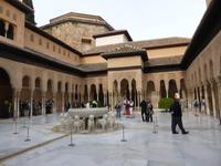Von Salou aus fuhren wir weiter in Richtung Süden. Wir hatten gutes Reisewetter und kamen zügig voran. Zwischen dem Iberischen Randgebirge auf der einen Seite und der Küstenlinie der Costa Azahar sowie der Costa Blanca auf der anderen Seite fuhren wir durch die bewässerten Zitrusfrucht-Plantagen (Huertas) der Regionen Valencia und Murcia. In Andalusien angekommen, führte uns die Strecke an den Höhlenwohnungen von Guadix vorbei und wir genossen immer wieder die schönen Ausblicke auf die schneebedeckten Berge der Sierra Nevada sowie auf den Mulhacen, den mit 3482 m höchsten Berg des spanischen Festlandes. Am Rand dieser fantastischen Gebirgslandschaft liegt auf 730 m Höhe Granada, zwischen den beiden Hügeln der Alhambra und des Albaicin. Während unseres Abendessens im Hotel „Alixares" spielte uns die Gruppe „Universidad de Granada" einige Lieder ihrer zum Verkauf angebotenen CD vor.
