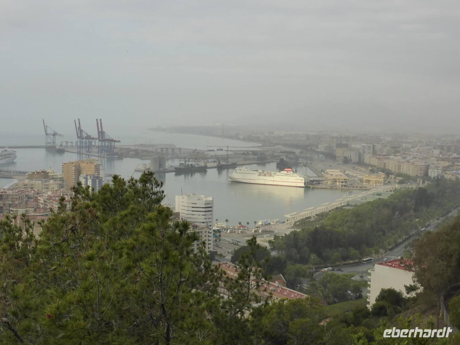 Mit unseren örtlichen Stadtführerinnen, Natalia und Cristina, fuhren wir als erstes zum Aussichtspunkt „Mirador de Gibralfaro". Von dort hatten wir einen spektakulären Blick über Malaga und sahen neben der Stierkampfarena auch den gesamten Hafenbereich. Wir begannen unseren gemeinsamen Rundgang nahe der Geschäftsstraße „Marques de Larios".
