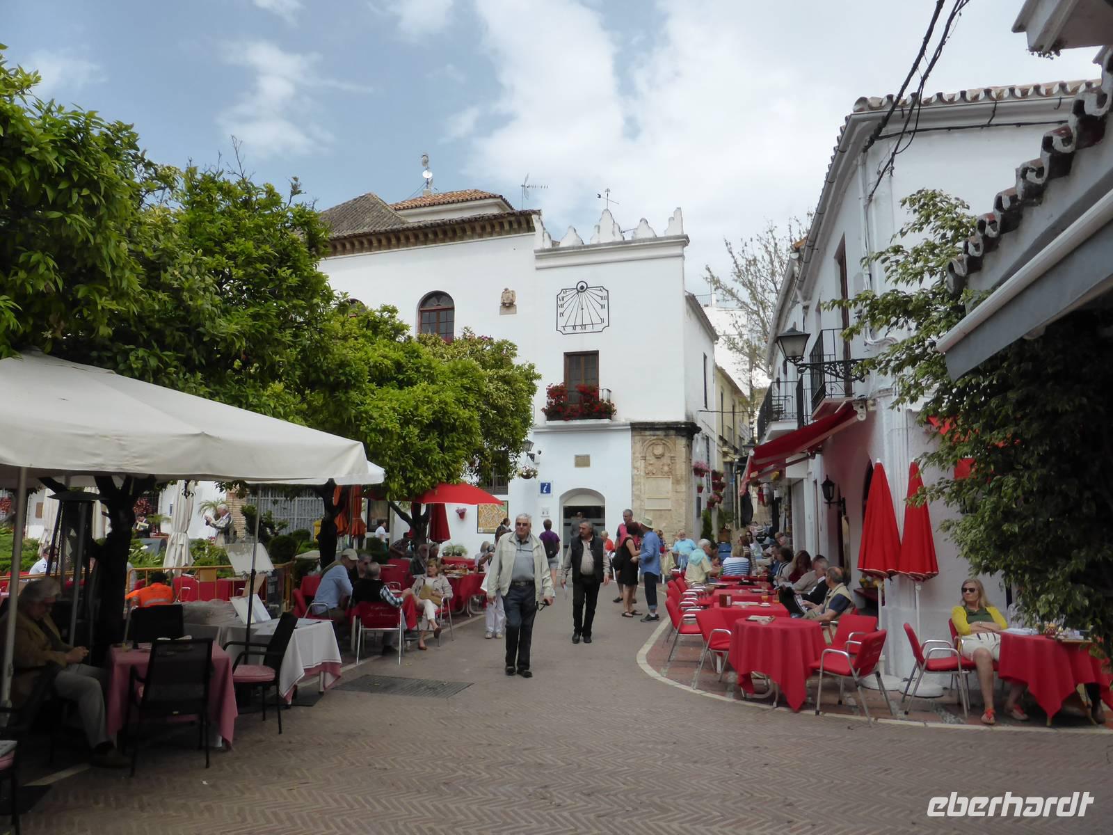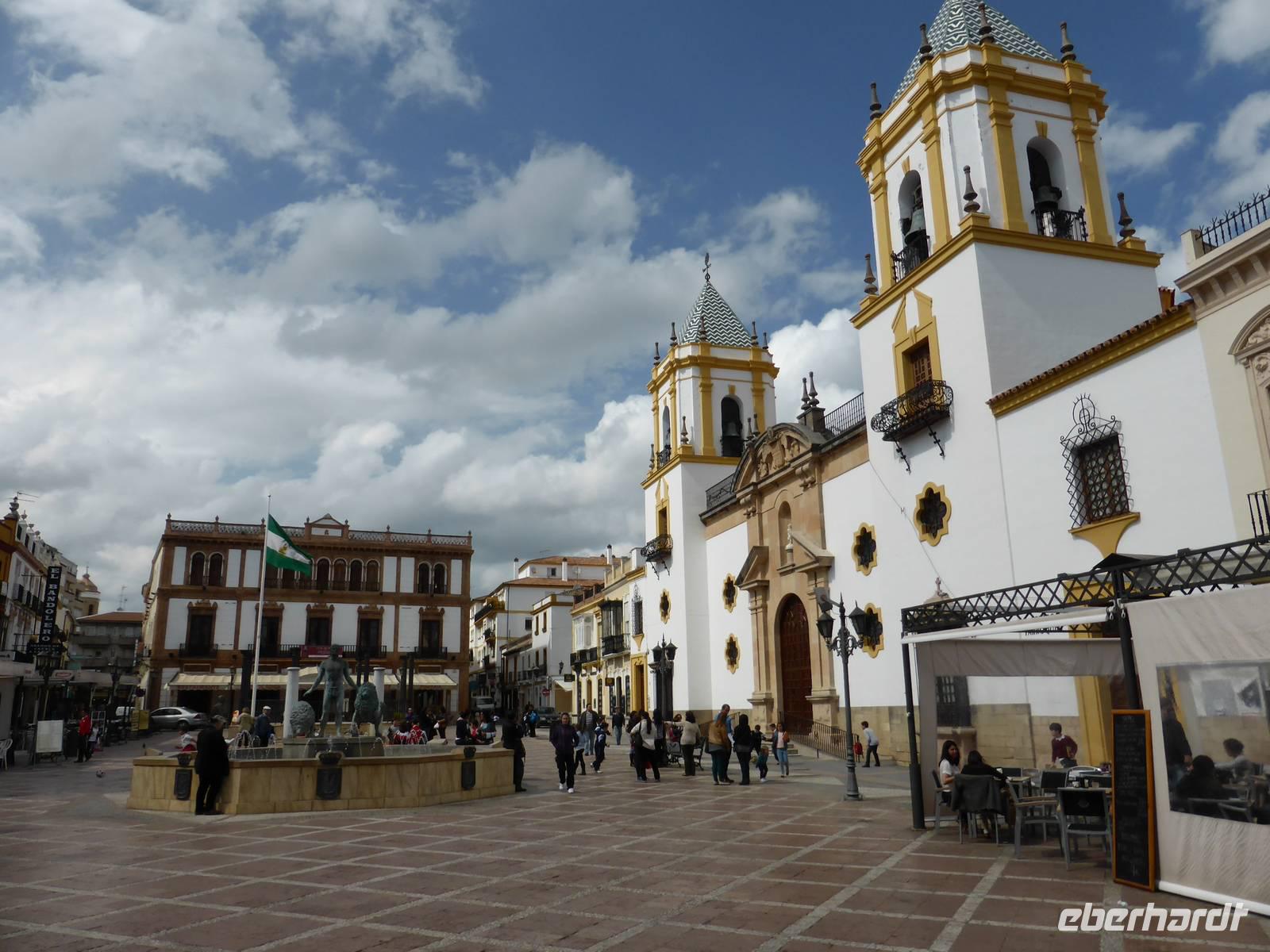 In den letzten Jahren wurde die Straße in eine Fußgängerzone umgewandelt und heute ist sie die beste Adresse Malagas. Durch schmucke Gassen ging es dann in den Mercado Central, der zentralen Markthalle, welche uns vor allem durch ihre Sauberkeit und durch die Frische der angebotenen Waren beeindruckte. Anschließend spazierten wir zur Kathedrale und zum Plaza de la Merced, wo wir das Geburtshaus von Pablo Picasso sahen. Am Teatro Romano, unterhalb der alten maurischen Festung (Alcazaba), erfuhren wir etwas über die Bedeutung Malagas in der Antike. Gegen Mittag fuhren wir weiter nach Marbella. Dort angekommen, spazierten wir gemeinsam durch die Altstadt zum Plaza de los Naranjos, zur arabischen Burgmauer und zur Avenida del Mar, auf der Bronzeplastiken des katalanischen Künstlers Salvator Dali zu sehen sind. Viele Gäste nutzten die Gelegenheit, am Strand bis zum Wasser zu laufen. Von Marbella aus ging es anschließend über die Gebirgskette der Serrania de Ronda nach Ronda. Hier erwartete uns bereits unser Stadtführer Juan, mit dem wir zum Treffpunkt mit unserer Stadtführerin Maria liefen. Wir teilten unsere Gruppe auf beide Stadtführer auf und sie begannen mit den Führungen.