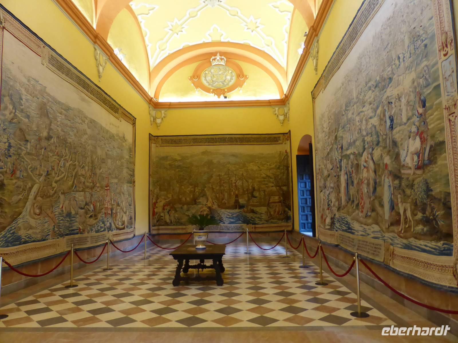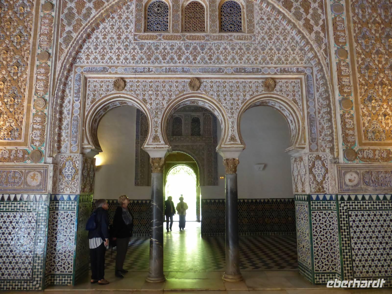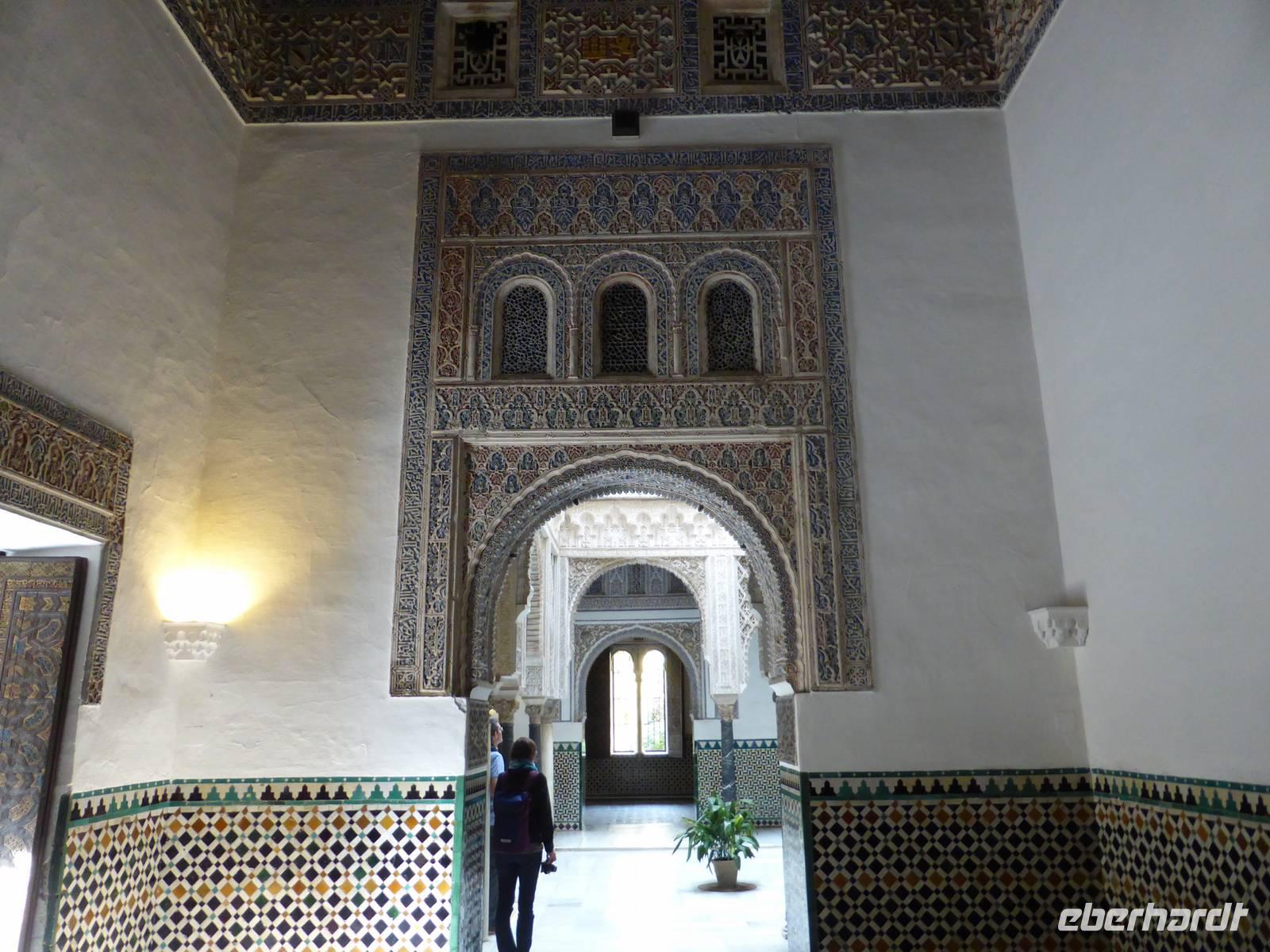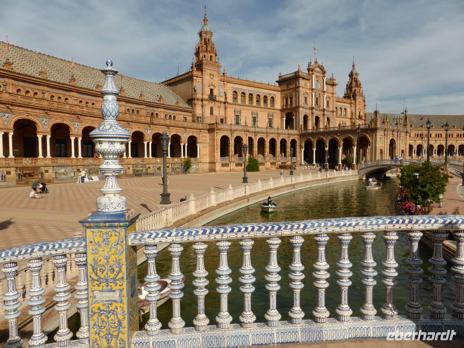 Wir wurden am Morgen von unserer örtlichen Stadtführerin Pillar Tobarcia vom Hotel abgeholt und fuhren mit dem Bus ins Zentrum. Zuerst besuchten wir den Königlichen Palast (Real Alcazar), dessen Grundmauern teilweise noch auf römischen Ursprung zurückgehen. Die beeindruckendsten Gebäude stammen allerdings aus dem 14. Jahrhundert, der Regentschaft von Pedro dem Grausamen. Er ließ mit Hilfe maurischer Baumeister einen Palast für seine Geliebte im Mudejarstil erbauen. Nach der Besichtigung des Alcazars spazierten wir durch die Juderia, das ehemalige Judenviertel Sevillas. Die Gassen sind alle verwinkelt und die Häuser zweistöckig, weiß gekalkt und mit einem kleinen Innenhof versehen (Patio). Den Abschluss unseres Stadtrundganges bildete der Besuch der Kathedrale von Sevilla, erbaut auf den Umrissen eines römischen Tempels und einer späteren Moschee. Von dieser sind noch der Orangenhof sowie das Minarett, der heutige Glockenturm (Giralda), erhalten. Neueste Messungen haben ergeben, dass die Kathedrale von Sevilla die größte auf spanischem Boden ist, was wir ohne zu zögern anerkannten. Mercedes erklärte uns Chor und Hochaltar sowie das beeindruckende Kolumbusgrab. Zumindest ein Teil der Gebeine stammt von Christoph Kolumbus, welches durch eine DNA-Analyse im Jahr 2006 belegt wurde. Nach der Besichtigung der Kathedrale verabschiedeten wir unsere Stadtführerin und hatten anschließend Zeit für die Mittagspause oder für eigene Unternehmungen. Die meisten von uns nutzten die Gelegenheit, auf den Glockenturm Giralda zu steigen, von welchem sich eine tolle Aussicht über die Dächer von Sevilla bot.