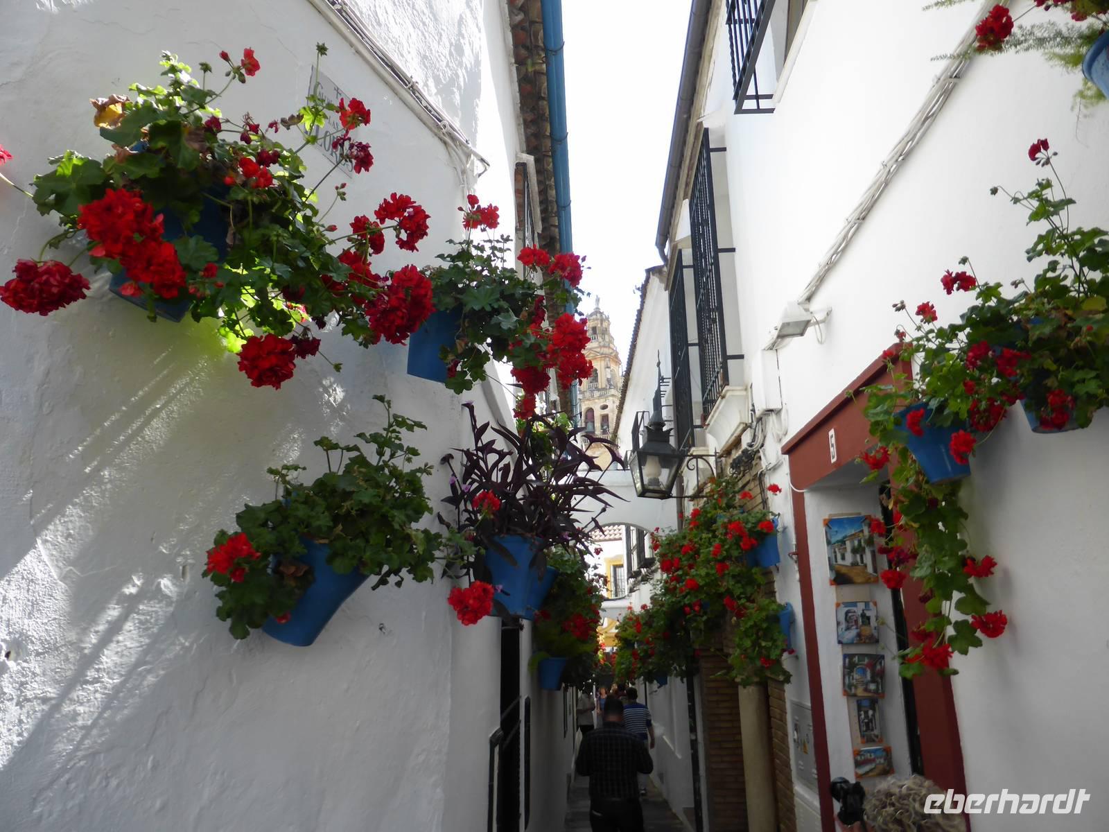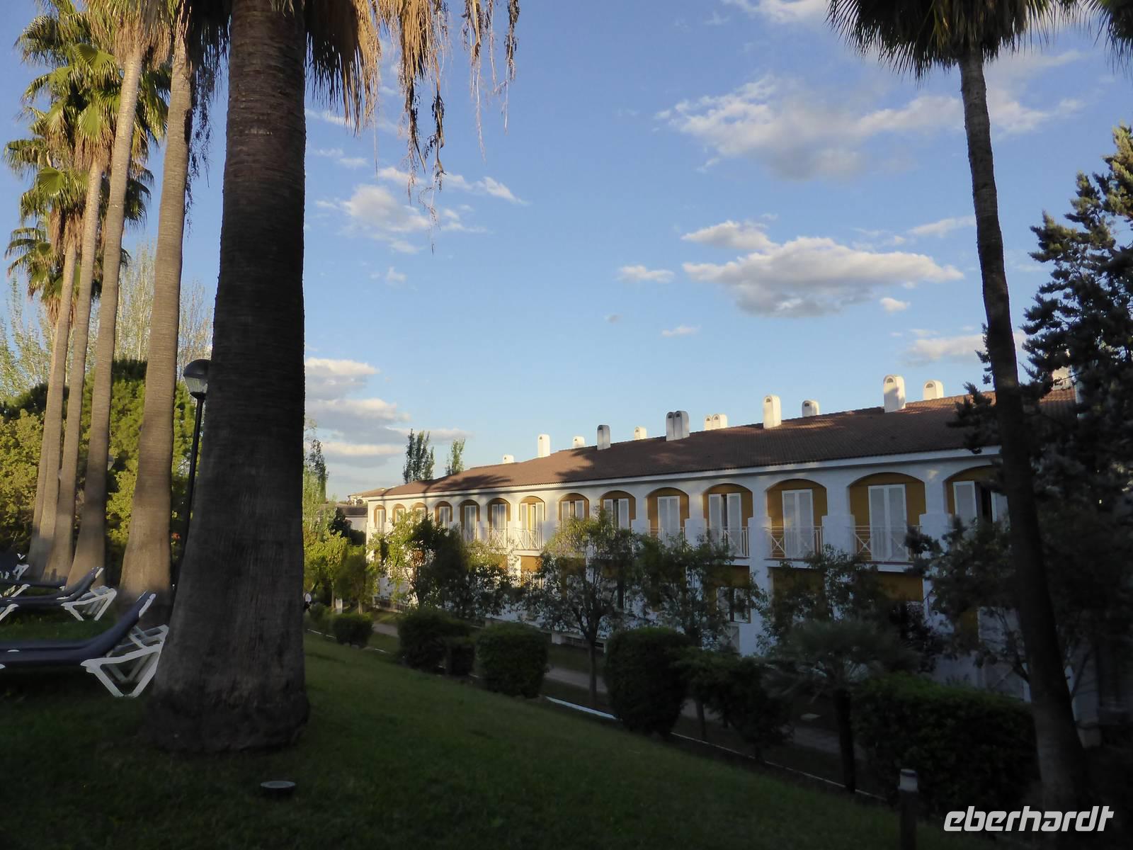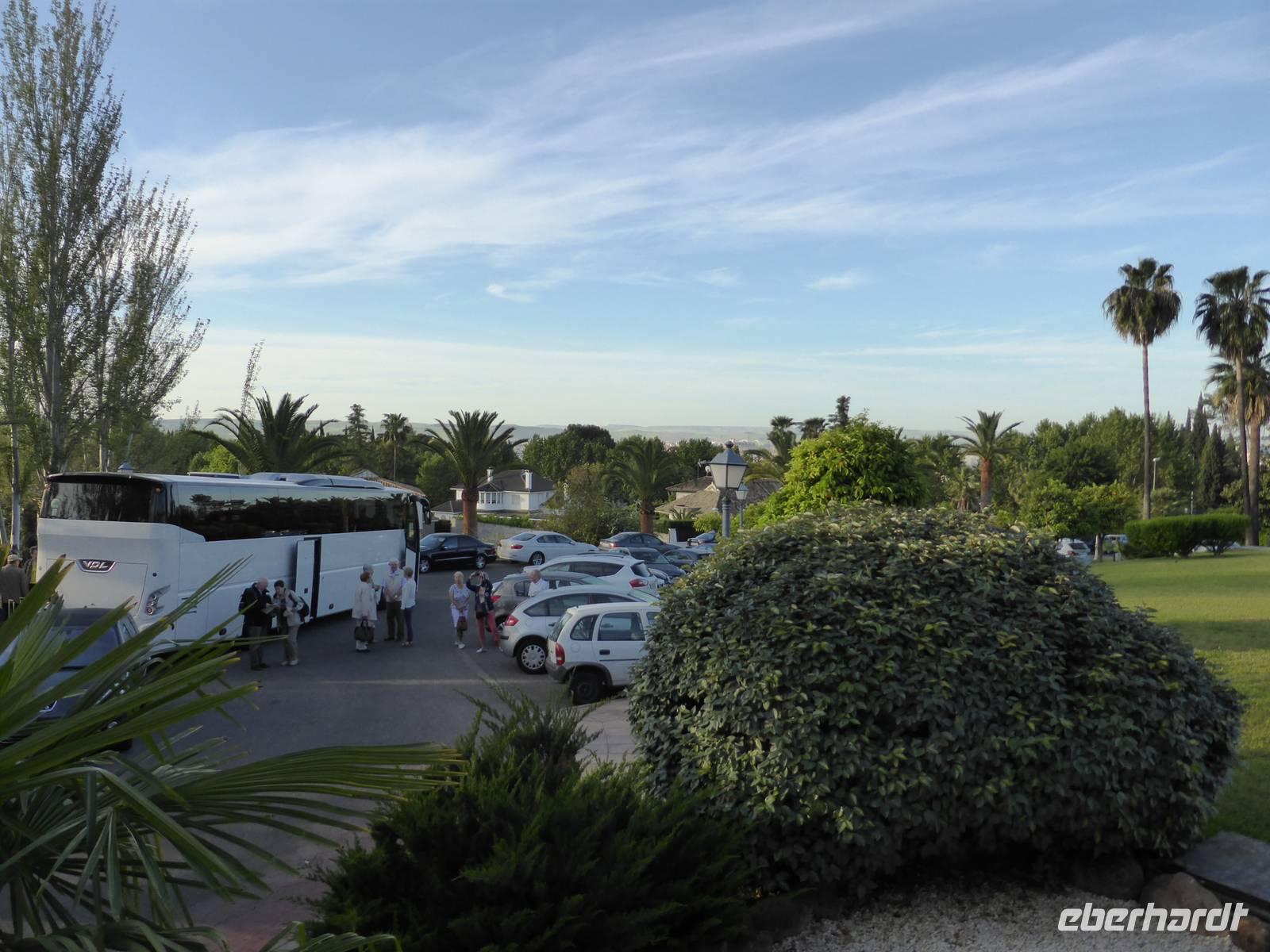 Nach der Besichtigung der Mezquita setzten wir unsere Stadtbesichtigung fort und liefen durch verwinkelte Gässchen und durch herrliche Patios (Innenhöfe) ins ehemalige jüdische Viertel der Stadt. Wie durch ein Wunder blieb eine der Synagogen Cordobas vor der Zerstörung bewahrt. Nach der Vertreibung der Juden 1492 diente sie als Krankenhaus, später als Versammlungsraum der Zunft der Schuhmacher. Seit 1885 ist sie Nationaldenkmal und heute ein Museum. Vorbei am Maimonides Denkmal, einem jüdischen Philosophen, Rechtsgelehrten und Arzt, führte uns Ines wieder zurück zum Ausgangspunkt unserer Stadtführung an der Mezquita. Mit dem Bus fuhren wir zu unserem Hotel „Eurostars Las Adelfas", welches in einem sehr gutbürgerlichen Stadtteil Cordobas liegt.