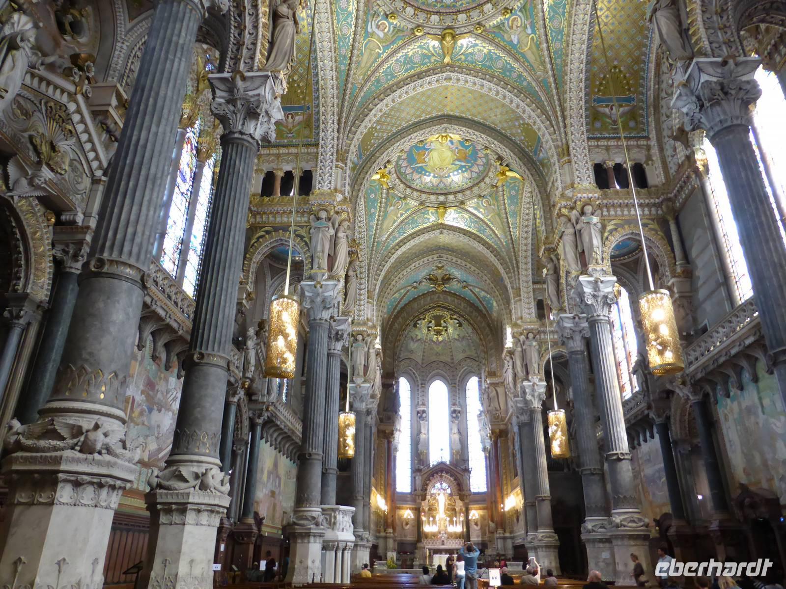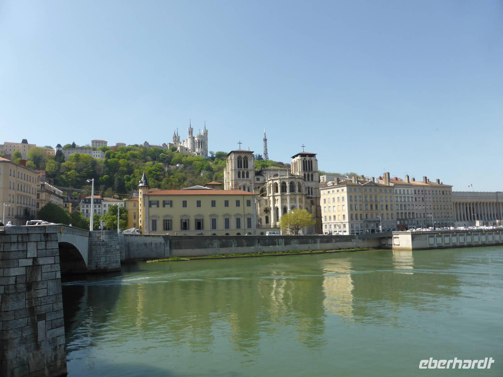 Am vorletzten Tag unserer Reise fuhren wir nach einem ausgiebigen Frühstück gegen 09.00 Uhr los. Unsere Fahrt führte uns wieder entlang der Rhone und im weiteren Verlauf nach Lyon. Die Stadt liegt am Zusammenfluss der Saone in die Rhone und ist das Zentrum der Chemischen Industrie und der Biotechnologie in Frankreich. Da es an diesem Tag keinen offiziellen Programmpunkt gab, hatten wir einen Aufenthalt in Lyon eingeplant, mit der Möglichkeit der Auffahrt auf den Fourviere-Hügel. Da es an diesem Tag keinen offiziellen Programmpunkt gab, hatten wir einen Aufenthalt in Lyon eingeplant, mit der Möglichkeit der Auffahrt auf den Fourviere-Hügel. Vom Parkplatz an der Rhone aus spazierten wir vorbei am zentralen Platz „Place Bellecour" bis zur Saone und von dort zur Talstation der Seilbahn. Durch den Kauf der Fahrkarten verzögerte sich unsere Auffahrt etwas. Oben angekommen, wurden wir mit einer sagenhaften Aussicht belohnt. Wir sahen fast das gesamte Stadtgebiet, einschließlich der beiden großen Flüsse sowie das alte Stadtviertel der Seidenhändler (Vieux Lyon). Im Anschluss war bis zur Talfahrt Freizeit für die Besichtigung der Basilika „Notre-Dame-de-la-Fourviere". Von Lyon aus fuhren wir dann weiter in nördliche Richtung nach Burgund zu unserer letzten Übernachtung im Hotel „Novotel Dijon-Süd". Burgund gilt als das französische Feinschmeckerparadies. Nirgendwo sonst findet man so viele mit Michelin-Sternen ausgezeichnete Restaurants. Zum Abendessen gab es „Filet de Poulet Sauce creme", Filet vom Hähnchen in Sahnesoße. Wir waren begeistert!
