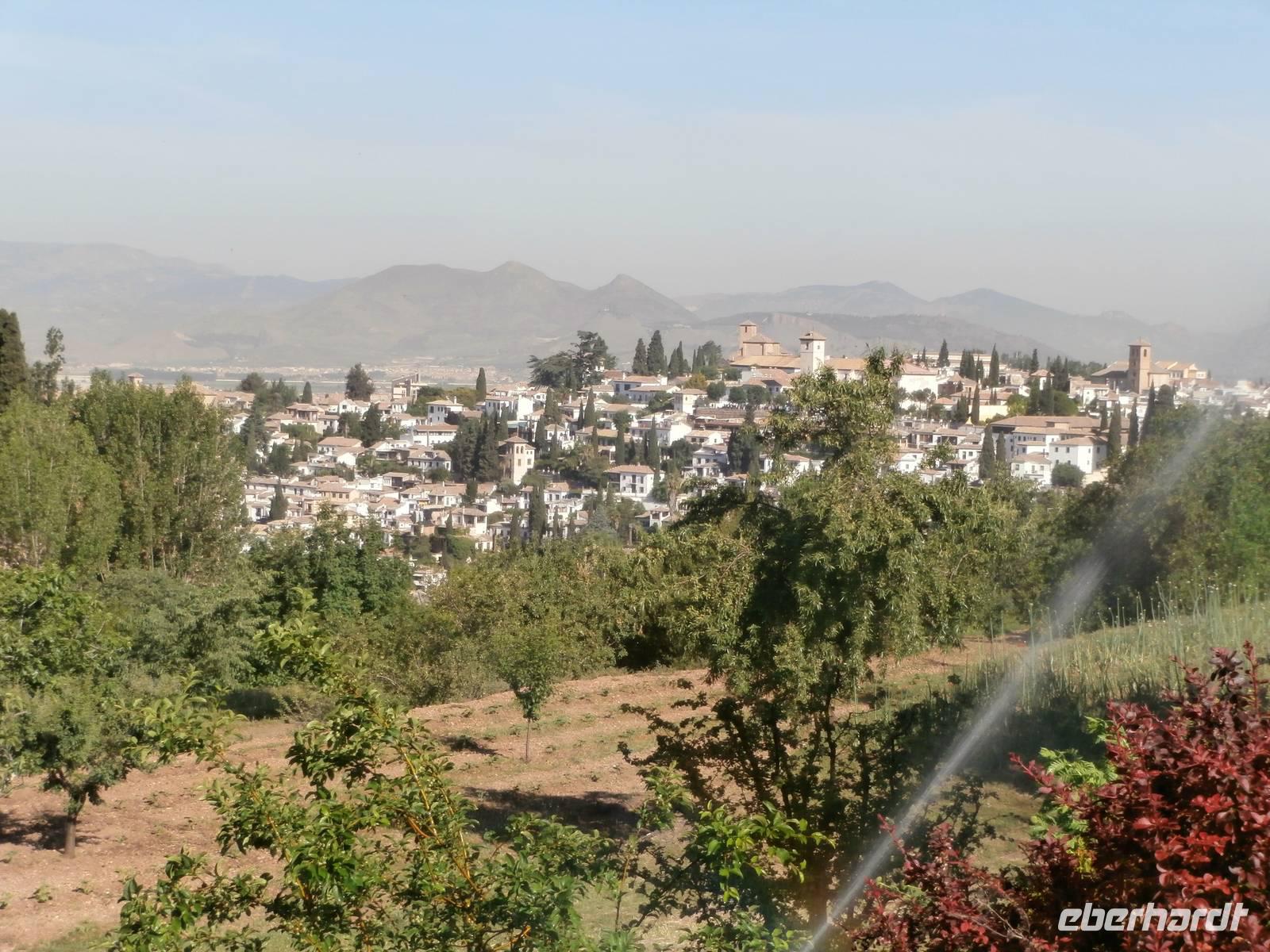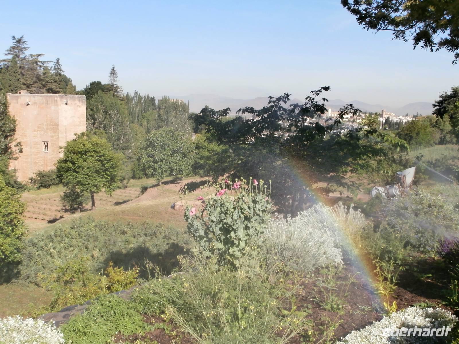 Unser Frühstück können wir pünktlich acht Uhr einnehmen. Eine schöne Fahrt mit tollen Aussichten, Landschaft in gelb, grün und rot zieht vorüber - wir spüren überall die Hitze, der Frühling ist schon ein Sommer und präsentiert sich uns wie nicht erwartet. Das Ebro Delta, eines der größten Feuchtgebiete Europas, lassen wir vorüberziehen. In der Sumpflandschaft wird Reis angebaut. Die Küsten Kataloniens mit mehr oder weniger großen Touristenhochburgen sehen wir heute nicht, wir haben eine Strecke im Landesinneren gewählt. Palmenwälder in großer Ansammlung lassen wir in Elche vorüberziehen, rund 200.000 Bäume zählt das riesige Areal. Die grandiose Bergwelt der Sierra Nevada empfängt uns mit diesigen Aussichten, leichtgezuckerte Gipfel können wir aber sehen. Die Höhlenwohnungen von Gaudix im Tuffstein sehen wir von der Autobahn aus und sind beeindruckt. Am Abend kommen wir in Granada an und beziehen im Hotel Alixares unsere Zimmer, nach dem Abendessen fahren wir noch zum Flamencoabend, mit Minibussen geht es durch die Stadt bis hinauf zum Sacromonte, in den Höhlen erleben wir einen schönen Abend. Die Reinheit und die besonderen Eigenarten des Zigeunertanzes Zambra bei „Los Tarantos" reißen uns mit. Bei einem Nachtspaziergang lernen wir noch das maurische Viertel, den Albeicin, kennen. Am Mirador San Nicolas sehen wir die Alhambra in Licht getaucht und genießen diesen fantastischen Anblick. Fast gegen Mitternacht kommen wir zum Hotel zurück, ja spanische Nächte sind kurz aber schön.