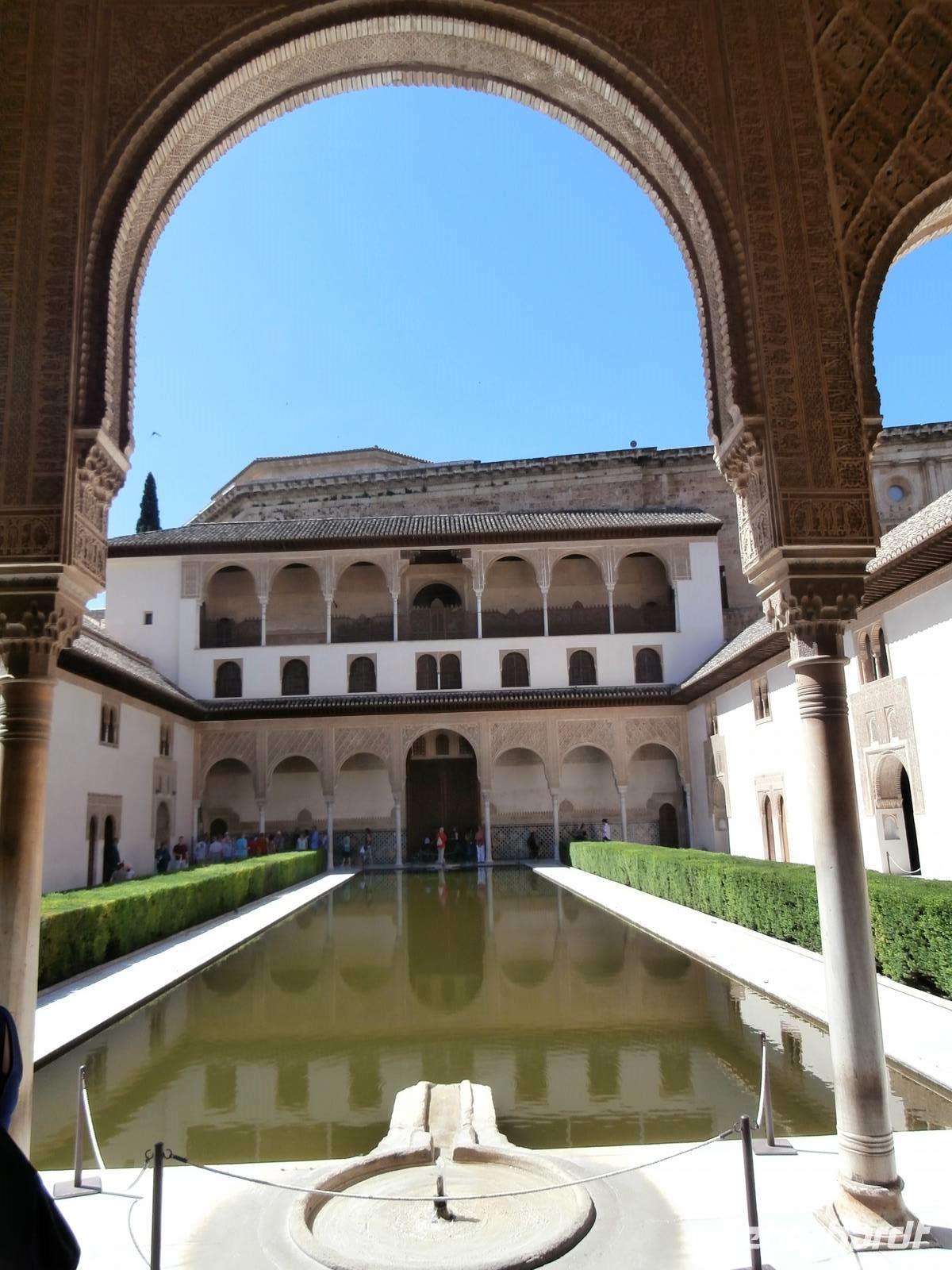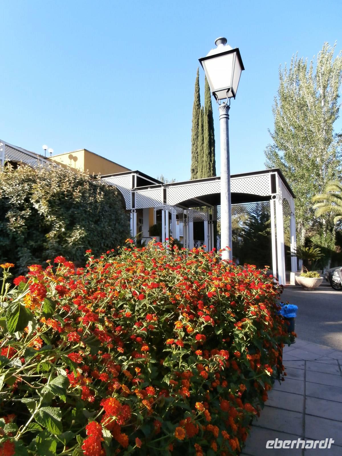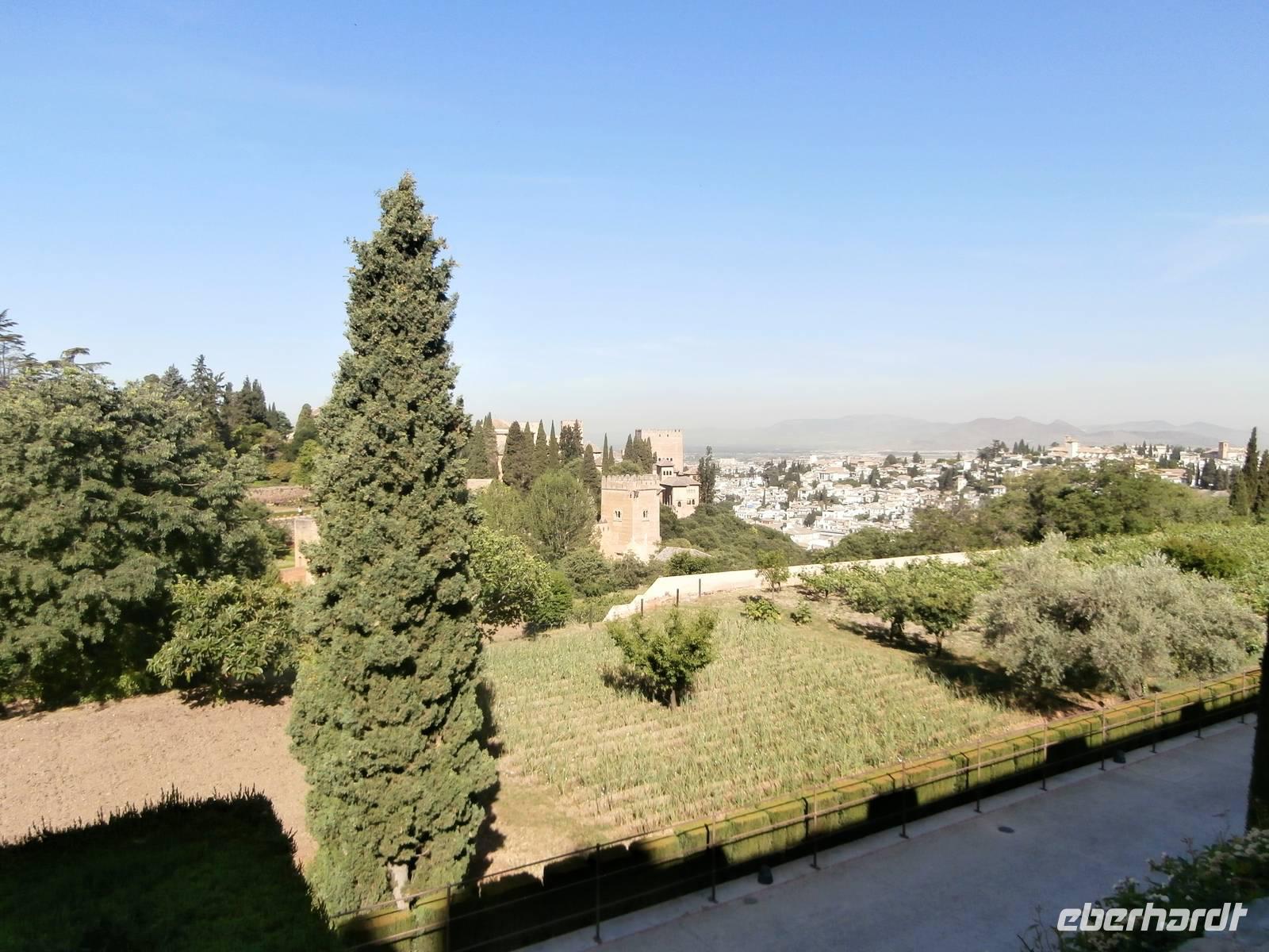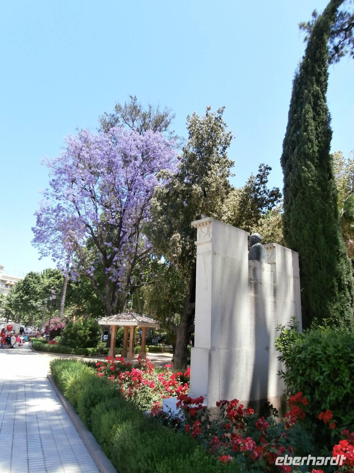 Eingestellt auf schönes Wetter und wieder mit hitzigen Temperaturen und viel Sonne, sind wir gespannt auf die Alhambra. Gemeinsam mit unserem Pepe, Reiseleiter mit Herz und Verstand und seiner Kollegin Fabiola starten wir im Hotel zur Besichtigung. Damit alle Gäste den Ausführungen entspannt lauschen können, werden zu Beginn Audioguids verteilt. Generalife-der weiträumige Garten des Architekten ist ein Refugium voller blühender Pflanzen, Orangen und Myrten mit Blick auf die Alhambra. Sehr schön auch die Wasserspiele im Fontänen Hof, sehenswert ist auch der Patio de los Cipreses und die berühmte Wassertreppe. Wir sind begeistert von den herrlichen Rosen, die in allen Farben blühen und ihren Duft versprühen. Ausblicke überall, Azur blau der Himmel über uns-einzigartig ist das Erlebnis in den Palastgärten.