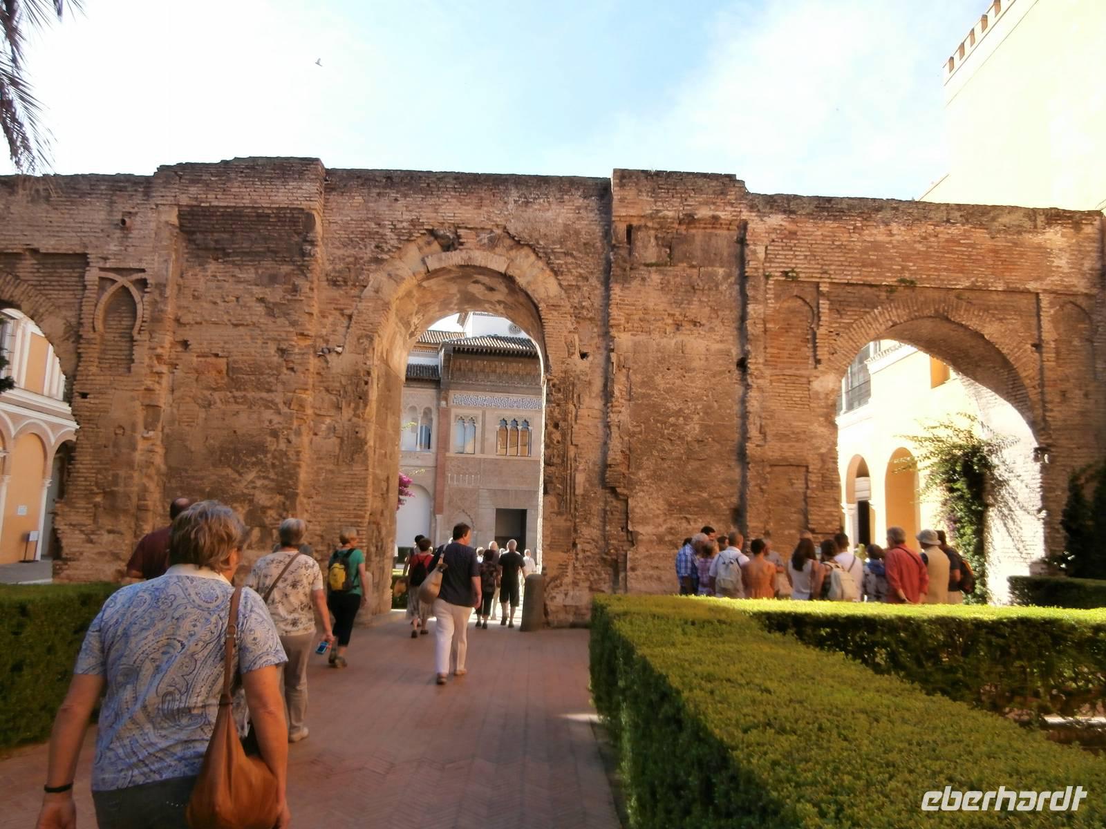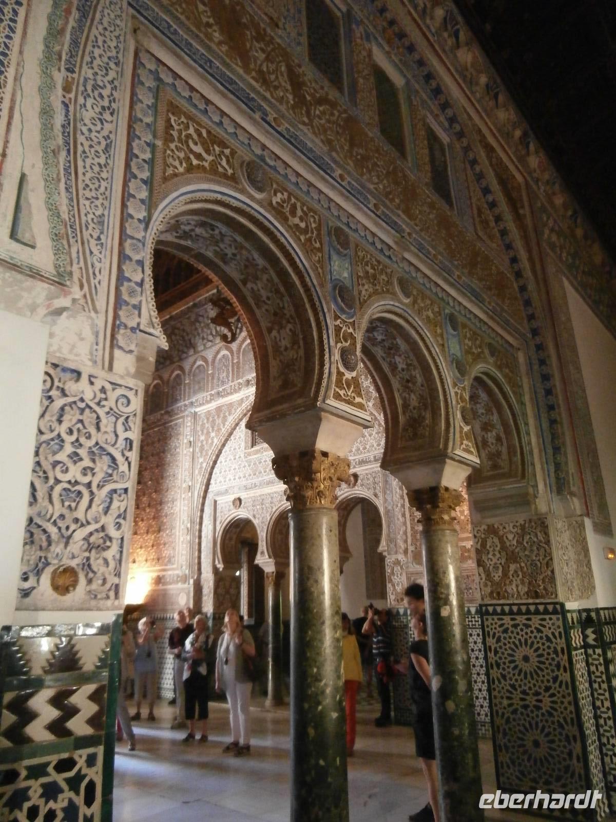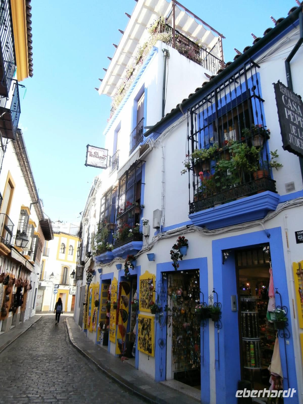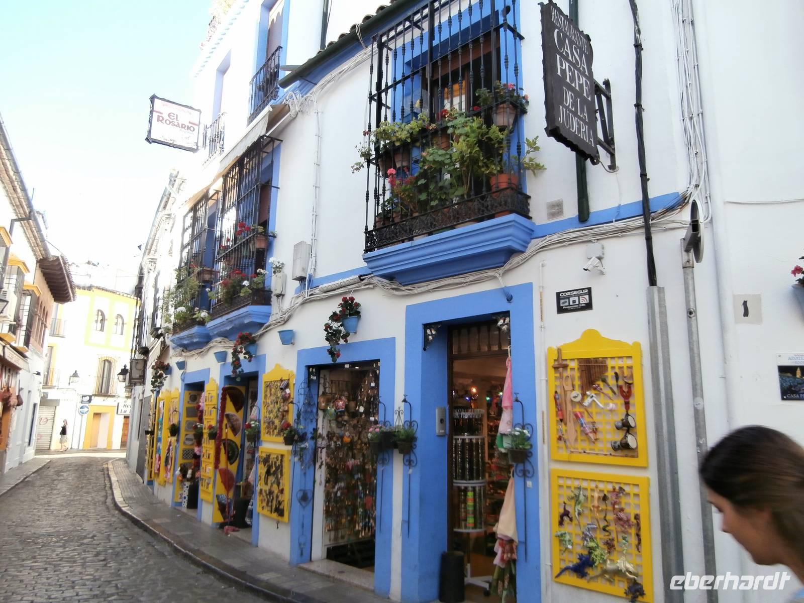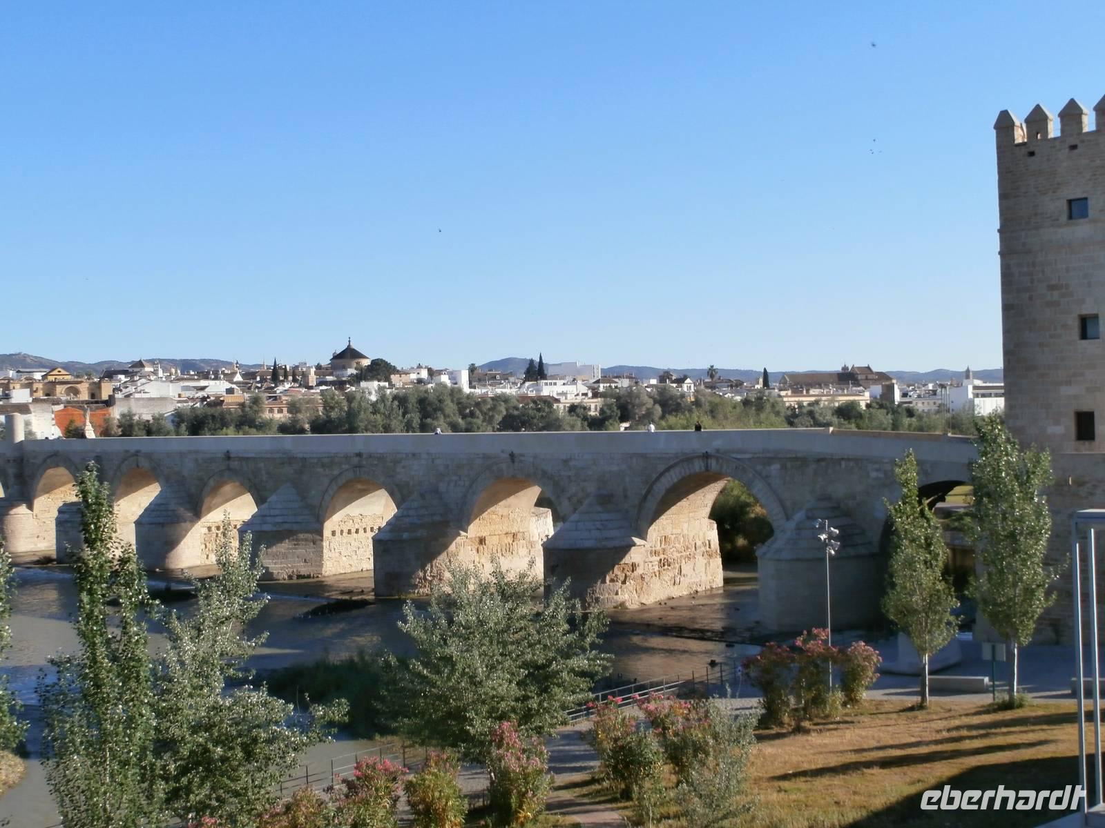 Pünktlich landet unser Bus rückwärtsfahrend vorm Hotel an und schnell sind unsere Koffer wieder im Bus verstaut. Von unserer örtl. Reiseleiterin Pilar werden wir am Hotel erwartet und dann geht es mit unserem Bus zur Stadtrundfahrt vorbei am Garten der Maria Luisa bis hin zum Spanischen Platz. Nach dem Bummel über den Platz und reichlich Fotos und musikalischen Klängen geht die Fahrt im Bus weiter bis zum Ausstieg in Nähe des Torre del Oro, dem Goldenen Turm, am Rio Guadalquivir. Wir besichtigen zuerst den Alcazar, den Königspalast. Er ist ähnlich wie die Alhambra in Granada, aber älter, aus dem 12. JH und erbaut von der Almohaden-Dynastie. Wir sehen Decken aus vergoldeten Zedernholz, Türen aus Lerchen-und Teakholz, Kachelmosaiken in Schleifenmuster, was die Unendlichkeit Allahs verdeutlicht, mit Suren, Stuckarbeiten in Gips, Alabaster und beeindruckend auch die Hufeisenbögen und der Hof der Puppen. Durch das liebreizende Judenviertel gelangen wir zur Kathedrale, sie ist die drittgrößte der Welt nach dem Petersdom und St. Paul in London. 1402-1506 erbaut, der Hochaltar ist der größte christliche Altar der Welt. Der Glockenturm der Kathedrale entstand aus der Moschee, auf der Spitze ist die Wetterfahne, das Giralda-Siegeszeichen über den Islam. Am Grab von Kolumbus verweilen wir kurz und für Sportliche geht es hinauf auf der Rampe mit 35 Kurven, anstelle von Treppen, damit die Wächter früher mit dem Pferd zum Dienst gelangen konnten. Geniale Aussichten eröffnen sich von oben. Man sieht auch die Stierkampfarena von Sevilla. Wir verabschieden uns aus Sevilla, am Brunnen ist Treff und weiter geht die Fahrt nach Cordoba. Im Hotel las Adelfas etwas außerhalb in einer schönen Anlage Cordobas laden wir unser Gepäck aus und kühlen uns im Pool von der Hitze des Tages ab.