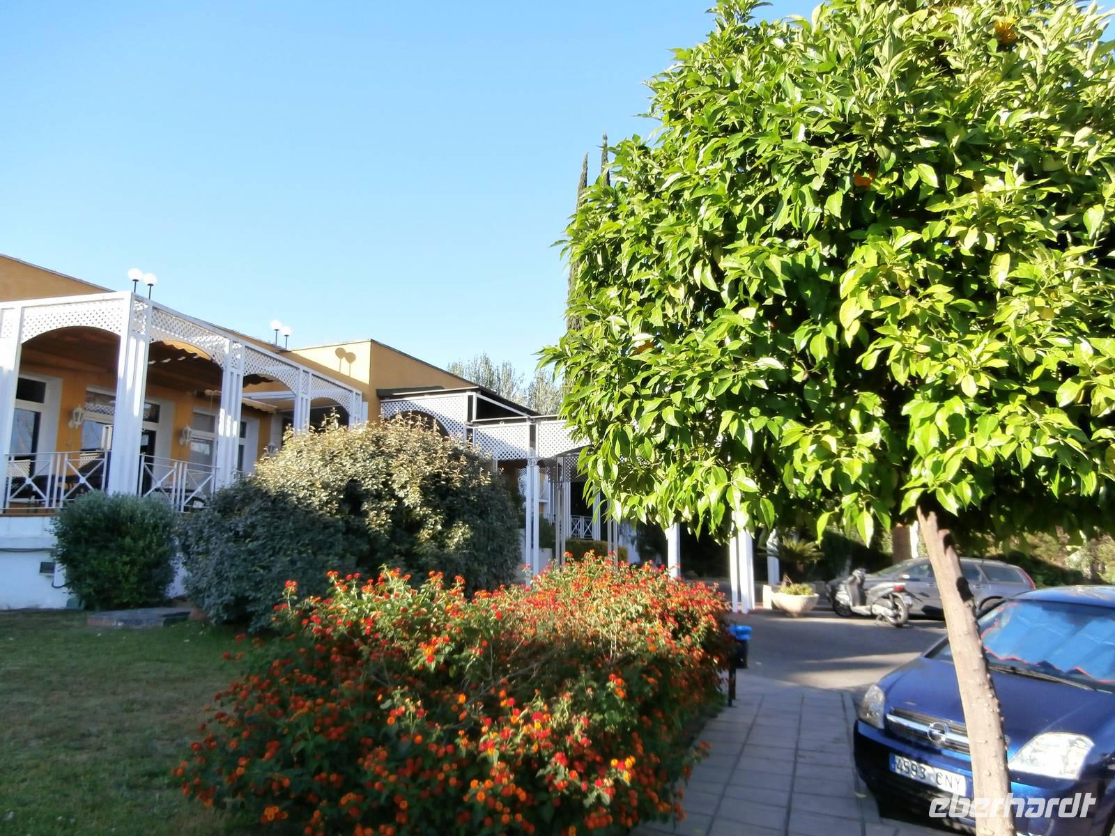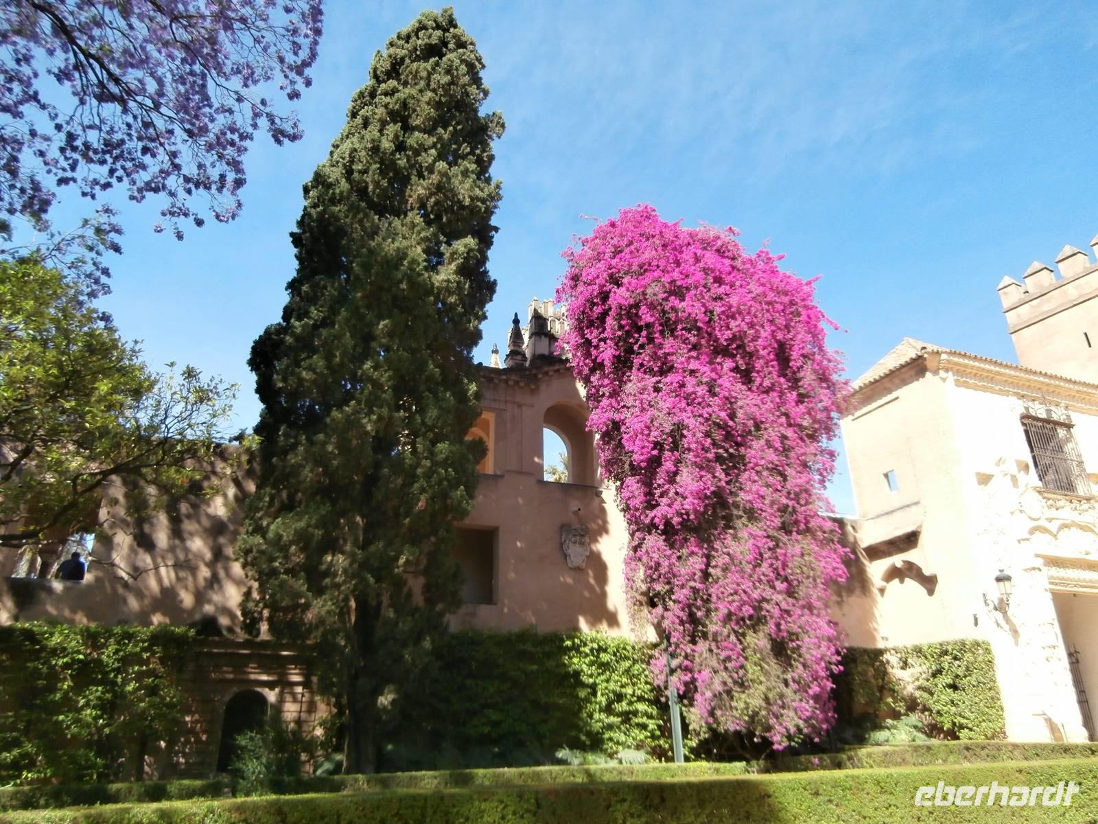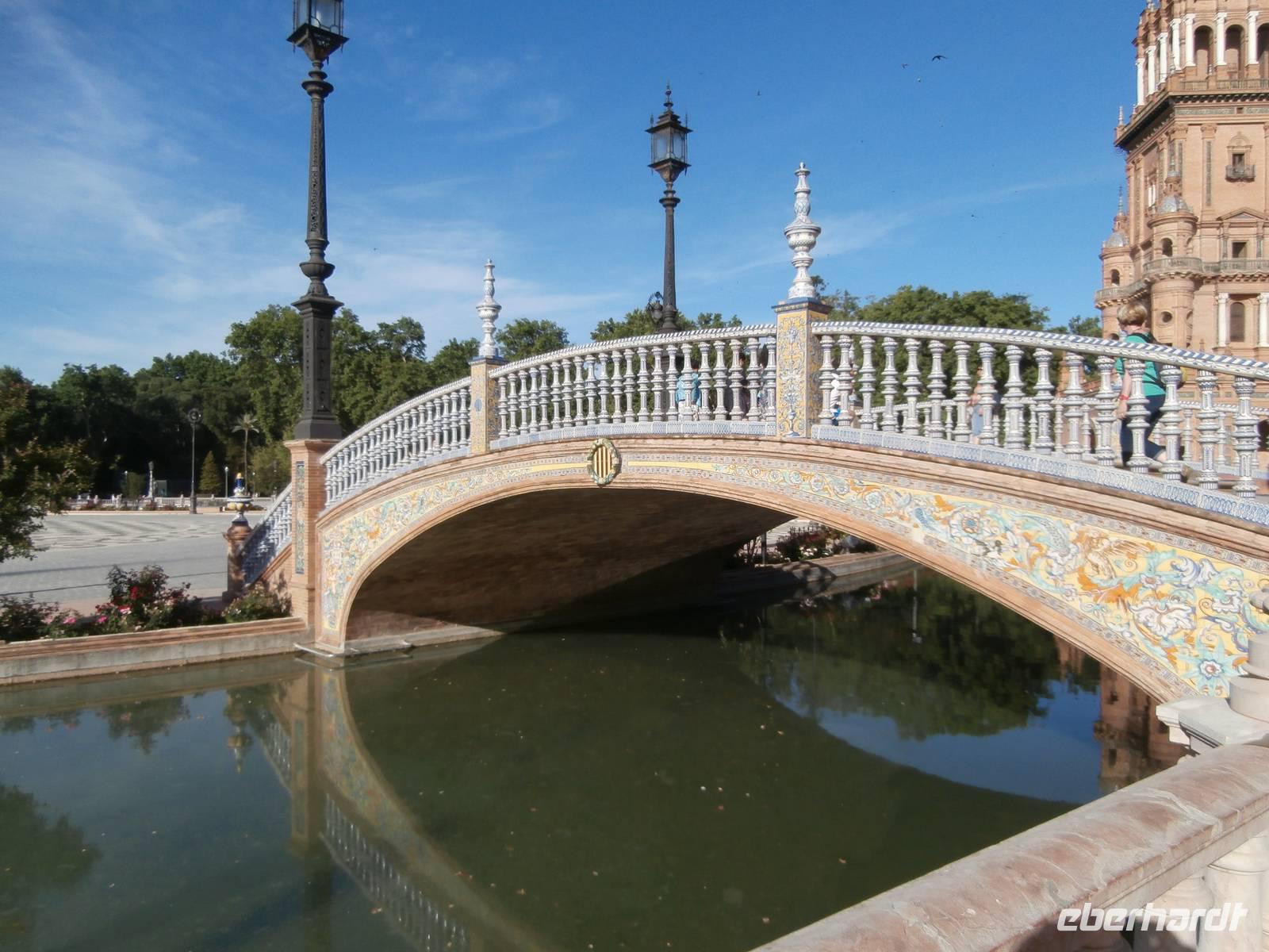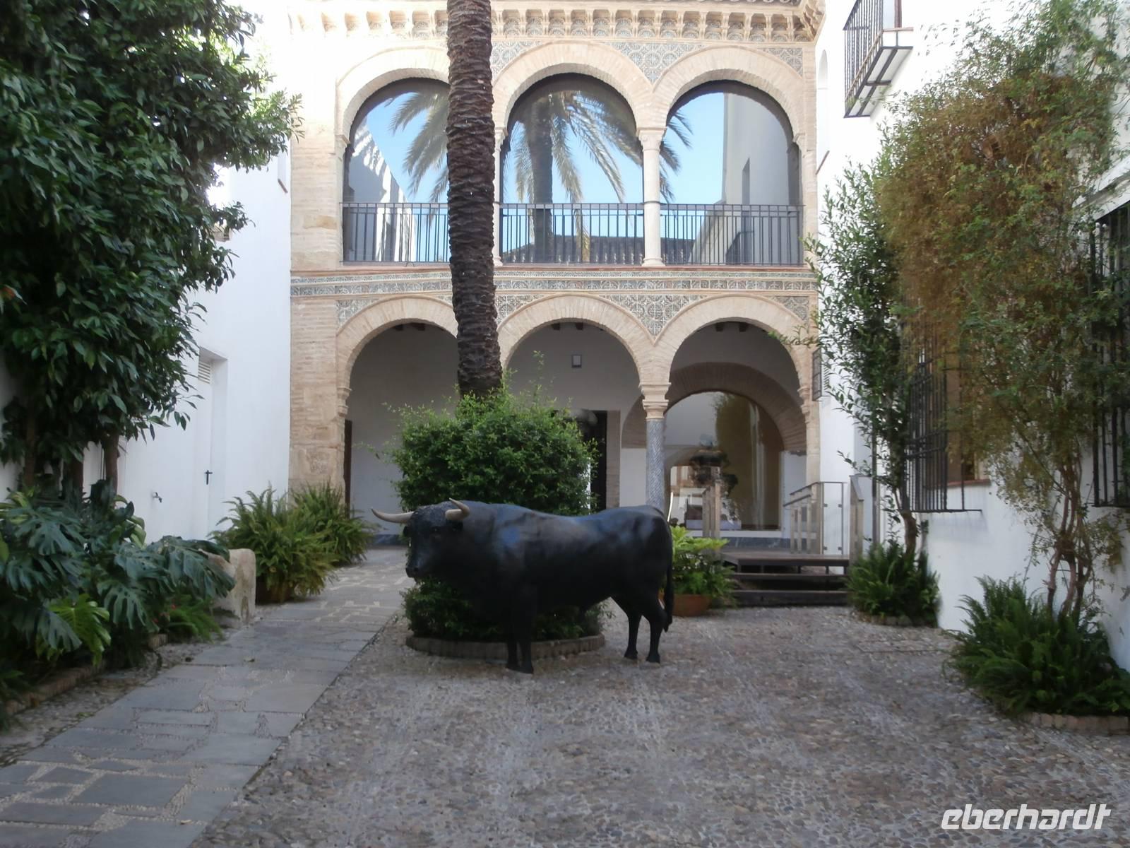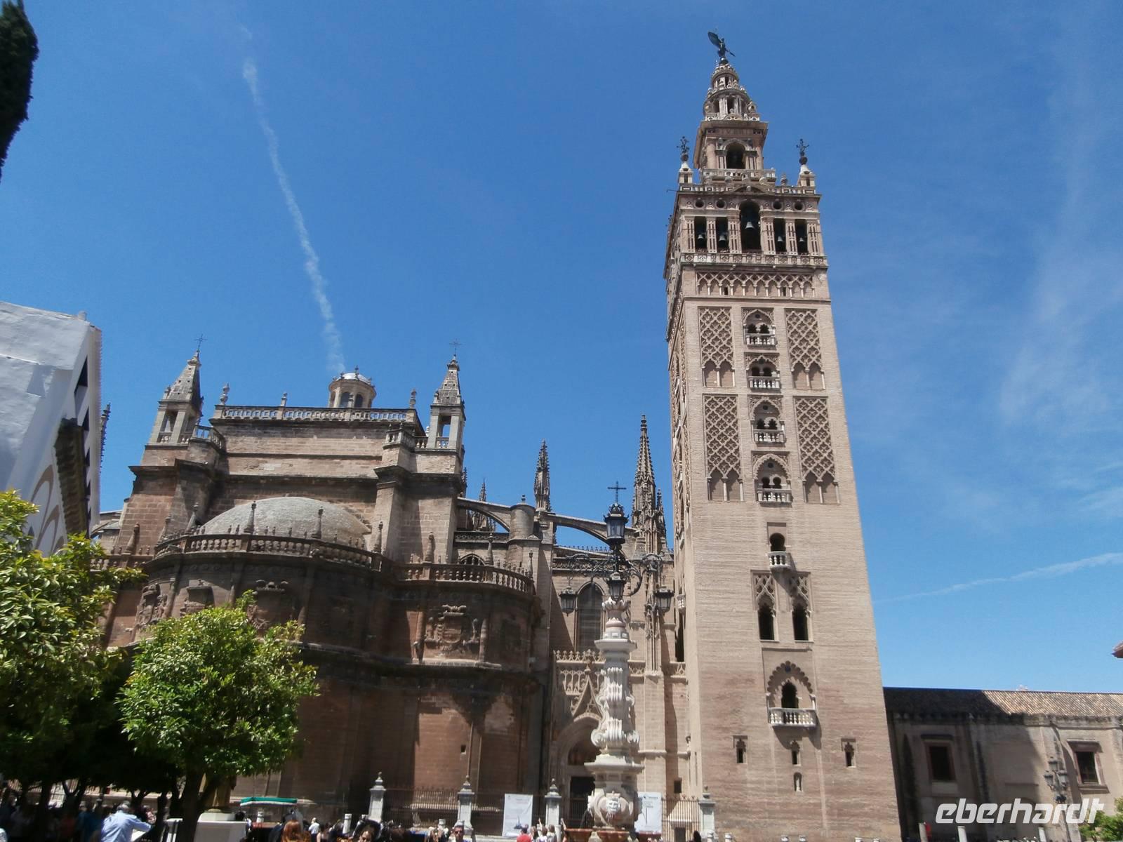 Pünktlich landet unser Bus rückwärtsfahrend vorm Hotel an und schnell sind unsere Koffer wieder im Bus verstaut. Von unserer örtl. Reiseleiterin Pilar werden wir am Hotel erwartet und dann geht es mit unserem Bus zur Stadtrundfahrt vorbei am Garten der Maria Luisa bis hin zum Spanischen Platz. Nach dem Bummel über den Platz und reichlich Fotos und musikalischen Klängen geht die Fahrt im Bus weiter bis zum Ausstieg in Nähe des Torre del Oro, dem Goldenen Turm, am Rio Guadalquivir. Wir besichtigen zuerst den Alcazar, den Königspalast. Er ist ähnlich wie die Alhambra in Granada, aber älter, aus dem 12. JH und erbaut von der Almohaden-Dynastie. Wir sehen Decken aus vergoldeten Zedernholz, Türen aus Lerchen-und Teakholz, Kachelmosaiken in Schleifenmuster, was die Unendlichkeit Allahs verdeutlicht, mit Suren, Stuckarbeiten in Gips, Alabaster und beeindruckend auch die Hufeisenbögen und der Hof der Puppen. Durch das liebreizende Judenviertel gelangen wir zur Kathedrale, sie ist die drittgrößte der Welt nach dem Petersdom und St. Paul in London. 1402-1506 erbaut, der Hochaltar ist der größte christliche Altar der Welt. Der Glockenturm der Kathedrale entstand aus der Moschee, auf der Spitze ist die Wetterfahne, das Giralda-Siegeszeichen über den Islam. Am Grab von Kolumbus verweilen wir kurz und für Sportliche geht es hinauf auf der Rampe mit 35 Kurven, anstelle von Treppen, damit die Wächter früher mit dem Pferd zum Dienst gelangen konnten. Geniale Aussichten eröffnen sich von oben. Man sieht auch die Stierkampfarena von Sevilla. Wir verabschieden uns aus Sevilla, am Brunnen ist Treff und weiter geht die Fahrt nach Cordoba. Im Hotel las Adelfas etwas außerhalb in einer schönen Anlage Cordobas laden wir unser Gepäck aus und kühlen uns im Pool von der Hitze des Tages ab.