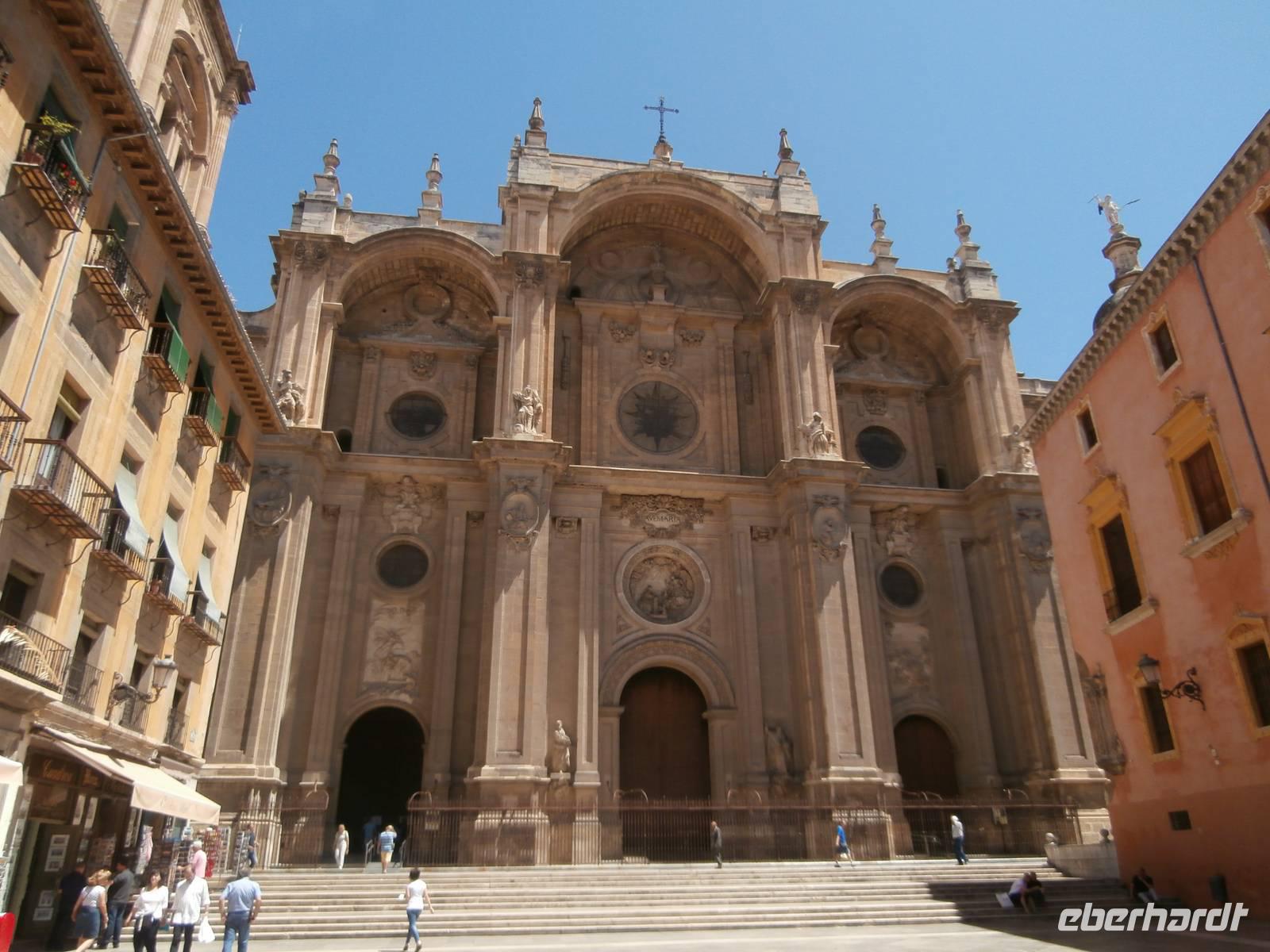 Mit unserem Bus stoppen wir noch in Granadas Altstadt und verbringen den Nachmittag mit Besichtigung der Kathedrale und sehen die verschiedenen Baustile von Mujedar bis Renaissance, verwinkelte Gassen und Bars laden ein zum Verweilen. Die hitzigen Temperaturen in Granada machen uns zu schaffen, wir sind alle froh, wieder im klimatisierten Bus zu sitzen. In Málaga gestaltet sich das Ausladen der Koffer etwas schwierig, im Kreisverkehr lädt Andreas schließlich unsere Koffer aus. Ein leckeres Abendessen mit Wein und Wasser gratis lässt uns schnell die Strapazen vergessen.