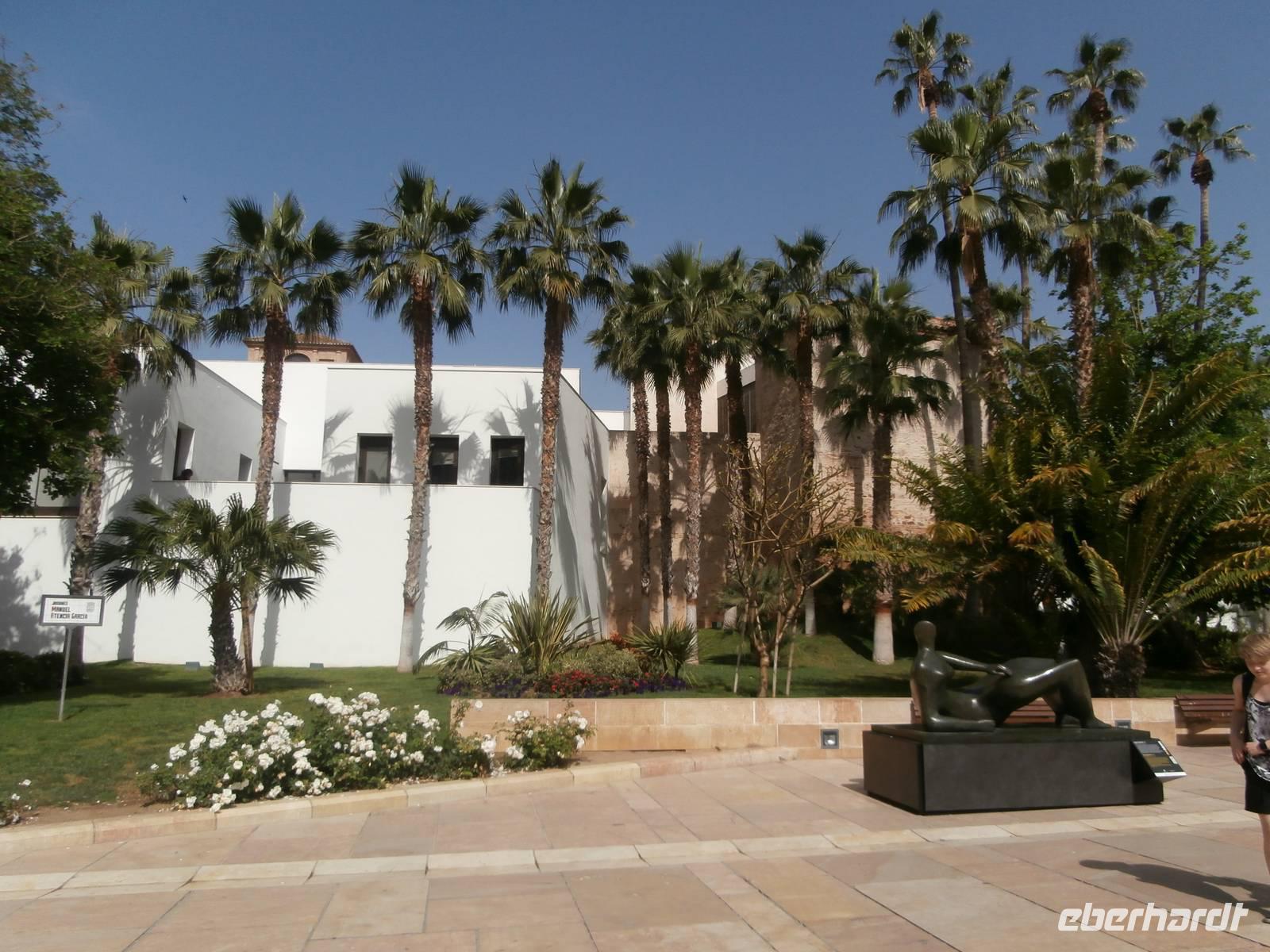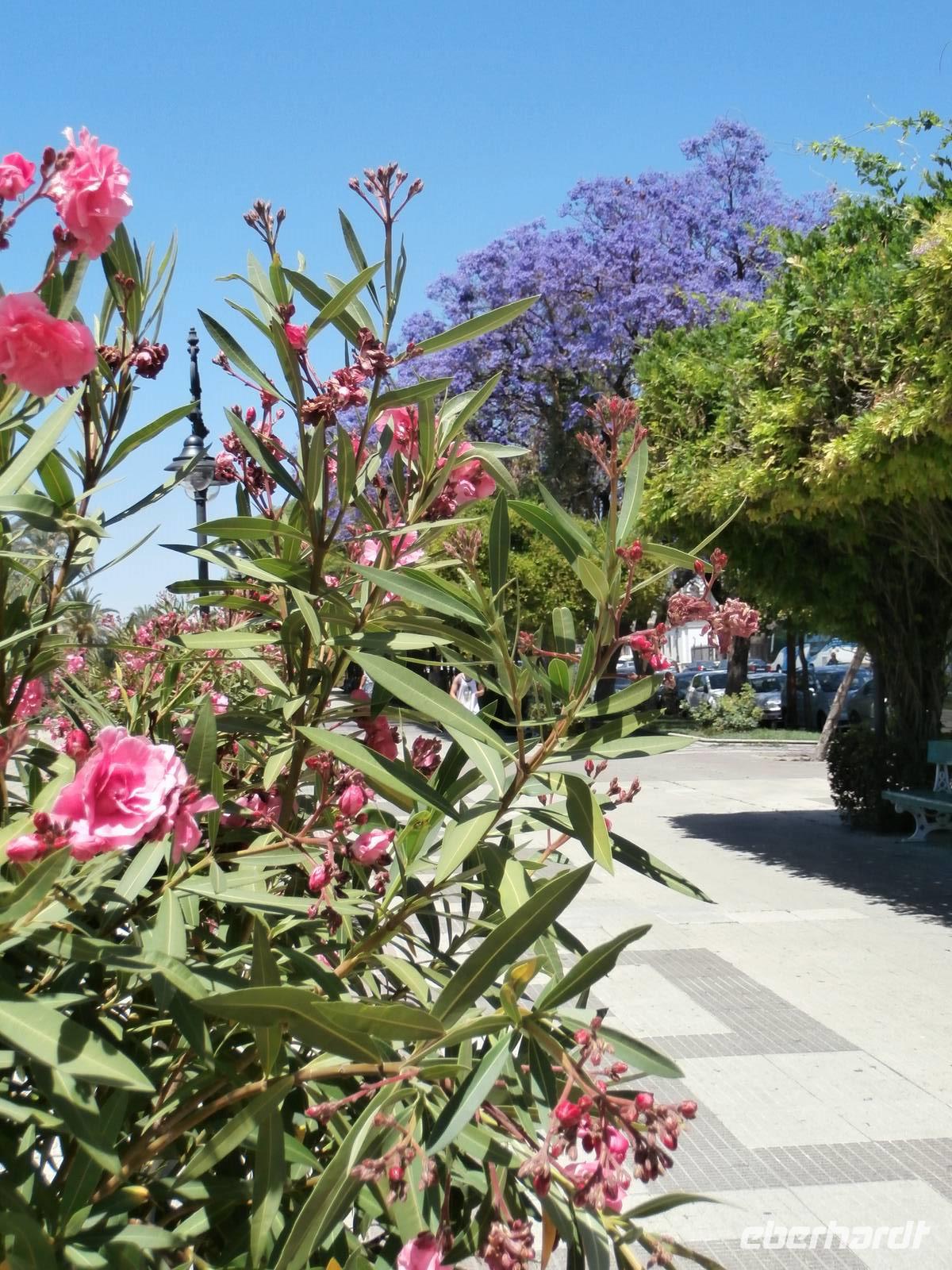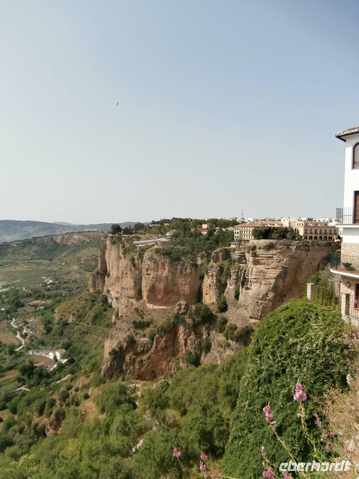 Unser Gepäck bringen wir wieder an den Kreisverkehr zum Bus und hier erwarten uns schon zwei örtliche Führer für die Besichtigung Málagas. Mit Carmen und Maria fahren wir im Bus vorbei am Hafen, dem schönen Rathaus und durch sehr schmale Straßen hinauf zum Aussichtspunkt auf dem Monte Faro, dem Gibralfaro, herrlich der Blick über die Stadt. Beim anschließenden Rundgang durch die Altstadt sehen wir schöne Plätze, schmale Gassen mit hübschen Cafés. In der Nähe der Kathedrale, die man ab 1528 über einer Moschee erbaut hat, machen wir eine Pause, denn auch heute ist die Hitze groß. Am Rathaus steigen wir wieder in den Bus. Zuvor haben wir am Plaza de la Merced dem berühmtesten Sohn der Stadt, Pablo Picasso, einen Besuch abgestattet, sitzend auf einer Bank präsentiert er sich uns. Málaga hat über 300 Sonnentage und ist bekannt für Rosinen und Wein der Sorte Muskateller. In Marbella können wir bei sommerlichen Temperaturen in der Altstadt lustwandeln, vom Orangenplatz zweigen kleine Gassen mit verrückten Boutiquen und Läden mit Kunsthandwerk ab. Die vielen Tabas Bars laden zur Mittagszeit auch auf ein Glas Wein und leckere Speisen ein. Unsere Fahrt setzen wir fort, es geht hinauf nach Ronda, diese Stadt begeistert allein schon durch ihre spektakuläre Lage über El Tajo, der zerklüfteten Schlucht-über 100 Meter auf Felsen über dem Rio Guadelvin. Über die steil abfallenden Wände spannt sich eine Brücke, die Puente Nuevo aus dem 18. JH. Mit Jesus und Juan, unseren örtlichen Führern, erleben wir fantastische 2 Stunden in Ronda, wo auch die älteste Stierkampfarena Spaniens steht. Über die Route der Pueblos Blancos, der „weißen Dörfer" verlassen wir Ronda, typisch sind die weiß gekalkten Häuser mit roten Ziegeldächern und schmalen, verwinkelten Gassen, oft wie Schwalbennester klebend am Berg. Auf unserer Fahrt in Richtung La Linea sehen wir auch noch Störche, die in ihren Nestern sitzen, schnäbeln und uns begeistern. Spät kommen wir heute im Hotel an, aber ein tolles Büffet mit lecker Rotwein für alle und schöne Zimmer mit Aussicht auf den Felsen von Gibraltar lassen uns schnell hier ankommen.