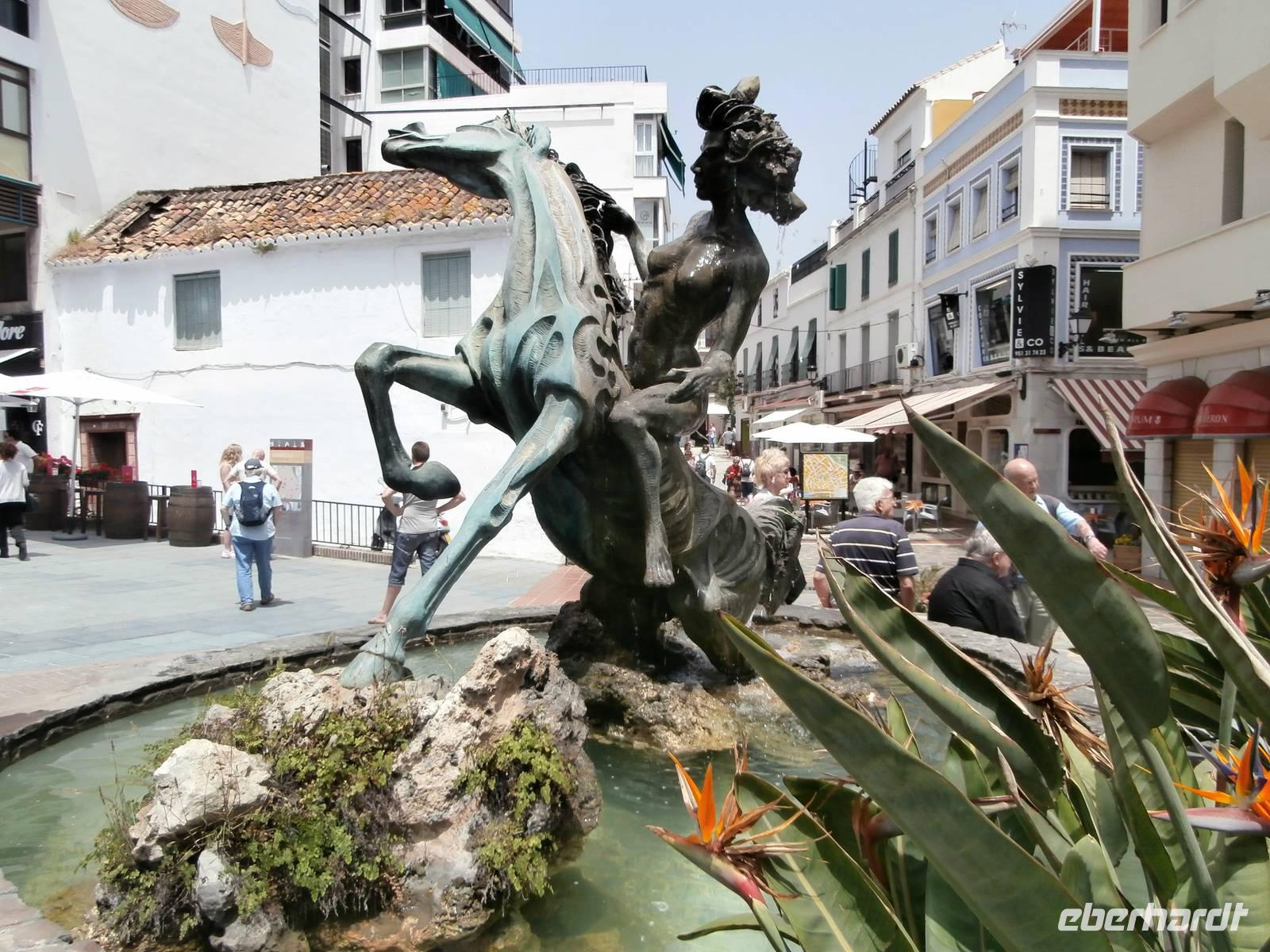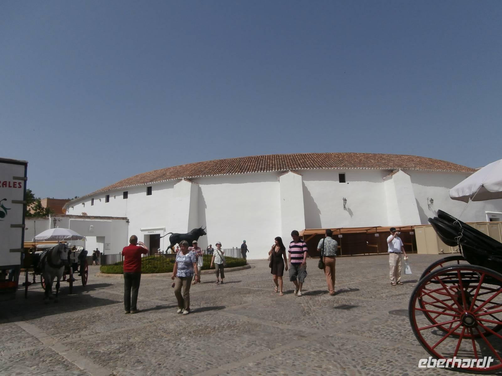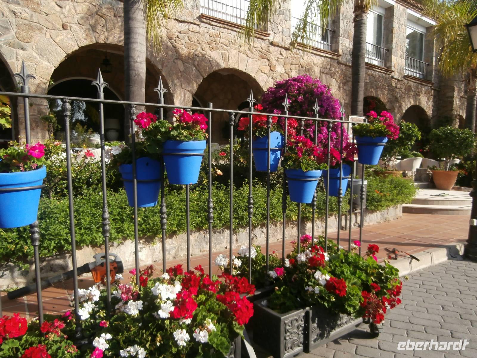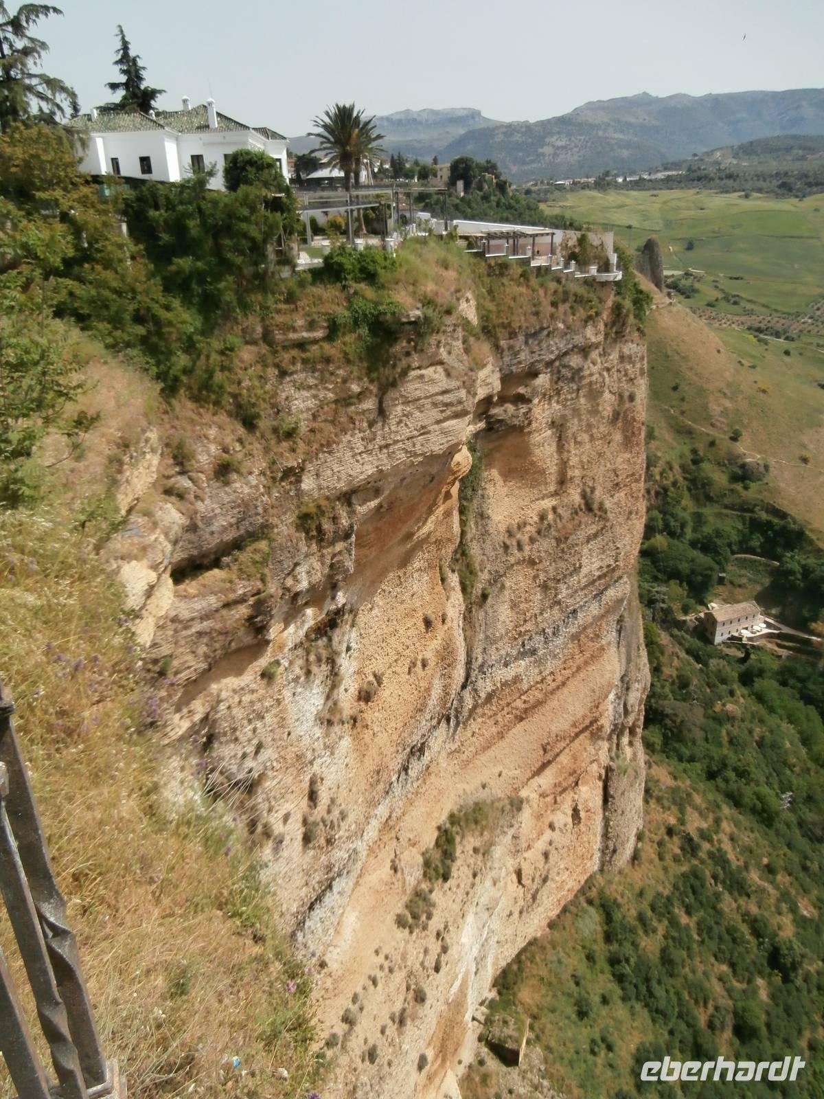 Unser Gepäck bringen wir wieder an den Kreisverkehr zum Bus und hier erwarten uns schon zwei örtliche Führer für die Besichtigung Málagas. Mit Carmen und Maria fahren wir im Bus vorbei am Hafen, dem schönen Rathaus und durch sehr schmale Straßen hinauf zum Aussichtspunkt auf dem Monte Faro, dem Gibralfaro, herrlich der Blick über die Stadt. Beim anschließenden Rundgang durch die Altstadt sehen wir schöne Plätze, schmale Gassen mit hübschen Cafés. In der Nähe der Kathedrale, die man ab 1528 über einer Moschee erbaut hat, machen wir eine Pause, denn auch heute ist die Hitze groß. Am Rathaus steigen wir wieder in den Bus. Zuvor haben wir am Plaza de la Merced dem berühmtesten Sohn der Stadt, Pablo Picasso, einen Besuch abgestattet, sitzend auf einer Bank präsentiert er sich uns. Málaga hat über 300 Sonnentage und ist bekannt für Rosinen und Wein der Sorte Muskateller. In Marbella können wir bei sommerlichen Temperaturen in der Altstadt lustwandeln, vom Orangenplatz zweigen kleine Gassen mit verrückten Boutiquen und Läden mit Kunsthandwerk ab. Die vielen Tabas Bars laden zur Mittagszeit auch auf ein Glas Wein und leckere Speisen ein. Unsere Fahrt setzen wir fort, es geht hinauf nach Ronda, diese Stadt begeistert allein schon durch ihre spektakuläre Lage über El Tajo, der zerklüfteten Schlucht-über 100 Meter auf Felsen über dem Rio Guadelvin. Über die steil abfallenden Wände spannt sich eine Brücke, die Puente Nuevo aus dem 18. JH. Mit Jesus und Juan, unseren örtlichen Führern, erleben wir fantastische 2 Stunden in Ronda, wo auch die älteste Stierkampfarena Spaniens steht. Über die Route der Pueblos Blancos, der „weißen Dörfer" verlassen wir Ronda, typisch sind die weiß gekalkten Häuser mit roten Ziegeldächern und schmalen, verwinkelten Gassen, oft wie Schwalbennester klebend am Berg. Auf unserer Fahrt in Richtung La Linea sehen wir auch noch Störche, die in ihren Nestern sitzen, schnäbeln und uns begeistern. Spät kommen wir heute im Hotel an, aber ein tolles Büffet mit lecker Rotwein für alle und schöne Zimmer mit Aussicht auf den Felsen von Gibraltar lassen uns schnell hier ankommen.