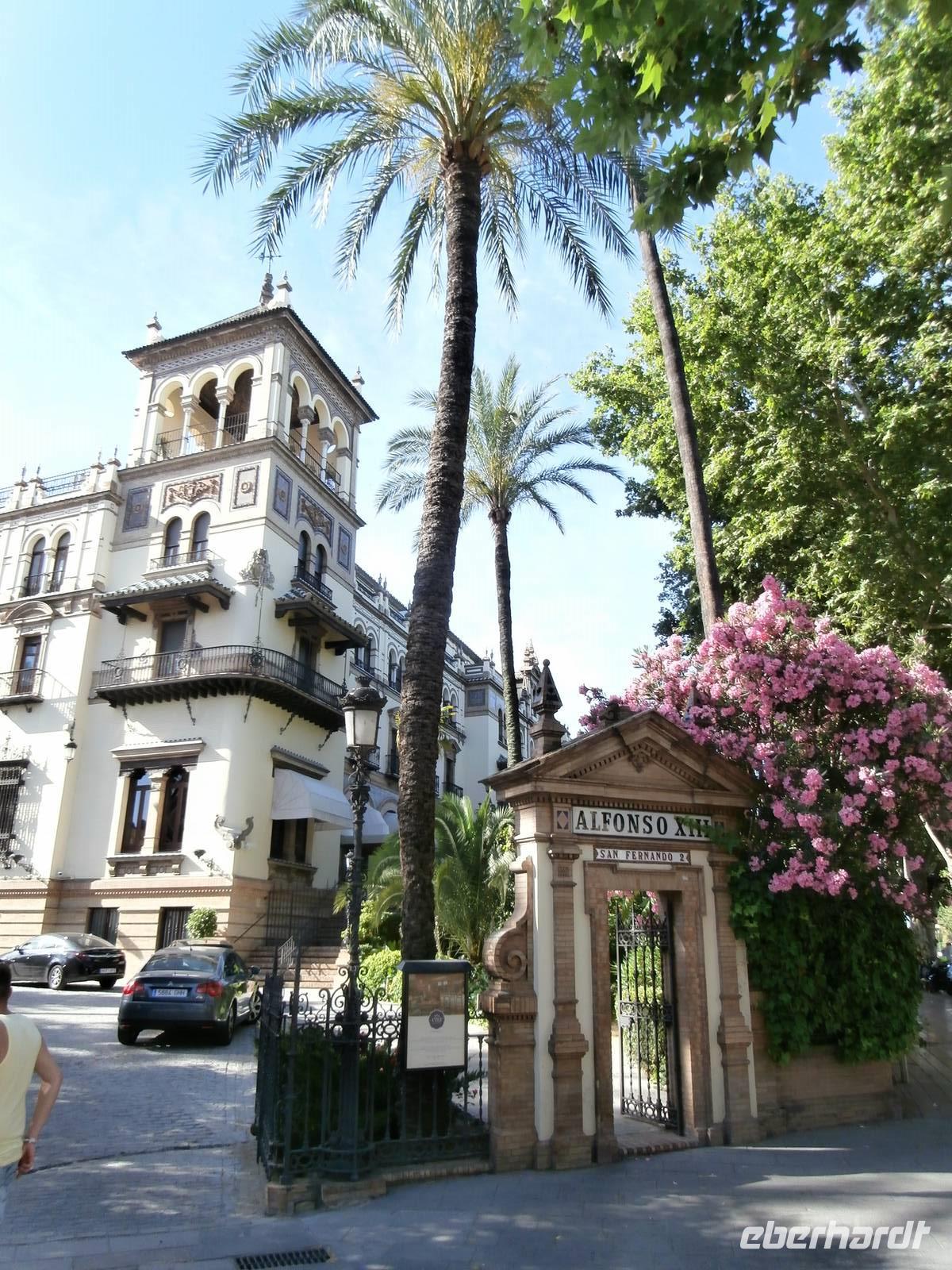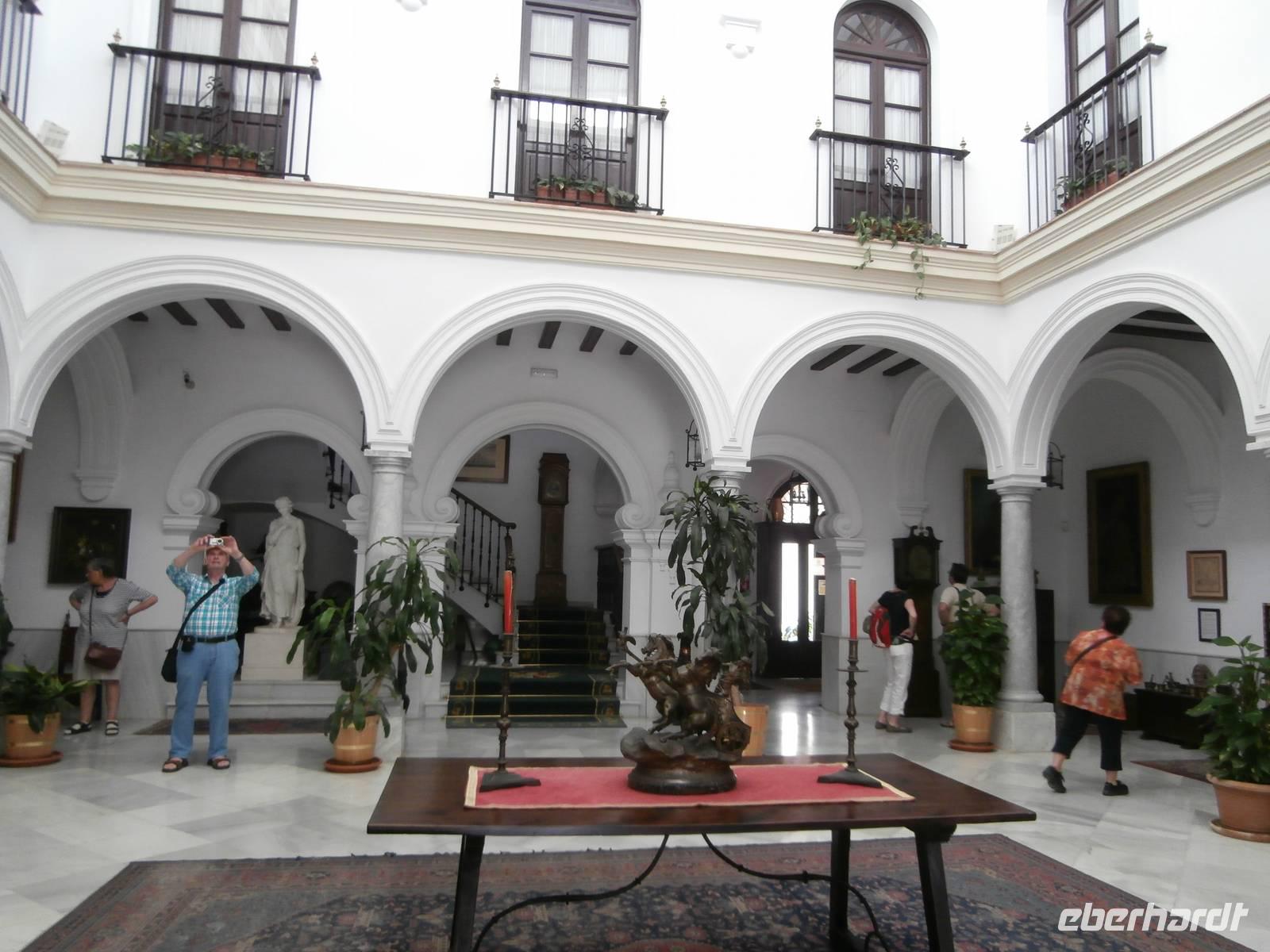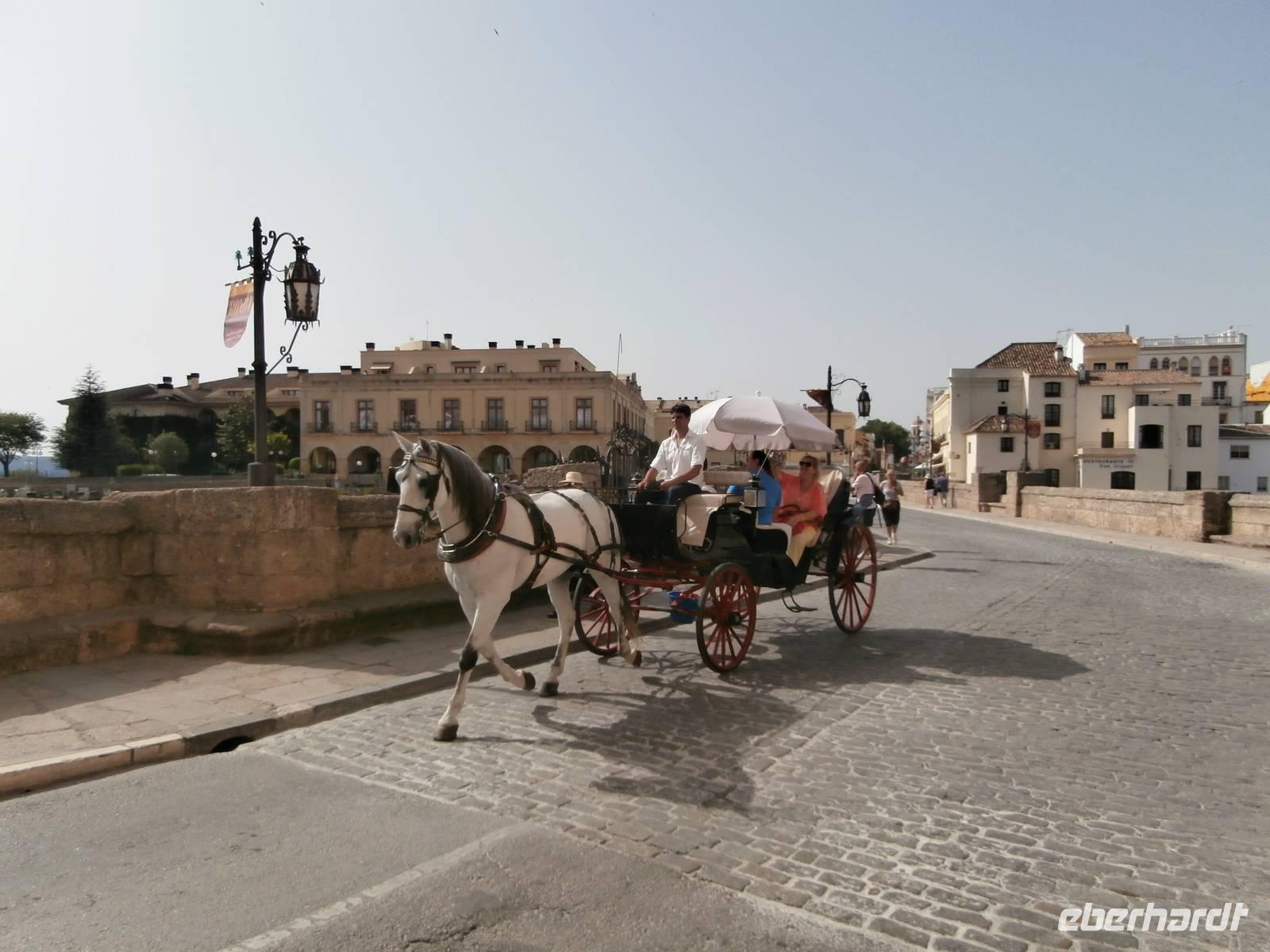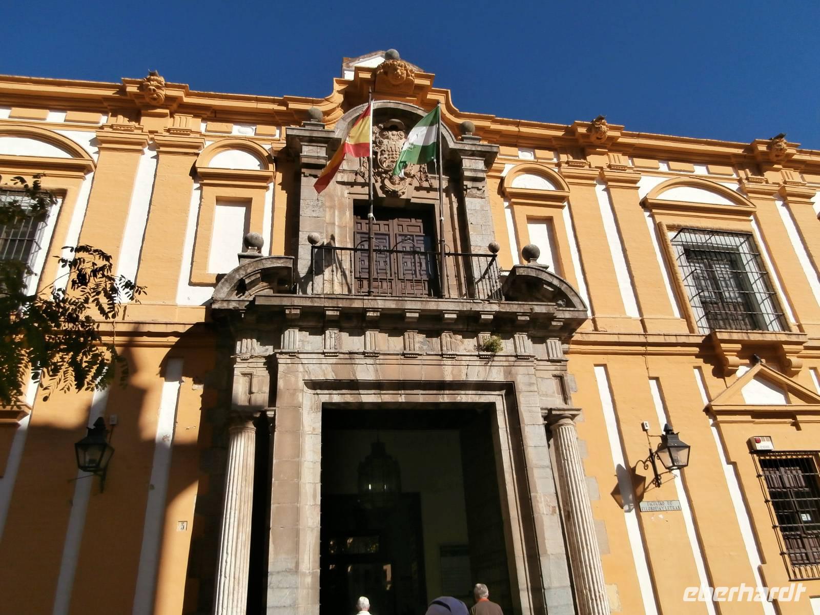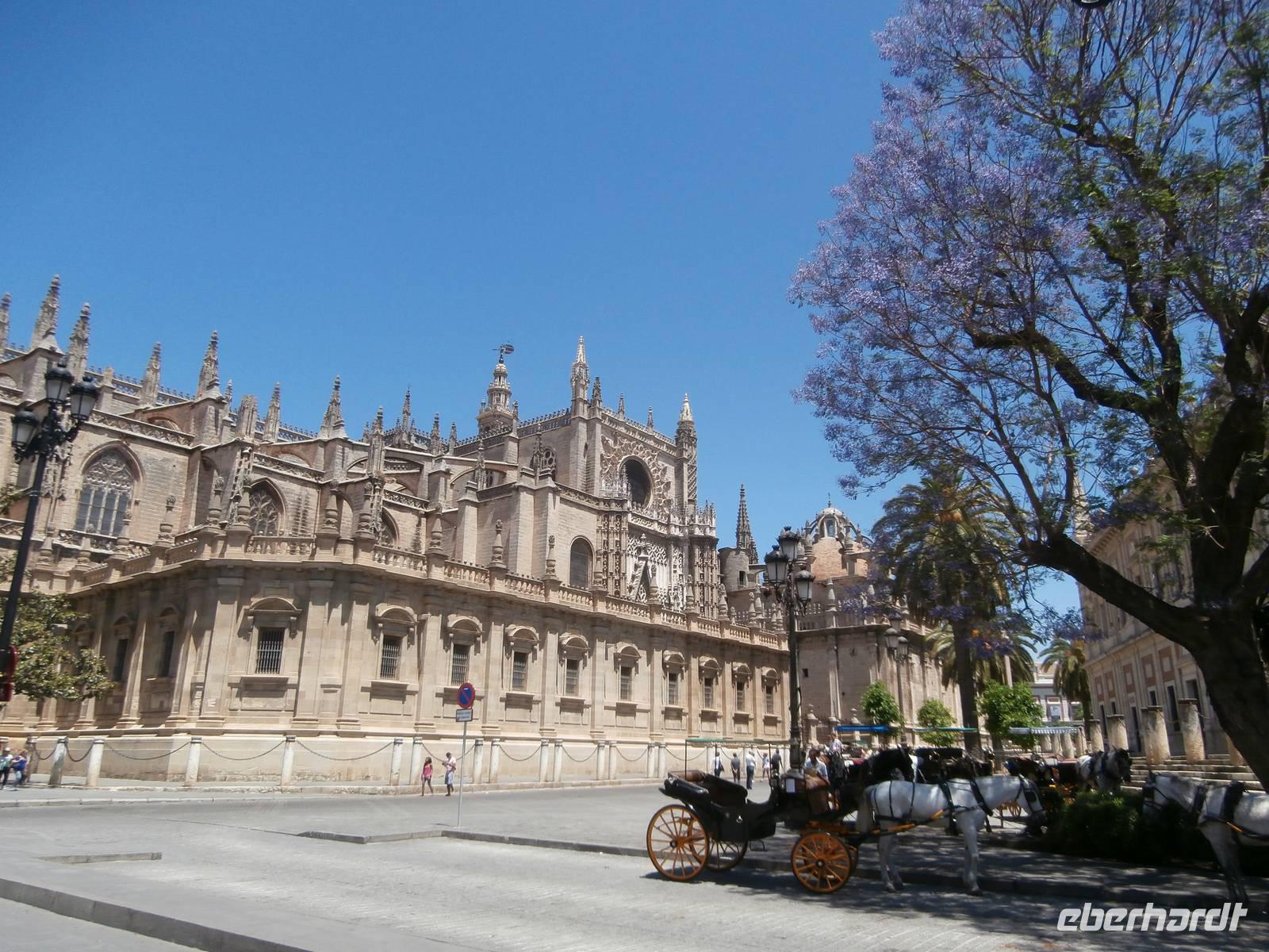 In Jerez de la Frontera kehren wir in der Bodega Real Tesoro ein und erhalten eine Führung durch das Reich der alten Sherry Fässer, sehen Pferde und Kutschen und verkosten 4 Sorten des edlen Weines dazu werden uns leckere Tapas gereicht. Wir erleben wieder einen weiteren Höhepunkt unserer Andalusien Reise und das bei sommerlichen Temperaturen von 40 Grad. Zeitig kommen wir nicht weiter, möchte doch jeder Gast vom Sherry oder Brandy etwas einkaufen und mitnehmen. Am Abend kommen wir in Sevilla an und die Anfahrt zum Hotel mit dem Kofferausladen gestaltet sich schwierig, muss doch unser Chauffeur, Gepäck an einer mehrspurigen Straße ausladen. Morgen steht die Erkundung dieser fantastischen Stadt Sevilla auf unserem Plan.