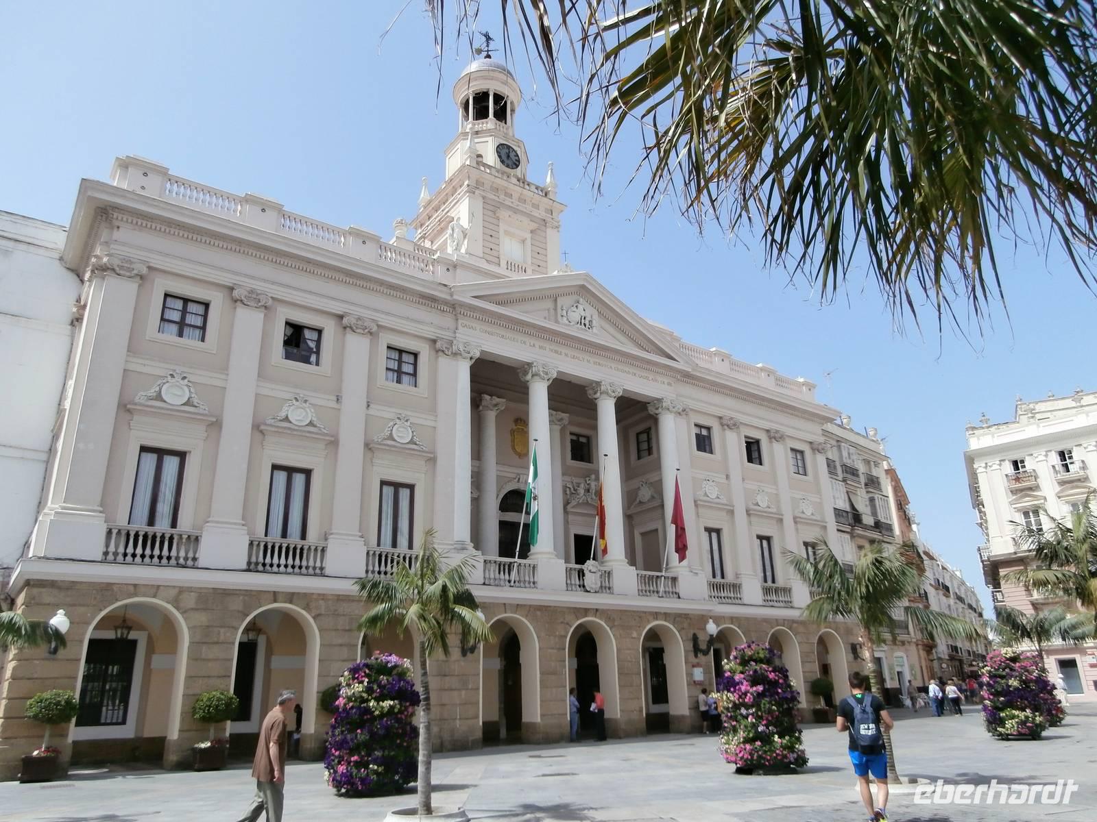 Ein gutes Frühstück mit Obst, Eiern, Tomaten und viel Auswahl an Käse und anderen Leckereien gönnen wir uns heute Morgen. Andreas fährt mit dem Bus vor und seine sportliche Übung jeden Tag besteht im Koffer ein- und ausladen, er stemmt ganz schön Gewichte. Erstes Ziel ist die schöne Hafenstadt Cádiz, hier feiert man einen besonders bekannten Karneval. Der einstige Reichtum der Stadt spiegelt sich noch in der Kathedrale und anderen barocken Gebäuden wieder.