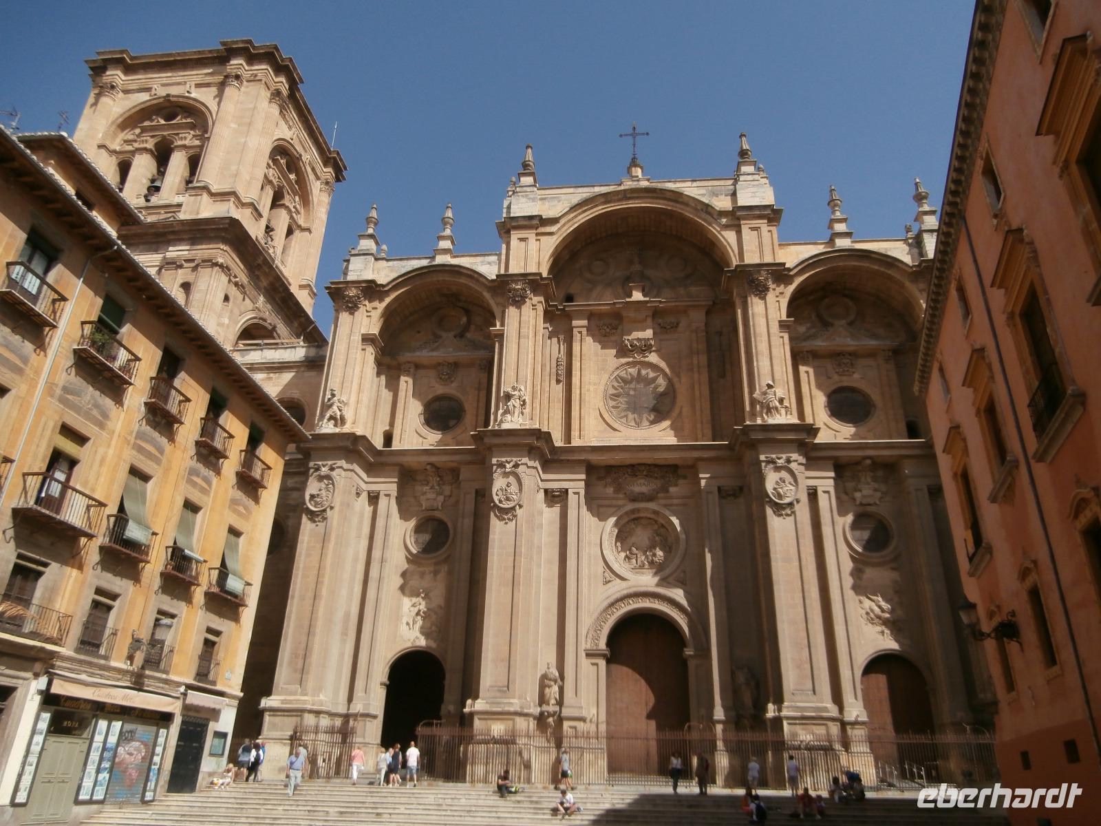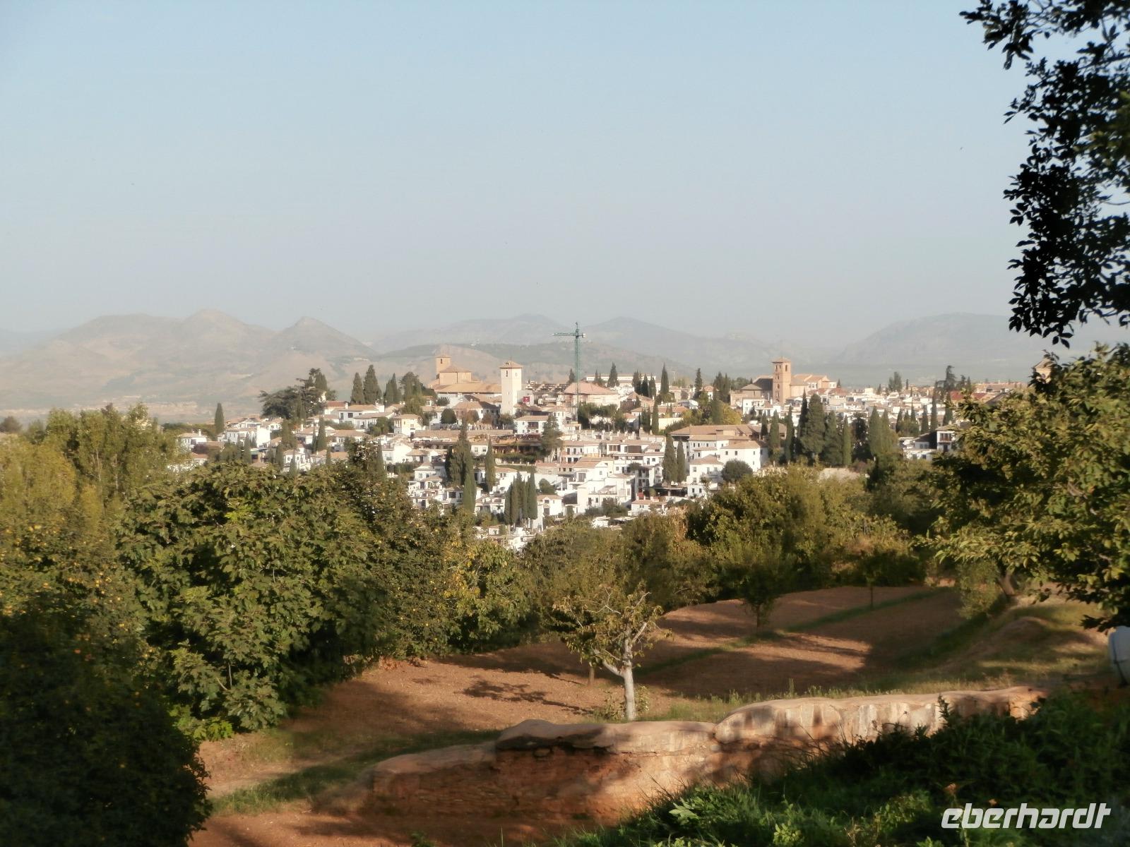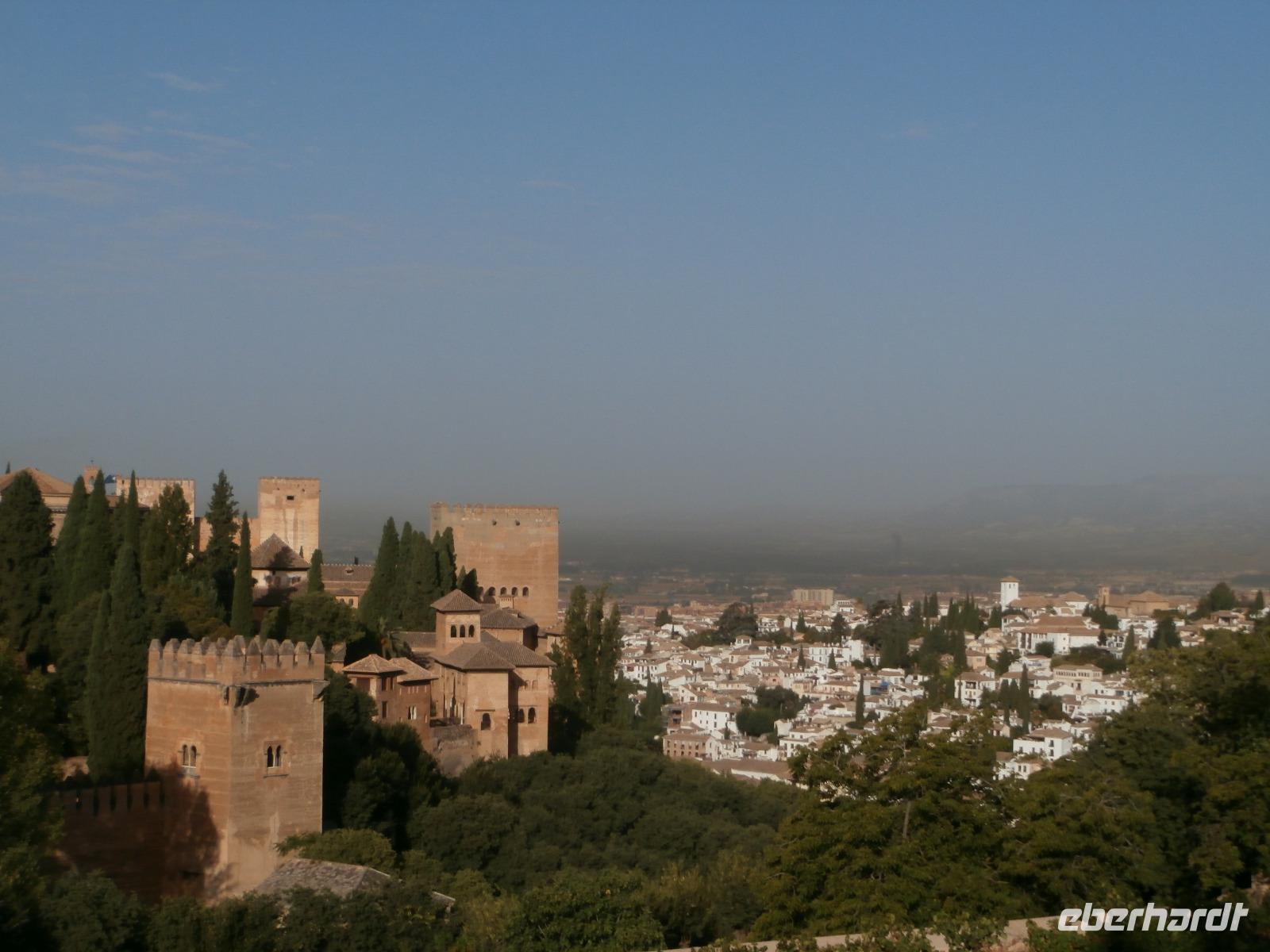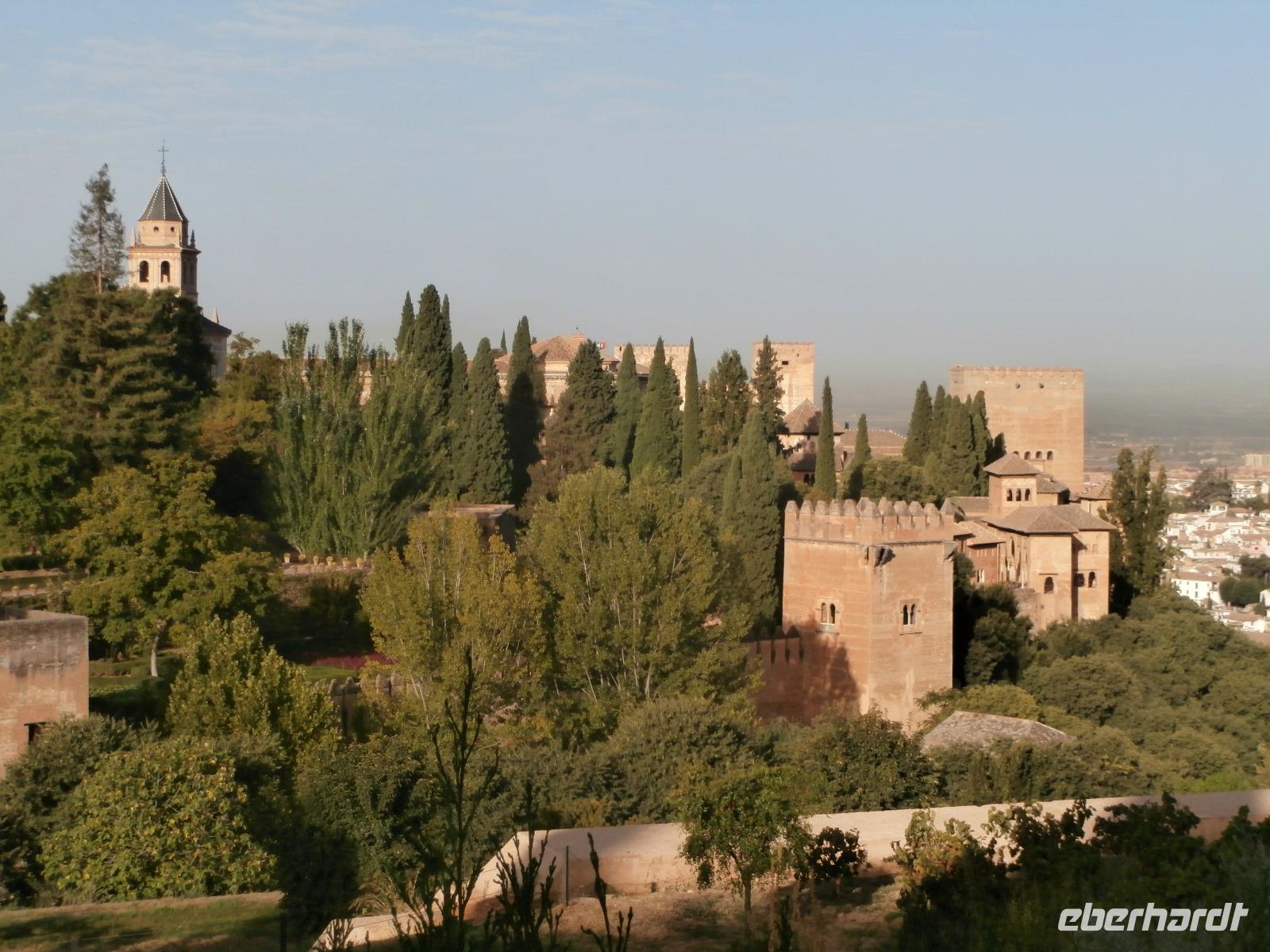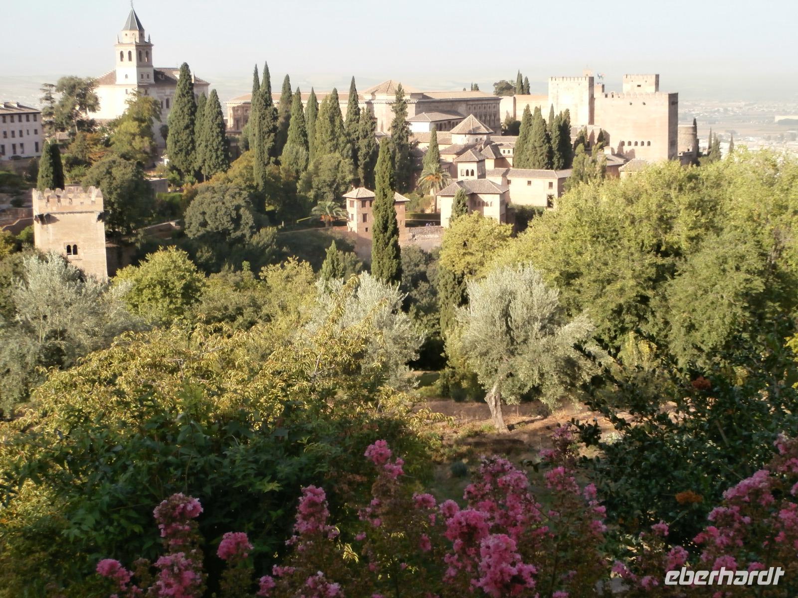 Unser Frühstück können wir schon 7.30 Uhr einnehmen. Nach dem Verladen der Koffer geht die Reise weiter. Heute sind Sommertemperaturen bis fast 30 Grad zu erwarten. Das Ebro Delta, eines der größten Feuchtgebiete Europas, lassen wir vorüberziehen. In der Sumpflandschaft wird Reis angebaut. Die Küsten Kataloniens mit mehr oder weniger großen Touristenhochburgen sehen wir z.B. Benidorm, das Manhattan Spaniens. Palmenwälder in großer Ansammlung lassen wir in Elche vorüberziehen, rund 200.000 Bäume zählt das riesige Areal. Die grandiose Bergwelt der Sierra Nevada empfängt uns, leider ist die Aussicht sehr diesig und keine Gipfel zu sehen. Die Höhlenwohnungen von Gaudix im Tuffstein sind von der Autobahn aus gut anzusehen und beeindrucken uns sehr. Am Abend kommen wir in Granada an und beziehen im Hotel Alixares unsere Zimmer. Nach dem Abendessen gibt es Gelegenheit, bei einem Spaziergang Granada bei Nacht zu sehen, die Temperaturen sind noch hoch und so lässt es sich gut bummeln in der Altstadt von Granada. 815km