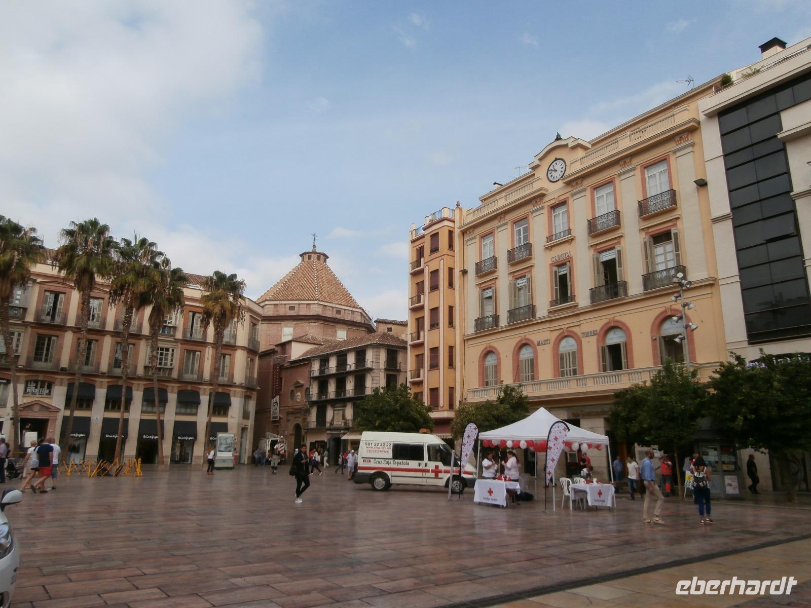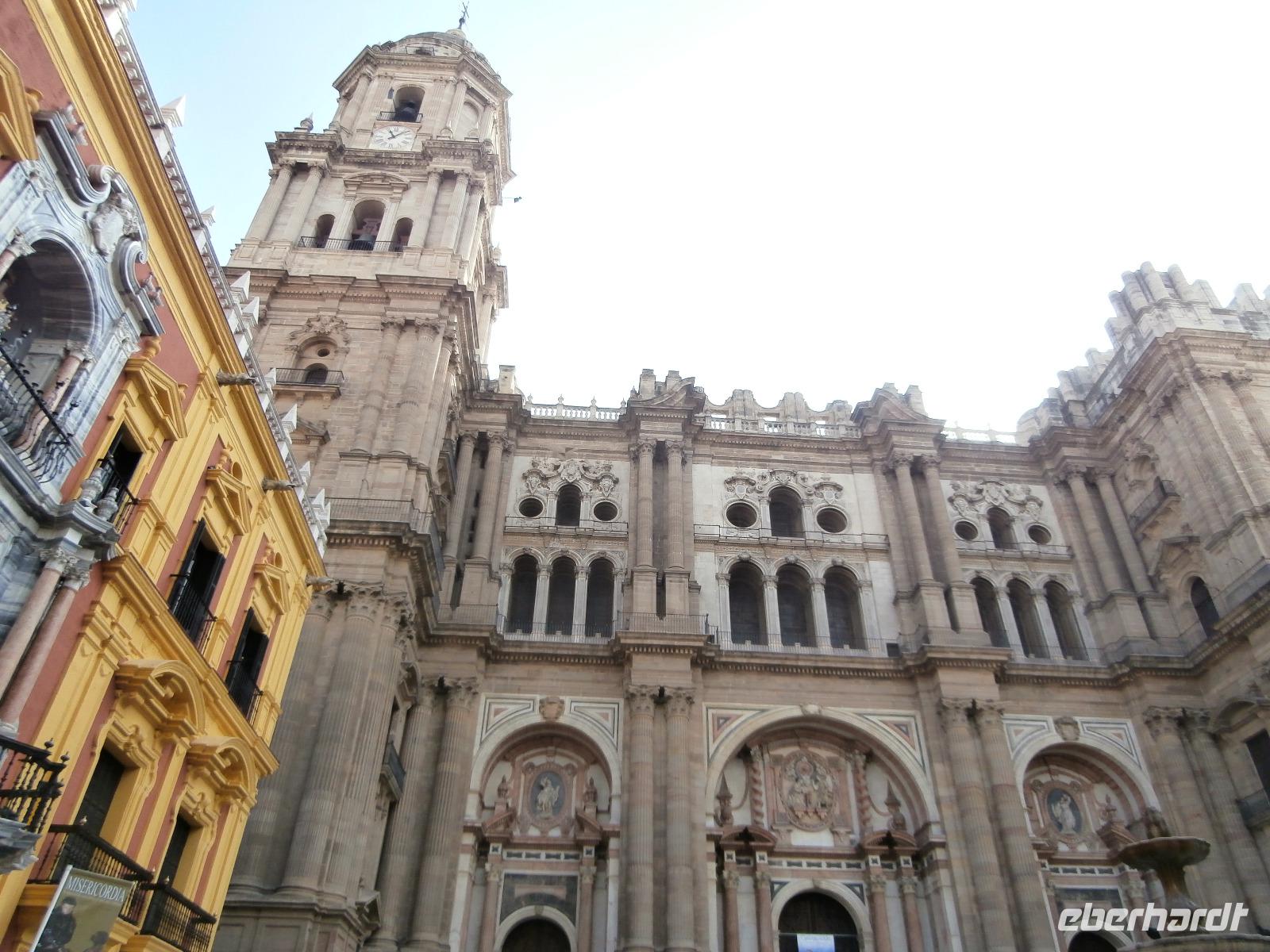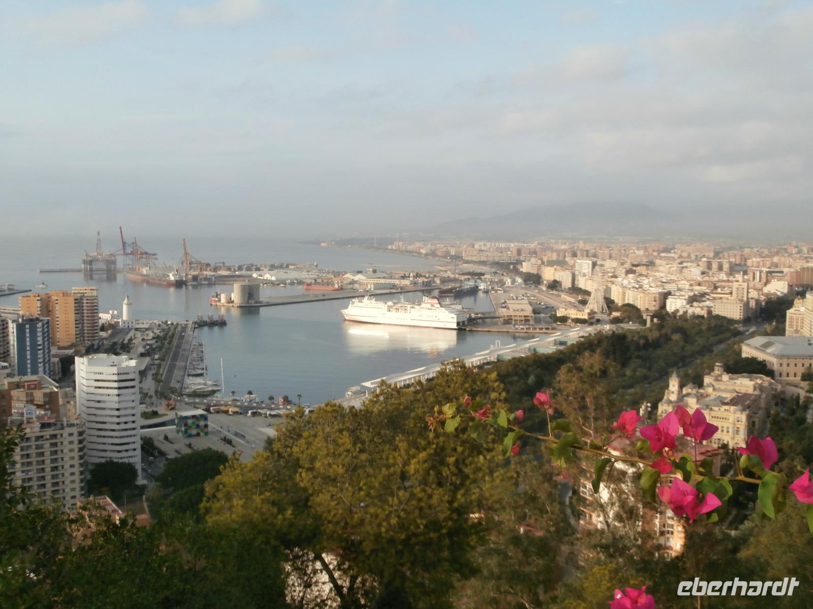 Mit unserem Bus stoppen wir noch in Granadas Altstadt und verbringen den Nachmittag mit Besichtigung der Kathedrale und der Capella Real, wir sehen die verschiedenen Baustile von Mujedar bis Renaissance, verwinkelte Gassen und Bars laden ein zum Verweilen. In Nerja wollen wir vom Balkon de Europa in das aufgewühlte Mittelmeer schauen, aber ein bevorstehendes Fest läßt uns nicht auf den Parkplatz für Busse gelangen und so fahren wir wieder aus der Stadt heraus ohne Besichtigung und weiter geht's nach Málaga. Hier gestaltet sich das Ausladen der Koffer etwas schwierig, im Kreisverkehr lädt Andreas schließlich unsere Koffer aus. Ein leckeres Abendessen mit Wein und Wasser gratis lässt uns schnell die Strapazen vergessen. 180km