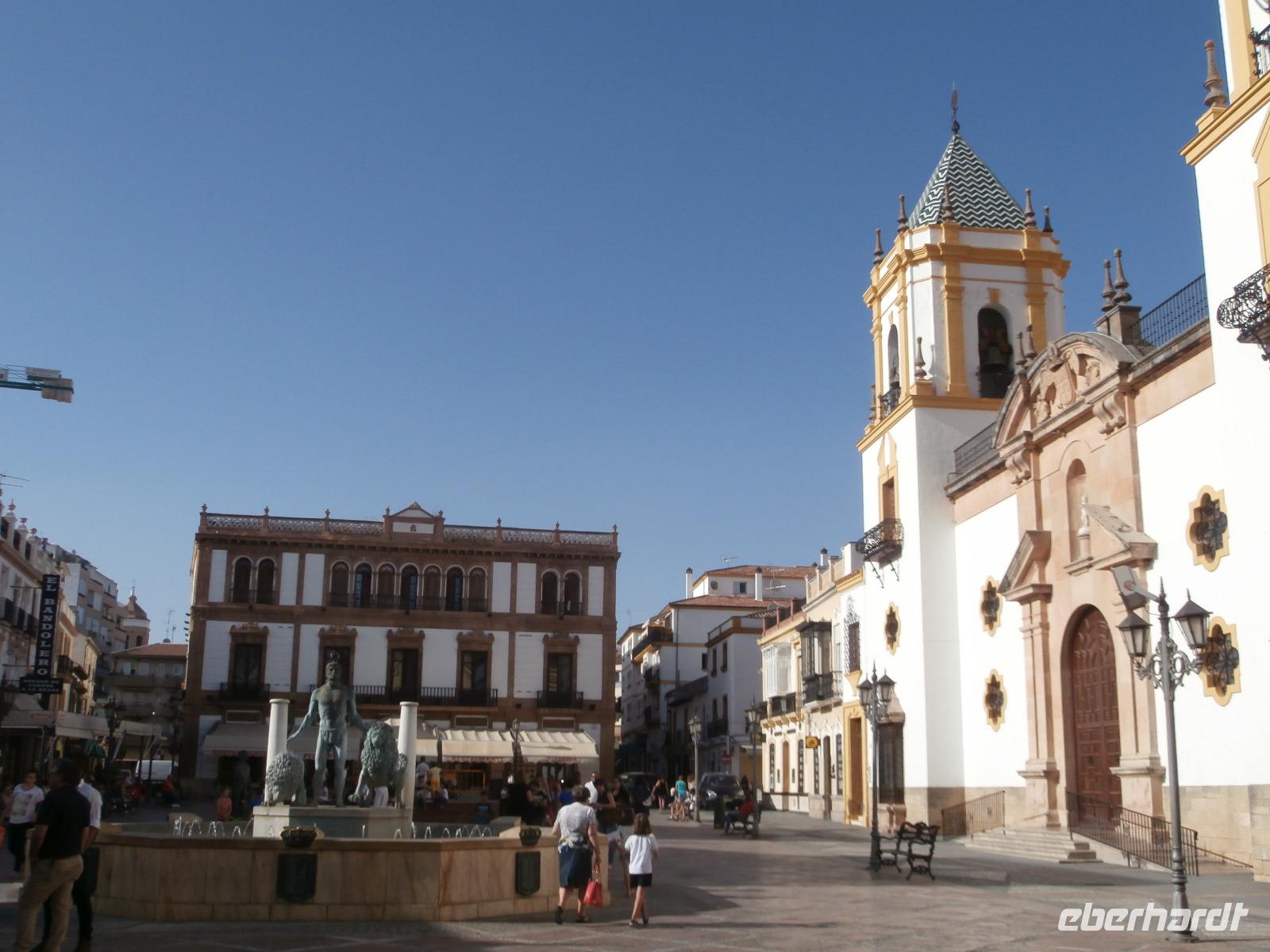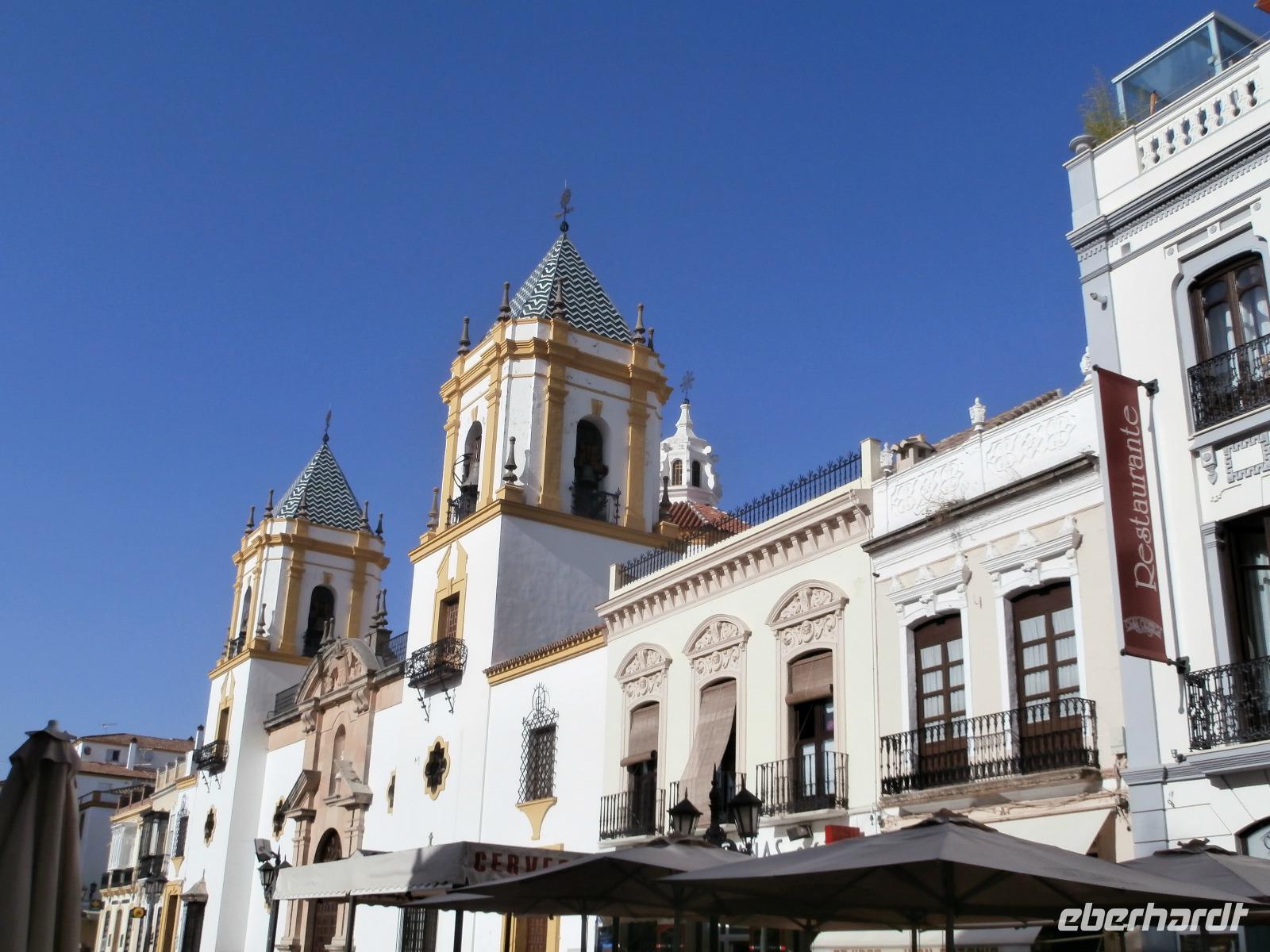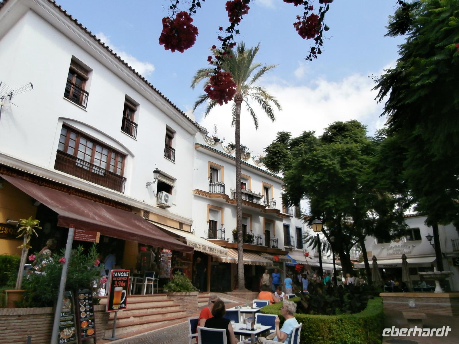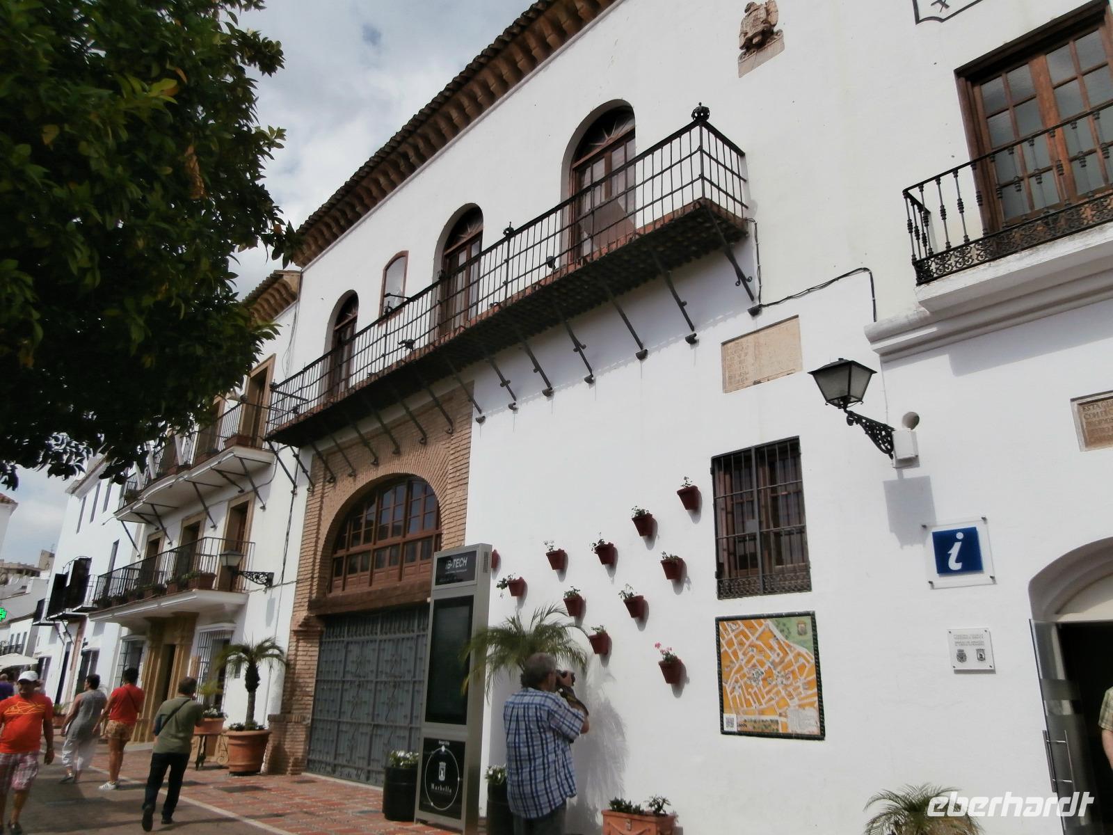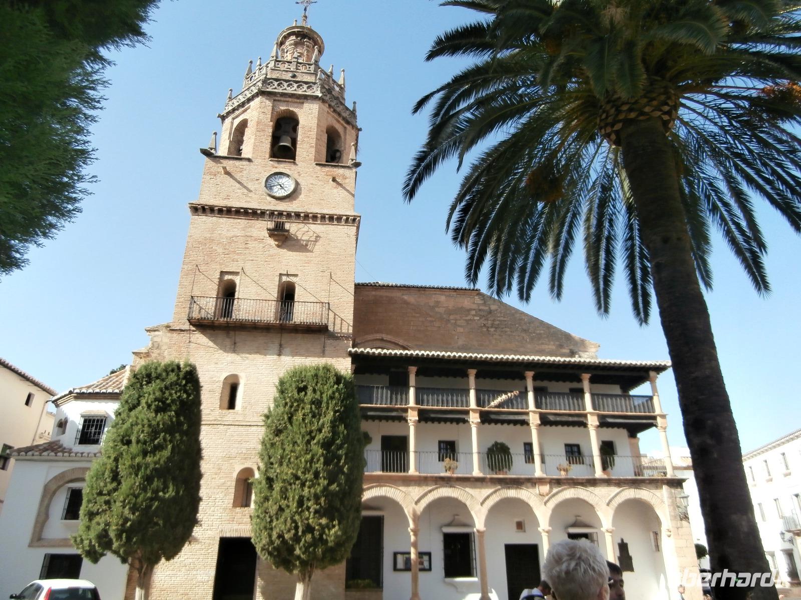Heute Morgen erwartet uns wieder das schöne Sommerwetter, wenn auch noch einige Wolken am Himmel zu sehen sind. Unser Gepäck bringen wir wieder an den Kreisverkehr zum Bus und hier erwarten uns schon die örtlichen Führerinnen für die Besichtigung Málagas. Mit Cristina und Carmen fahren wir im Bus vorbei am Hafen, dem schönen Rathaus und durch sehr schmale Straßen hinauf zum Aussichtspunkt auf dem Monte Faro, dem Gibralfaro, herrlich der Blick über die Stadt. Beim anschließenden Rundgang durch die Altstadt sehen wir auch kurz in die Markthalle hinein. In die Kathedrale, die man ab 1528 über einer Moschee erbaut hat, gehen wir hinein und lassen uns viel von unseren Führerinnen dazu erzählen. In Nähe des Rathauses steigen wir wieder in den Bus. Málaga hat über 300 Sonnentage und wir haben wieder blauen Himmel und Sonne zur Abfahrt. Bekannt ist Málaga auch für Rosinen und Wein der Sorte Muskateller. In Marbella können wir bei sommerlichen Temperaturen in der Altstadt lustwandeln, vom Orangenplatz zweigen kleine Gassen mit verrückten Boutiquen und Läden mit Kunsthandwerk ab. Die vielen Tabas Bars laden zur Mittagszeit auch auf ein Glas Wein und leckere Speisen ein. Unsere Fahrt setzen wir fort, es geht hinauf nach Ronda, diese Stadt begeistert allein schon durch ihre spektakuläre Lage über El Tajo, der zerklüfteten Schlucht-über 100 Meter auf Felsen über dem Rio Guadelvin. Über die steil abfallenden Wände spannt sich eine Brücke, die Puente Nuevo aus dem 18. JH. Mit Juan und Jesus erleben wir fantastische 2 Stunden in Ronda, wo auch die älteste Stierkampfarena Spaniens steht. Über die Route der Pueblos Blancos, der „weißen Dörfer" verlassen wir Ronda, typisch sind die weiß gekalkten Häuser mit roten Ziegeldächern und schmalen, verwinkelten Gassen, oft wie Schwalbennester klebend am Berg. Auf unserer Fahrt in Richtung La Linea sehen wir immer wieder Stiere auf den Weiden. Spät kommen wir heute im Hotel an, aber ein gutes Büffet mit lecker Wein für alle und schöne Zimmer mit Aussicht auf den Felsen von Gibraltar lassen uns schnell hier ankommen. 260km