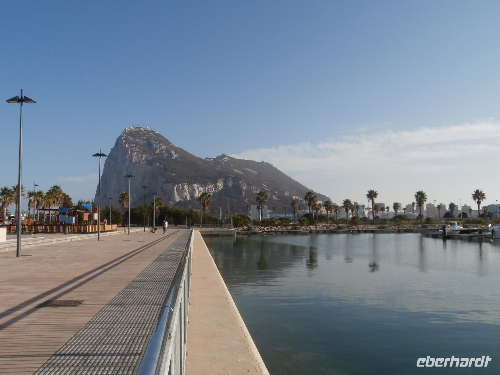 Wir werden auch heute wieder mit wunderschönem Wetter gesegnet. Ganz entspannt starten wir nach einem guten Frühstück mit dem Bus zur kurzen Fahrt hinein nach Gibraltar, der britischen Kronkolonie schon seit 1704. Der markante Felsen mit nur 6,5 qkm Größe und bis 450 Meter Höhe, gelegen an der Nordseite der Straße von Gibraltar-die Grenze zwischen Spanien und Gibraltar, ist nur 1,2 km lang. Mit Minibussen, in die wir umsteigen, erkunden wir den Felsen. Beim ersten Halt an der Südspitze befinden wir uns am Europapoint, hier fließt links das Mittelmeer und rechts der Atlantik, also Afrika und Europa getrennt durch die Straße von Gibraltar. Auch ein Leuchtturm und die Moschee stehen in nächster Nähe. In der St. Michaels Höhle bewundern wir Stalakmiten und ihre Gegenstücke, in der Höhle herrscht eine wundervolle Akustik, die man gelegentlich für Konzerte nutzt. Affenfelsen nennt man auch Gibraltar und wir erleben die schwanzlosen Berberaffen in Aktion. Taschen und Fotoapparate muss man gut vor ihnen sichern, sind sie doch aufs Stibitzen bestens eingestellt. Wir haben viel Spaß und sind fleißig am Fotografieren. Unsere Freizeit verbringen wir entlang des Hauptplatzes und mit Einkäufen in der Main Street, Goldschmuck, Parfüm und Modeartikel für jedermann, es ist fantastisch dieses Gewimmel. Zu Fuß über die Grenze und das letzte Stück im Bus fahrend, erreichen wir am Nachmittag wieder unser Hotel. Bei Sonnenschein und angenehmen Temperaturen lassen wir den Tag am Pool oder in der Stadt ausklingen. 20km