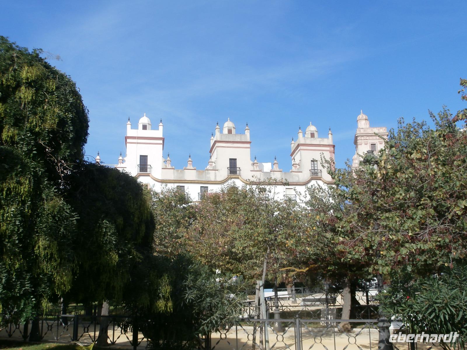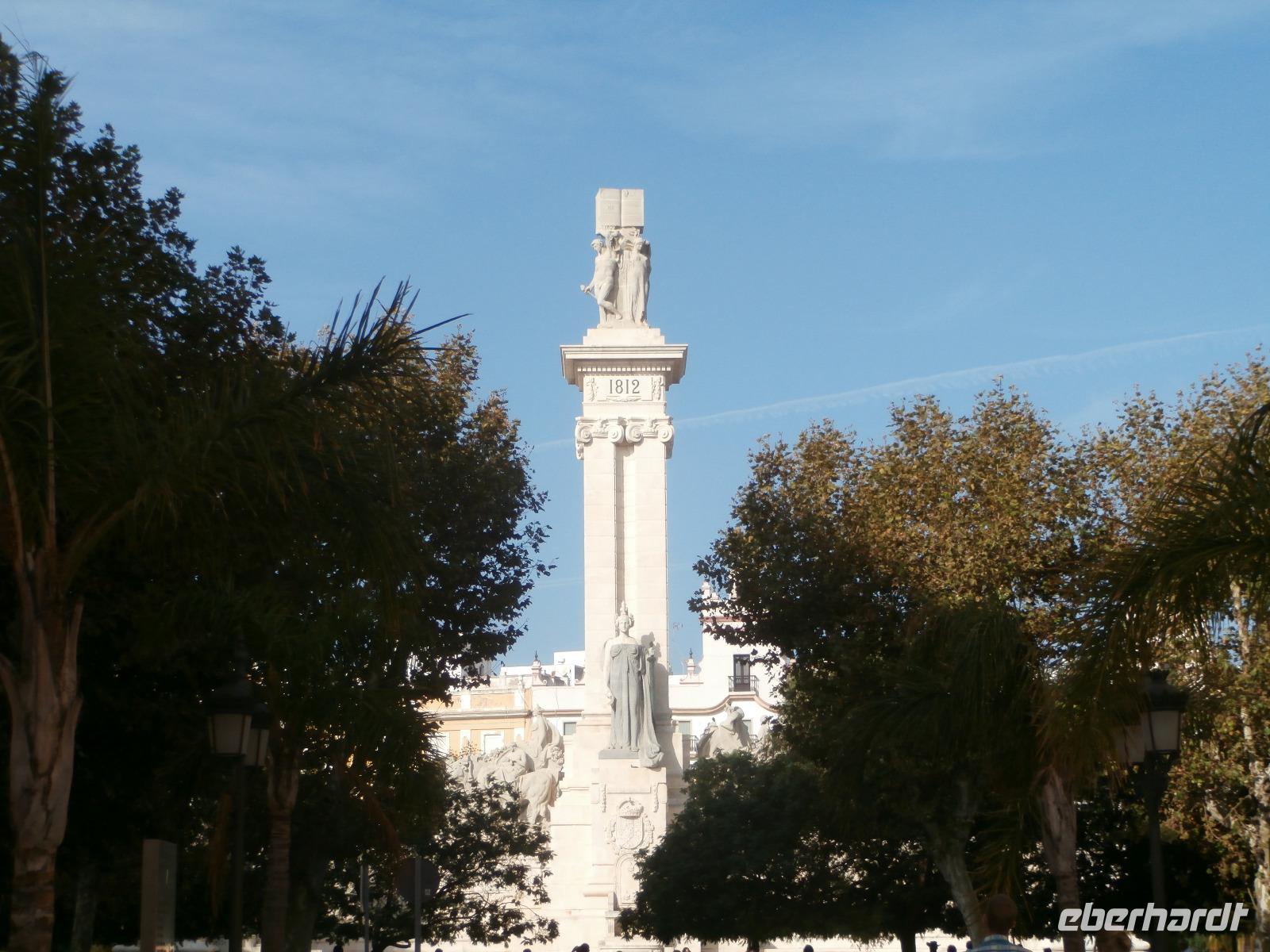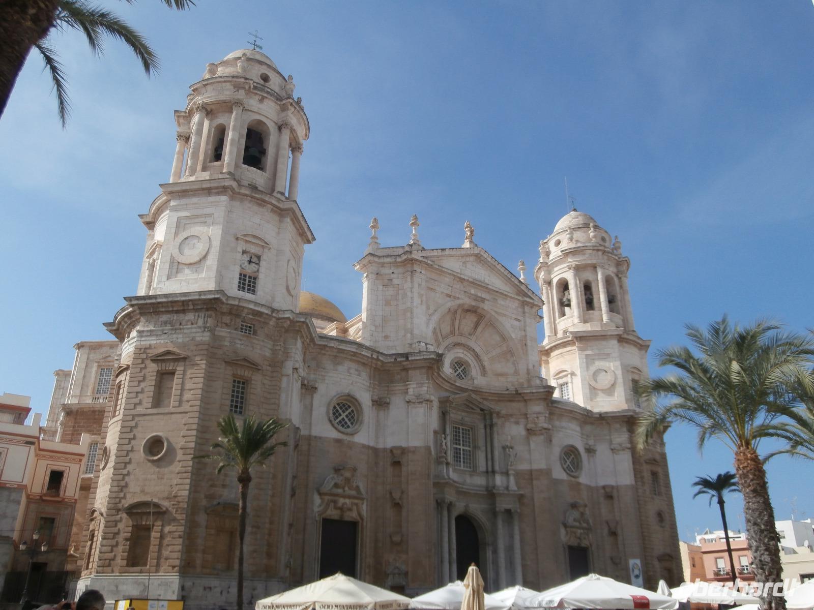 Nach dem Frühstück bringen wir wieder unsere Koffer zum Bus. Andreas fährt vor und seine sportliche Übung jeden Tag besteht im Koffer ein- und ausladen, er stemmt ganz schön Gewichte. Erstes Ziel ist die schöne Hafenstadt Cádiz, hier feiert man einen besonders bekannten Karneval. Der einstige Reichtum der Stadt ist noch an der Kathedrale und an anderen barocken Gebäuden zu sehen. Unsere örtl. Reiseleiterinnen Maria und Marianne nehmen uns mit auf eine Rundfahrt durch Cádiz, wir haben danach einen schönen Stadtrundgang, sie führen uns bis zum Platz der Blumen, die Markthalle ist heute wegen des örtlichen Feiertages, dem Fest der Madonna des Rosenkranzes, geschlossen.