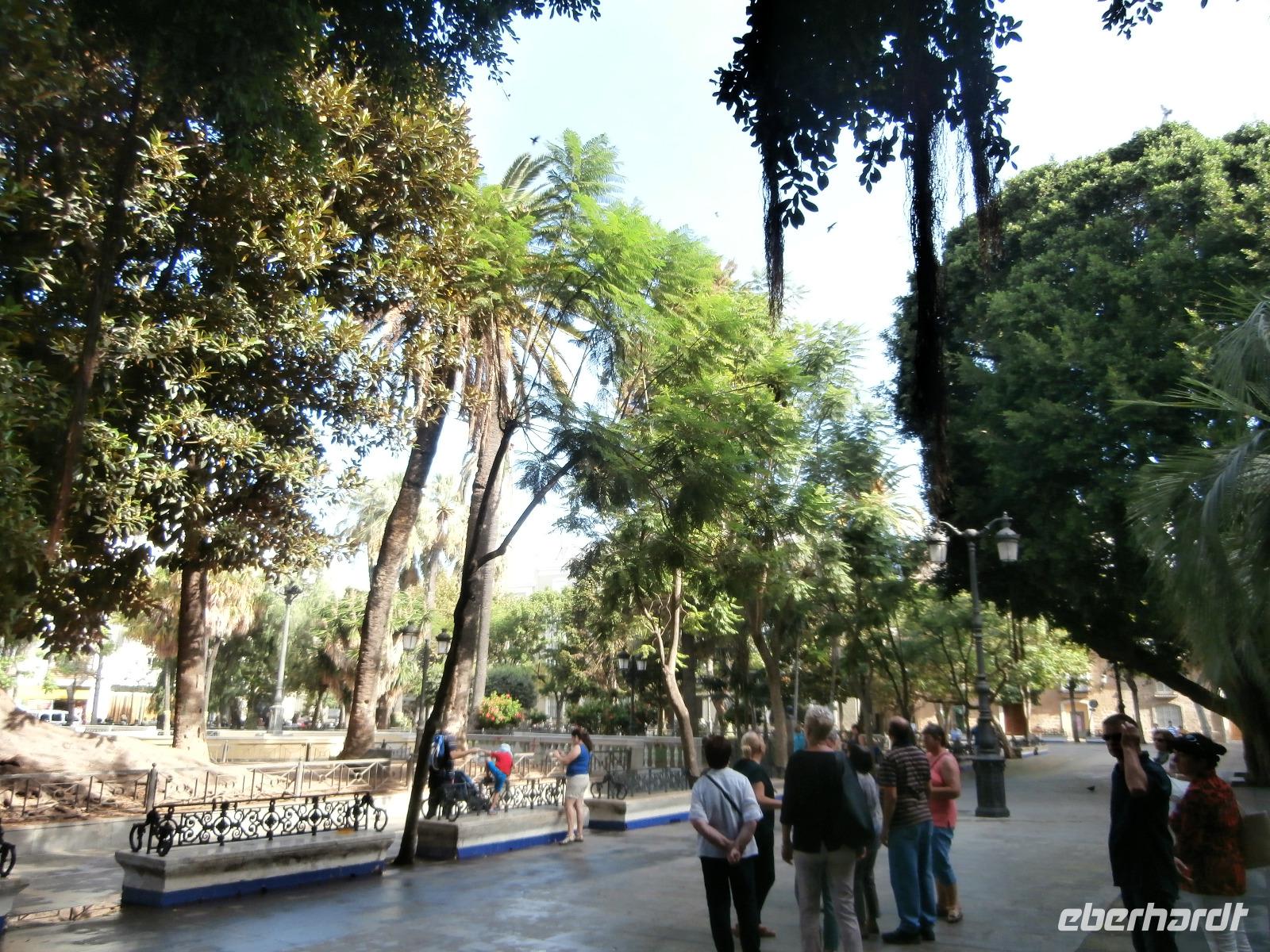 Unsere Koffer bringen wir zum Verladen vor das Hotel, im Mini Van verschwinden sie dann und der Fahrer bringt mit Andreas, unserem Buschauffeur, das Gepäck zum Busbahnhof und dem dort abgestellten Bus. Vorm Hotel treffen wir Frau Ines Moreno und mit ihr starten wir zum Spaziergang durch die engen Gassen des Judenviertels, wir schauen in die herrlichen Patios hinein. Durch die Blumengasse geht es hinauf auf einen kleinen Platz, mit Blick auf den Glockenturm mit 93m Höhe, auf der Spitze die Wetterfahne mit dem heiligen Raphael, der Schutzpatron von Cordoba. In seiner linken Hand hält er einen Fisch. Die Besichtigung von Cordobas fantastischem Bauwerk, der Mezquita, steht als Nächstes auf dem Programm. Sie ist ein Denkmal islamischer Baukunst und hat Cordoba zu einem modernen Mekka gemacht. An der Stelle einer Basilika der Westgoten erbaute Abdul-Rahman eine Moschee. Diese wurde noch dreimal erweitert und als König Ferdinand III. nach seinem Sieg 1236 darin eine Messe feierte, wurde sie zur Kathedrale mit einem Teil für Muslime. Wir fühlen uns beim Rundgang fast wie in eine andere Welt, in 1001 Nacht, versetzt. Gegen Mittag verlassen wir Cordoba und fahren durch herrliche Landschaft, geprägt von ausgedehnten Olivenplantagen, Weinanbau, Hügellandschaft, alles in einem satten Grün. Ein Stück des Weges sind wir „Don Quijote" und Sancho Pansa sehr nah-fahren wir doch durch die La Mancha, hier hielt der Ritter eine Windmühle für einen Riesen. Am Abend erreichen wir unser Hotel in Valencia. In der Nähe des Hafens sind wir heute im Hotel Abba Acteon zur Übernachtung. 550km