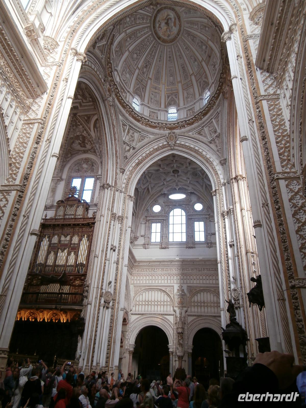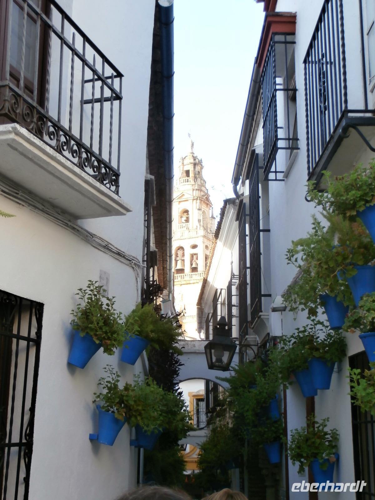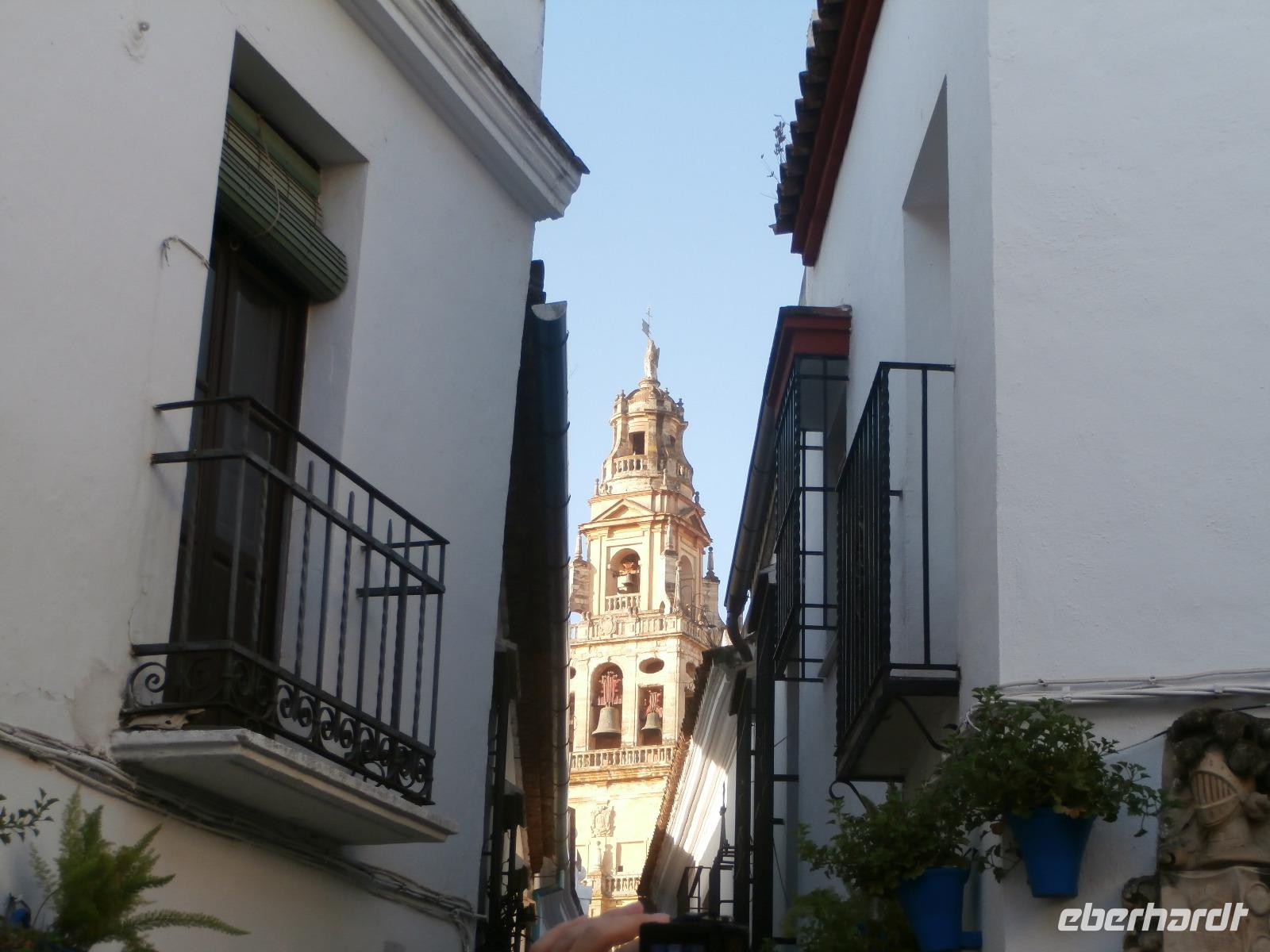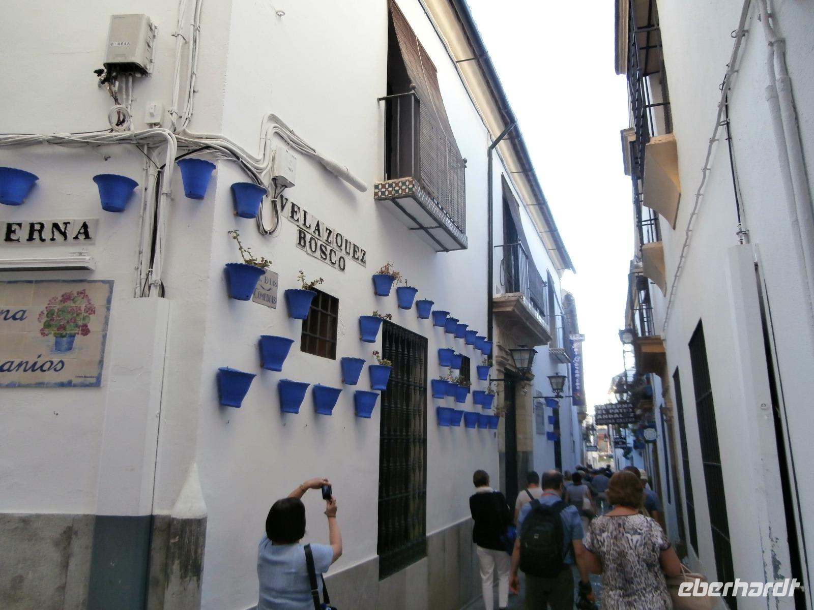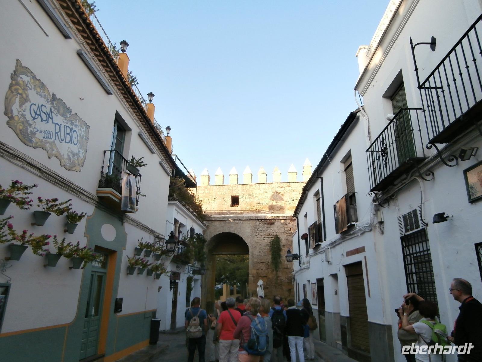 Pünktlich landet unser Andreas mit dem Bus vorm Hotel an und schnell sind unsere Koffer verstaut. Von unseren örtl. Reiseleitern Pilar und Wolfgang werden wir am Hotel erwartet und dann geht es mit unserem Bus zur Stadtrundfahrt vorbei am Garten der Maria Luisa bis hin zum Spanischen Platz. Mit den Audio guides können wir ganz entspannt die Rundgänge in Sevilla erleben. Nach dem Bummel über den Platz und reichlich Fotos geht die Fahrt im Bus weiter bis zum Ausstieg in Nähe des Torre del Oro, dem Goldenen Turm, am Rio Guadalquivir. Wir besichtigen zuerst den Alcazar, den Königspalast. Taschenkontrolle für alle bringt etwas Wartezeit mit sich. Der Palast ist ähnlich wie die Alhambra in Granada, aber älter, aus dem 12. JH und erbaut von der Almohaden-Dynastie. Wir sehen Decken aus vergoldeten Zedernholz, Türen aus Lerchen-und Teakholz, Kachelmosaiken in Schleifenmuster, was die Unendlichkeit Allahs verdeutlicht, mit Suren, Stuckarbeiten in Gips, Alabaster und beeindruckend auch die Hufeisenbögen und der Hof der Puppen. Durch das liebreizende Judenviertel gelangen wir zur Kathedrale, sie ist die drittgrößte der Welt nach dem Petersdom und St. Paul in London. 1402-1506 erbaut, der Hochaltar ist der größte christliche Altar der Welt. Leider bleibt heute dieses Bauwerk für uns geschlossen, es sind spanische Religionsvertreter von überall eingeladen. Der Glockenturm der Kathedrale entstand aus der Moschee, auf der Spitze ist die Wetterfahne, das Giralda-Siegeszeichen über den Islam. Die Giralda dürfen wir erklimmen und wir genießen das traumhafte Sommerwetter für unsere Ausblicke und für die Meisten von uns geht es hinauf auf der Rampe mit 35 Kurven, anstelle von Treppen, damit die Wächter früher mit dem Pferd zum Dienst gelangen konnten. Wärme und Sonnenschein sorgen für ein tolles Gefühl in dieser Stadt. Wir verabschieden uns aus Sevilla, am Brunnen ist Treff und weiter geht die Fahrt nach Cordoba. Im Hotel Selu werden wir heute erwartet, aber vorher müssen wir unseren Bus und die Koffer zurücklassen. Unser Gepäck wird im Bus am Busbahnhof in den Mini Van vom Hotel Selu umgeladen und im Kleintransporter zum Hotel in der Fußgängerzone gebracht. Später nach dem Abendessen treffen wir uns um zum Flamenco Abend. Die Show ist ein fantastisches Erlebnis, bis in die Zehnspitzen sehen wir Körperbeherrschung pur. Frauen und auch Männer zeigen uns die hohe Kunst des Flamencos in Perfektion. 180km