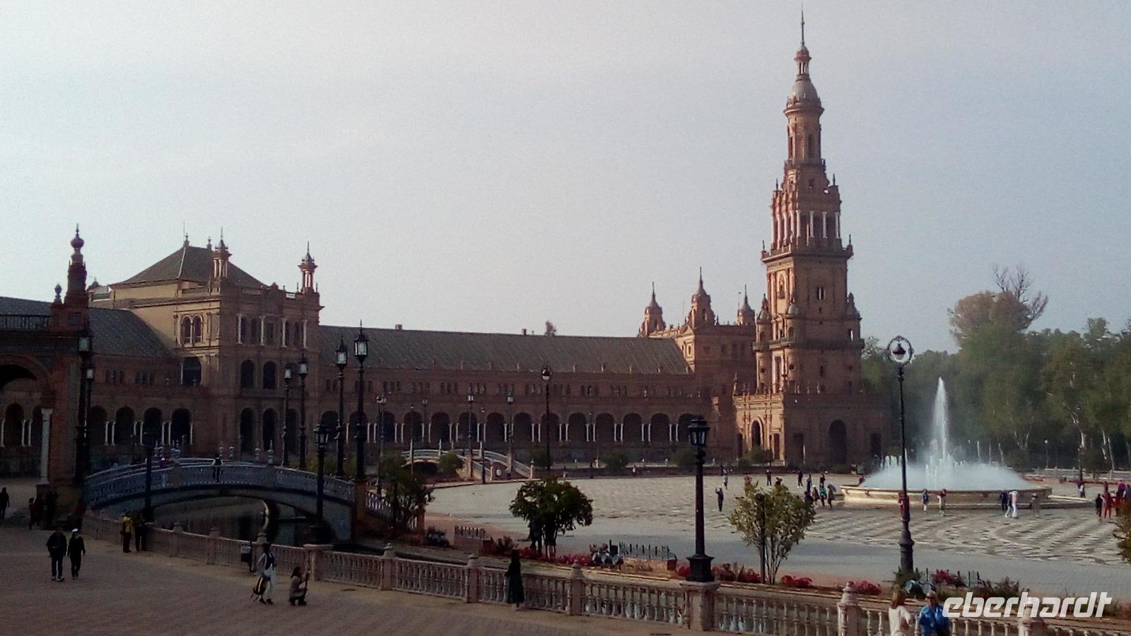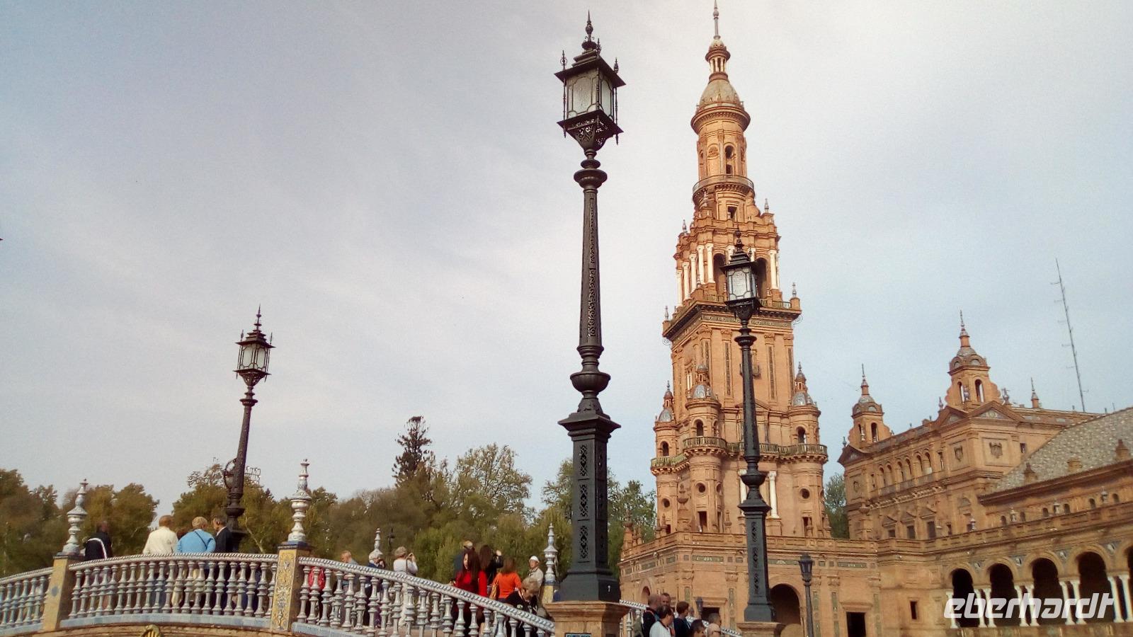 Heute stürzen wir uns in Andalusiens Hauptstadt! Erster Stop ist auf der Plaza de España, dem Spanien-Pavillon der Iberoamerika-Ausstellung von 1929, der im Neomudéjarstil Stilelemente aus dem maurischen Andalusien aufgreift und verschiedene Elemente aus Ziegeln, Kacheln und Keramikgeländern miteinander vereint. Besonders interessant sind die Nischen der Autonomen Gemeinschaften, damals wurden Messestände noch für die Ewigkeit gebaut.