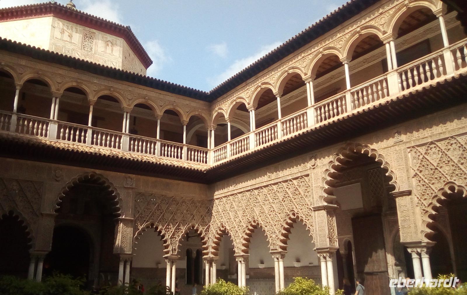 Vorbei an der durch die Carmen-Oper berühmten Tabakfabrik geht es zum historischen Stadtkern, wo zwischen Königspalast und Kathedrale stets ein lebendiges Getümmel samt Pferdekutschen den Platz bevölkert. Der Real Alcázar diente kastilischen Königen als Residenz, wenn sie sich in Sevilla aufhielten. Auch wenn kein Mobiliar mehr zu besichtigen ist, wird hier die bewegte Geschichte Spaniens lebendig: Beispielsweise durch solche Details wie großflächig in die Wanddekoration eingearbeitete Koran-Buchdeckel, die erst Jahre später von den christlichen Monarchen als solche erkannt und mit christlichen Symbolen „überthront" wurden.