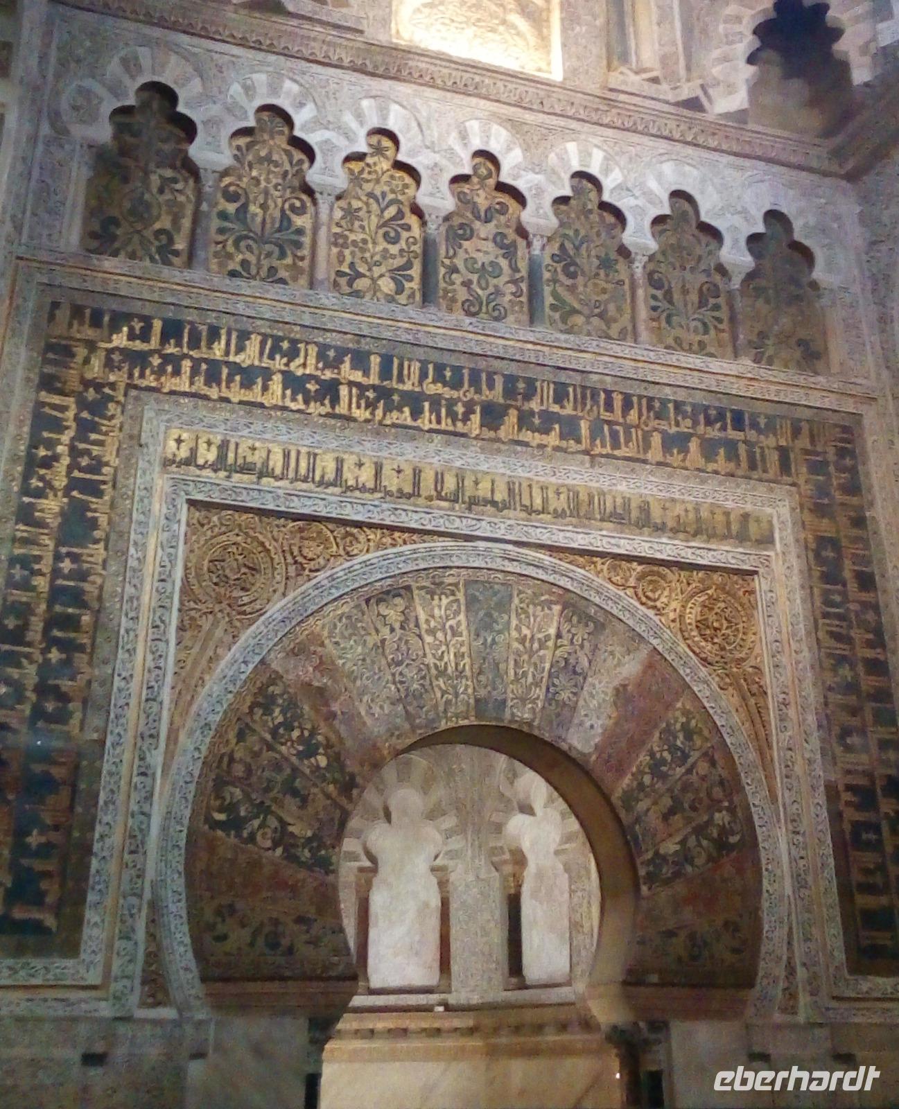 Zum Abschied von Andalusien besichtigen wir die Mezquita und heutige Kathedrale von Córdoba. Ein Meer aus Säulen lädt einen im Betsaal zum Inne halten ein, so viel freien Raum gibt es sonst selten. Dennoch gibt es viele Details zum Entdecken, denn über die Jahrhunderte hat die Moschee drei Erweiterungen erhalten. Besonders schön zeigt sich die nach Mekka ausgerichtete Gebetsnische des Vorbeters. Als Fremdkörper wird die ins Gebäude der Moschee gepflanzte Kathedrale empfunden, die mit ihren Mahagonikanzeln, dem geschnitzten Chorgestühl und vergoldeten Leuchtern eine so andere architektonische Ästhetik in den erhabenen Bau hineinbringt. Schon Karl V bedauerte diesen Eingriff, aber er repräsentiert heute wie kein anderer den politischen Machtkampf, der auf symbolisch-kultureller Ebene ausgetragen wird.