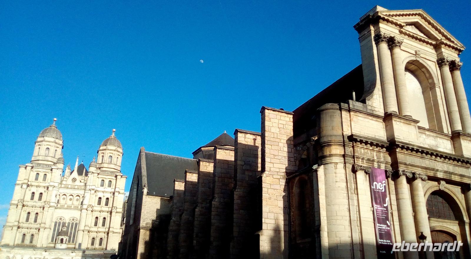 Nachmittags nehmen wir uns Zeit für Spaziergänge durch Dijon. Wer sich noch nicht in den Lavendel verliebt hat, wird hier vielleicht bei einem der tollen Senfsorten schwach. Die Innenstadt betört aber auch die Nicht-Shopper, ein architektonischer Leckerbissen ist in jedem Fall die Kathedrale, die uns Gothik auf Burgunder Art näher bringt.