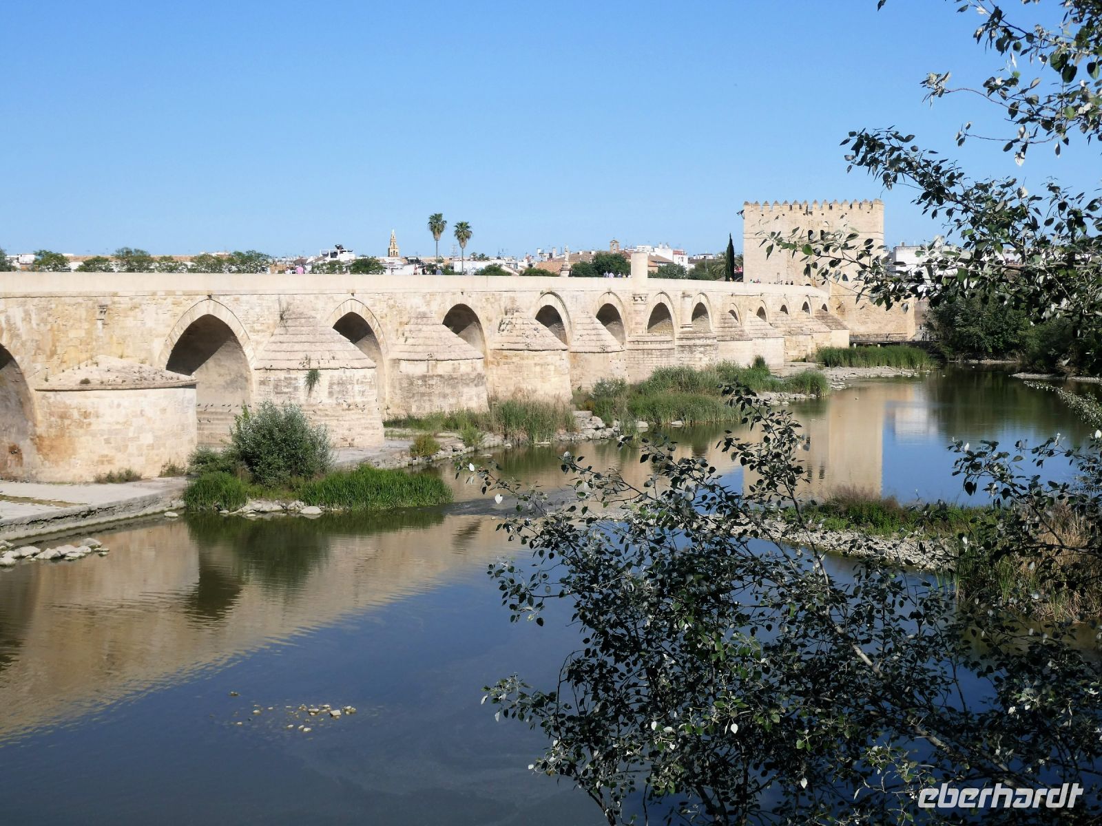 Schließlich erreichen wir Cordoba. Die Temperaturen sind im Laufe des Tages gestiegen. Es ist wirklich heiß. Unser Hotel hat eine phänomenale Lage, direkt vor dem wichtigsten Bauwerk der Stadt: "La Mezquita" - die Moschee. Allerdings kann vor dem Hotel kein Bus halten. Es wird ein Gepäcktransfer organisiert, welcher pünktlich am Treffpunkt erscheint. Wir spazieren entlang des "Rio Guadalquivir" entlang alter Wasserräder (Norias) zur "Puente Romano". Diese maurische Brücke ruht auf römischen Fundamenten. Schön wird es hier am Abend sein, wenn die Moschee erleuchtet ist. Jetzt aber sind wir gleich im Hotel und können ein wenig ausruhen.