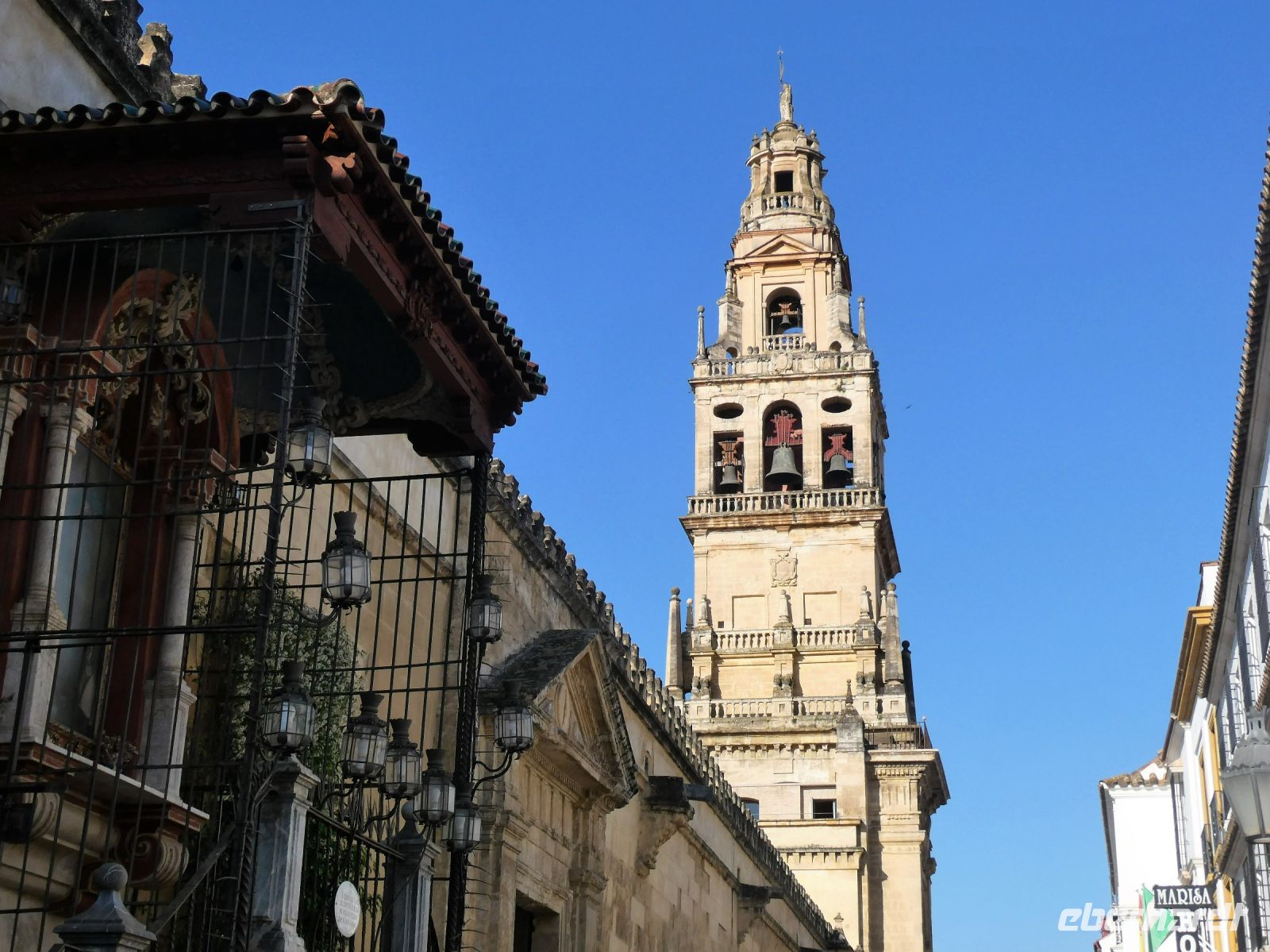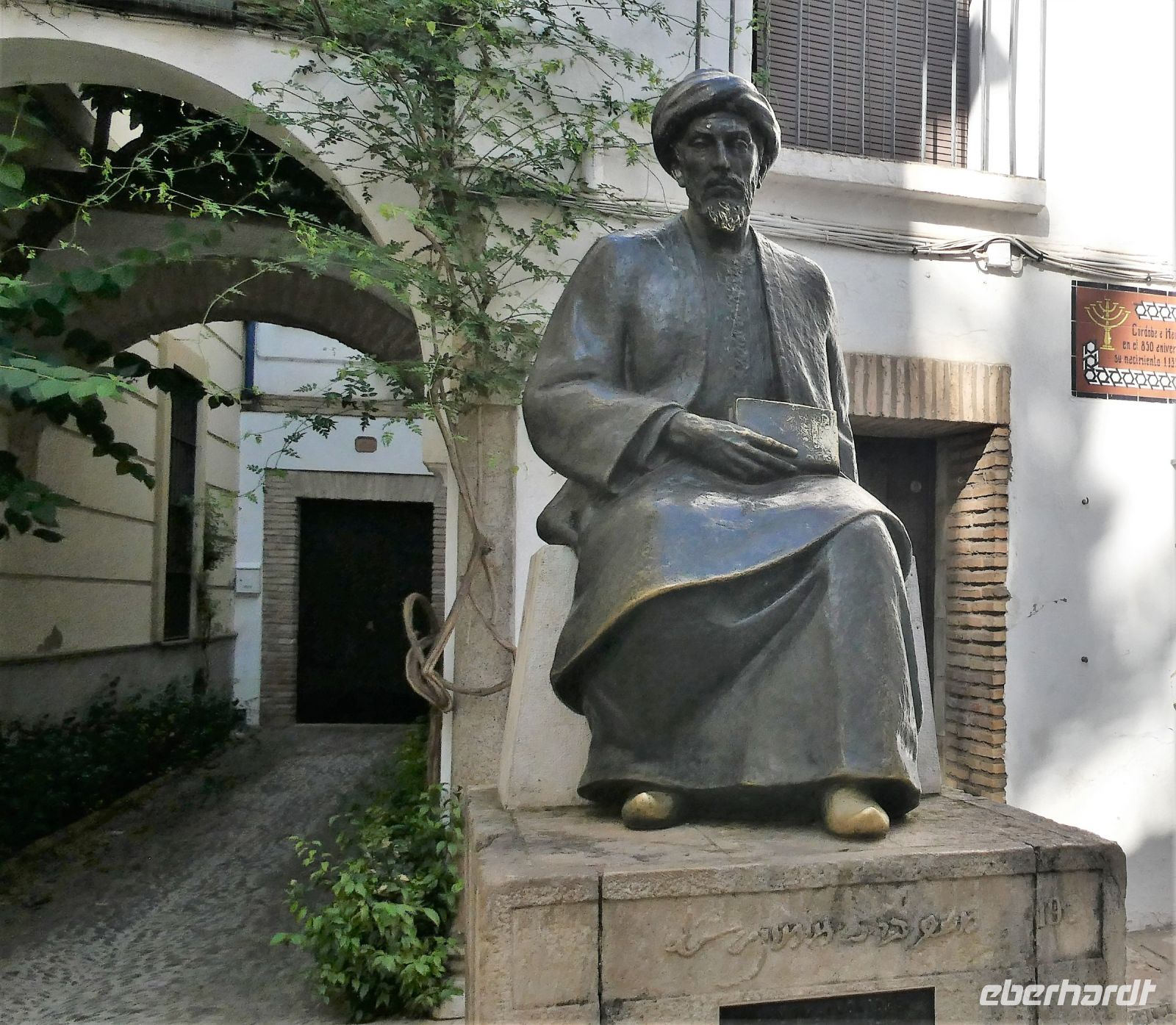 Heute morgen nach dem Frühstück sind wir sehr gespannt auf die Besichtigung des heute immer noch wichtigsten Bauwerks Cordobas. Erst einmal bummeln wir allerdings mit unserer Stadtführerin durch die "Juderia", dem ehemaligen Judenviertel. Zahlreiche Häuser mit Innenhöfen lassen sich entdecken. Diese Bauweise sorgt für Kühlung während der heißen Sommer. Eine Statue des jüdischen Philosophen, Rechtsgelehrten und Arztes "Maimonides" grüßt auf einem Platz. Er wurde hier in Cordoba geboren.
