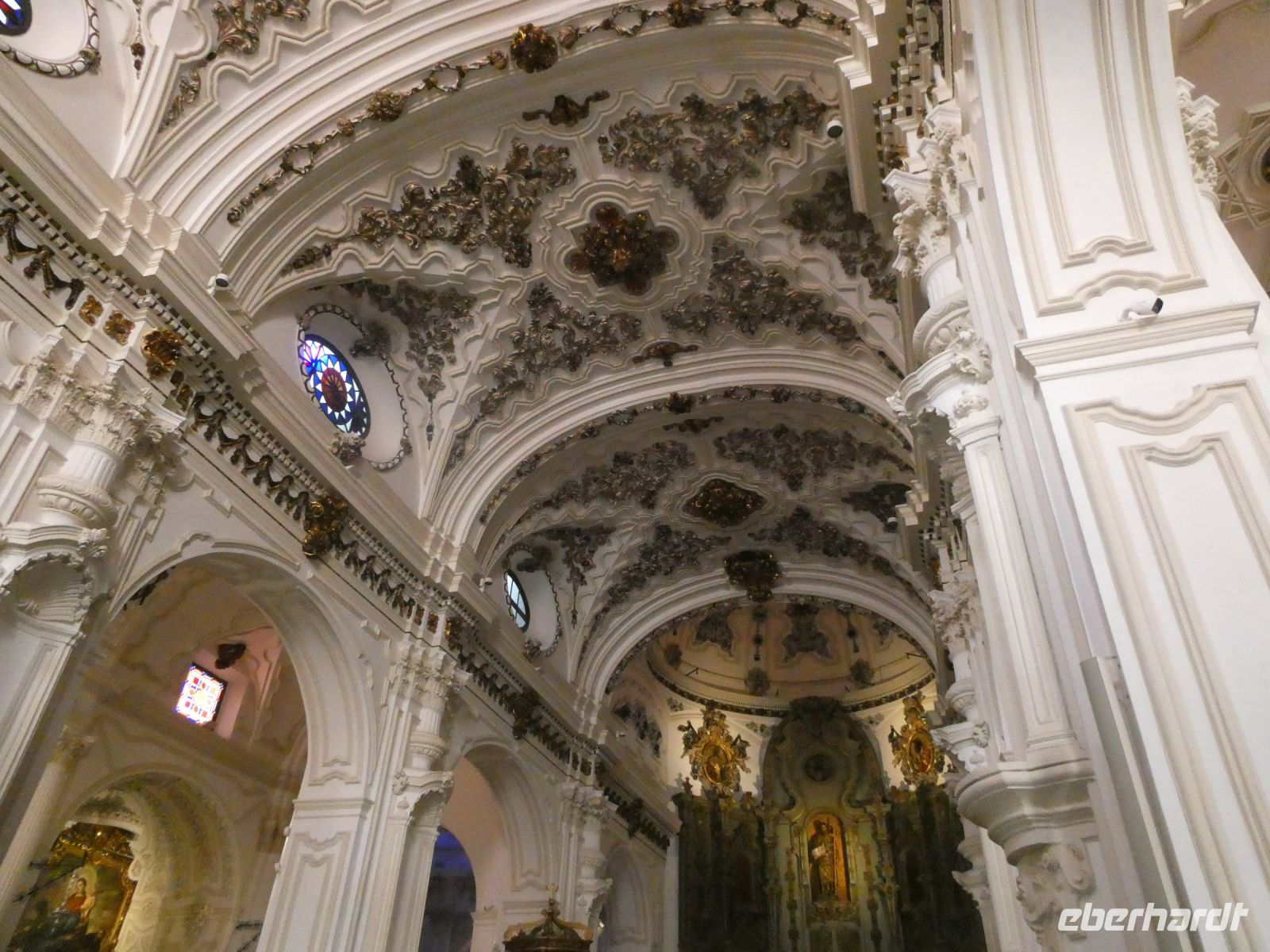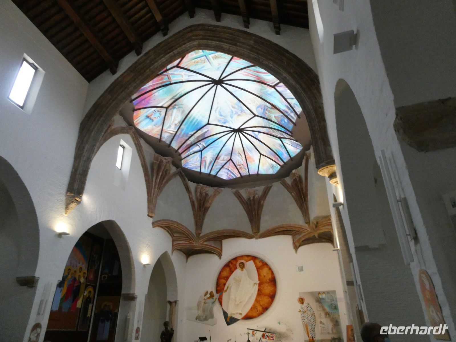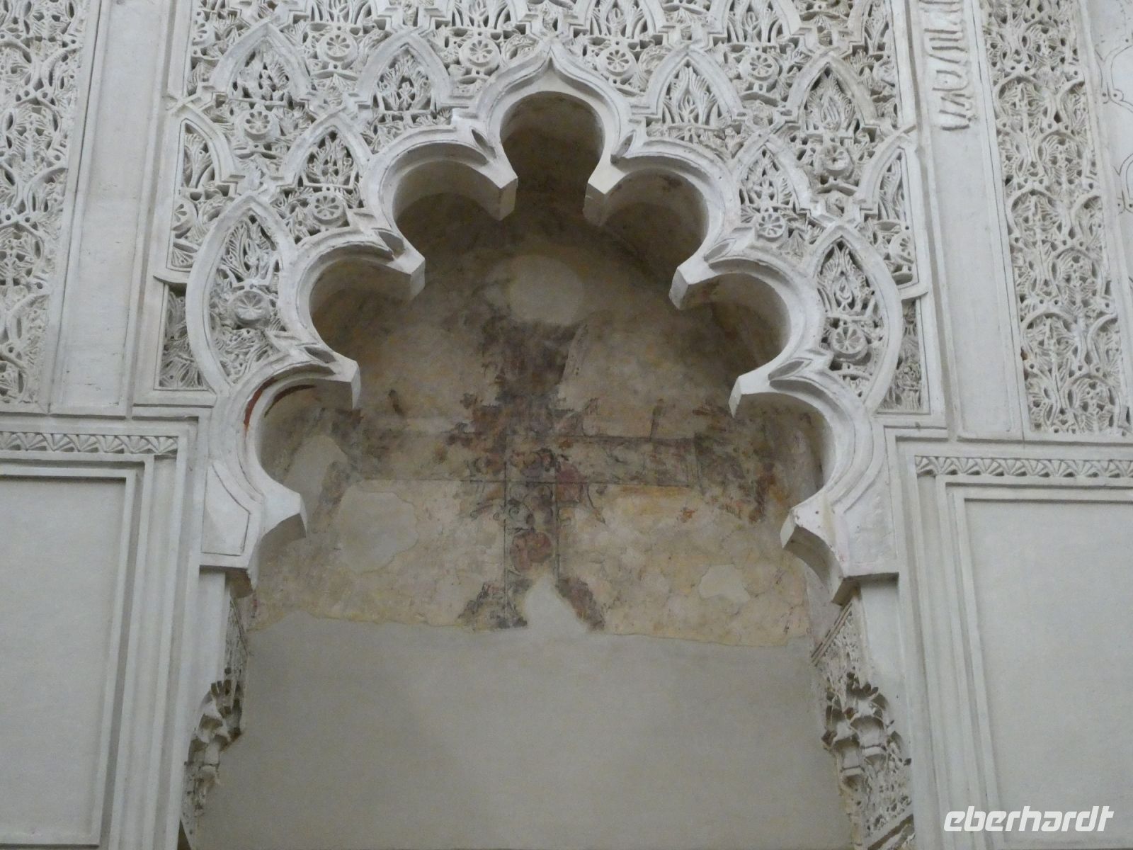 Aber mit Billigung des Kaisers Karl V. wurden dann die mittleren Säulen, um eine Kirchengebäude zu errichten, entfernt. Das Minarett wurde durch einen Glockenturm ersetzt bzw. umgebaut.