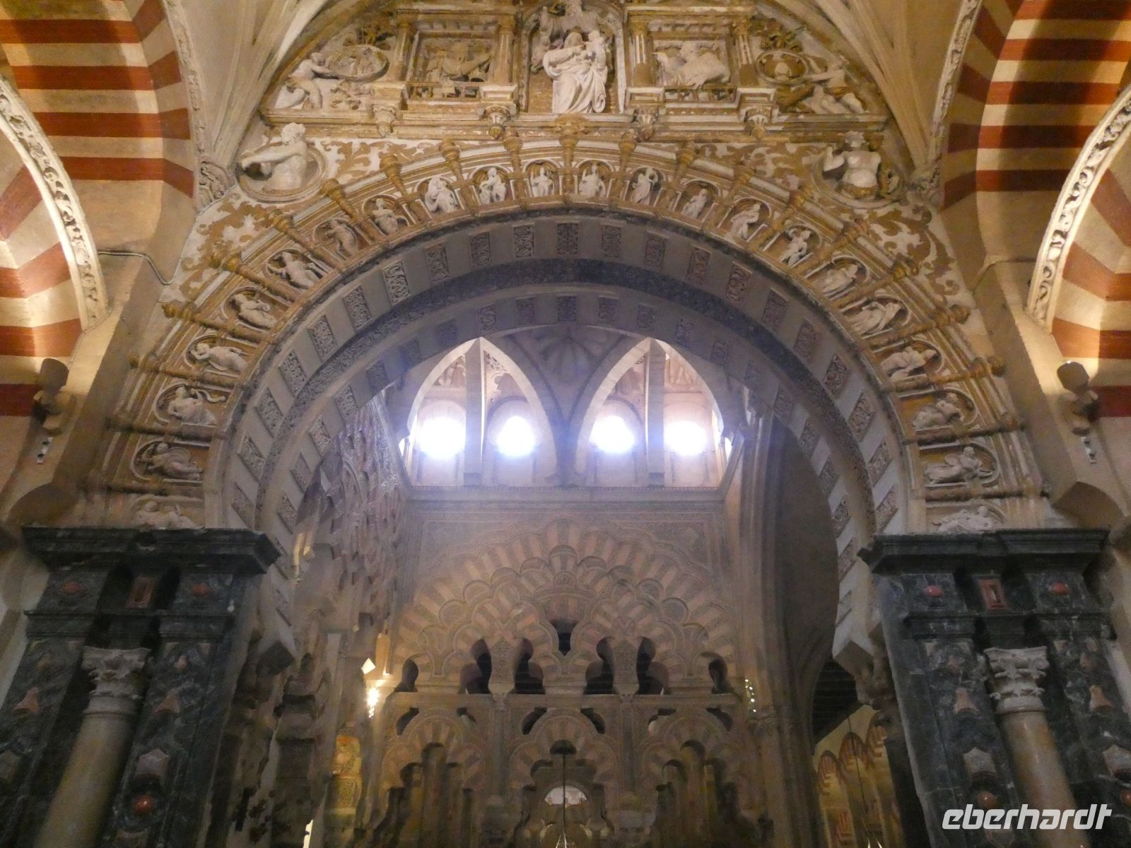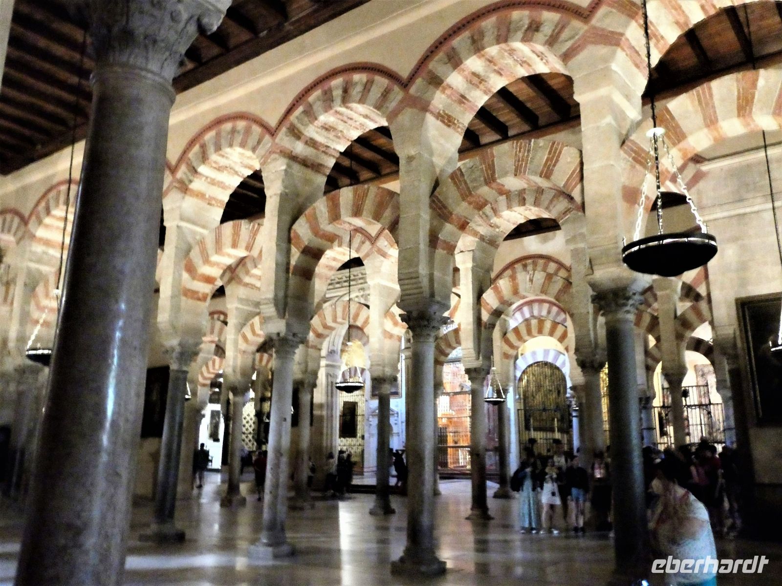 Übereinander liegende Hufeisenbögen und die 856 Säulen erzeugen eine Wirkung von Unendlichkeit und jeder der diese Halle das erste Mal betritt, hält ergriffen inne. Nach der Eroberung von den Christen im Jahr 1236 wurde die Moschee zur Kirche geweiht. Während der ersten ca.250 Jahre beschränkte man sich auf kleine Änderungen.