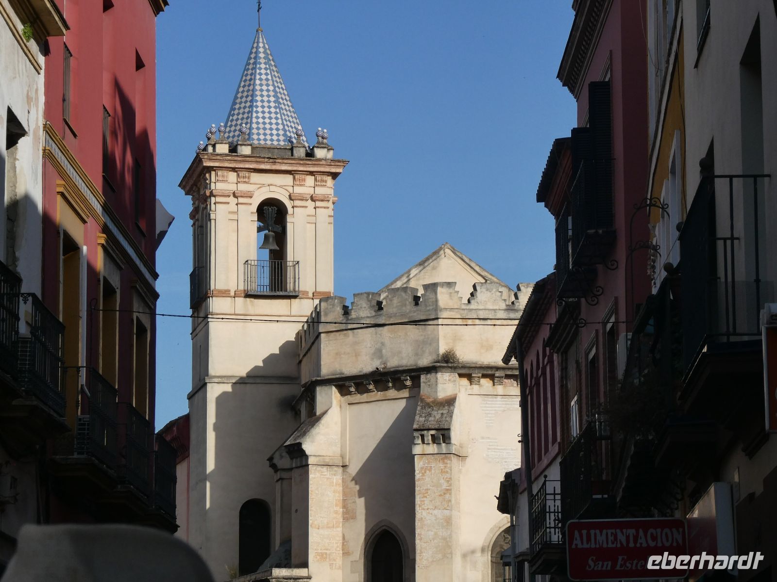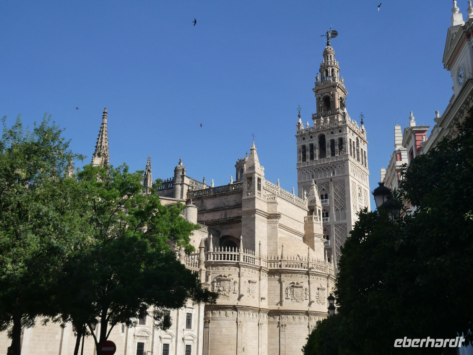 Im 14.Jahrhundert wurden die islamischen Bronzekugeln an der Spitze durch das Kreuz ersetzt. Ein Verfahren was allgemein üblich war: Kirche zu Moschee und Moschee zu Kirche. Das Renaissance-Türmchen wurde im 16. Jahrhundert draufgesetzt. Die Wetterfahne, die "Giralda" gab der heutigen Kathedrale ihren Namen.